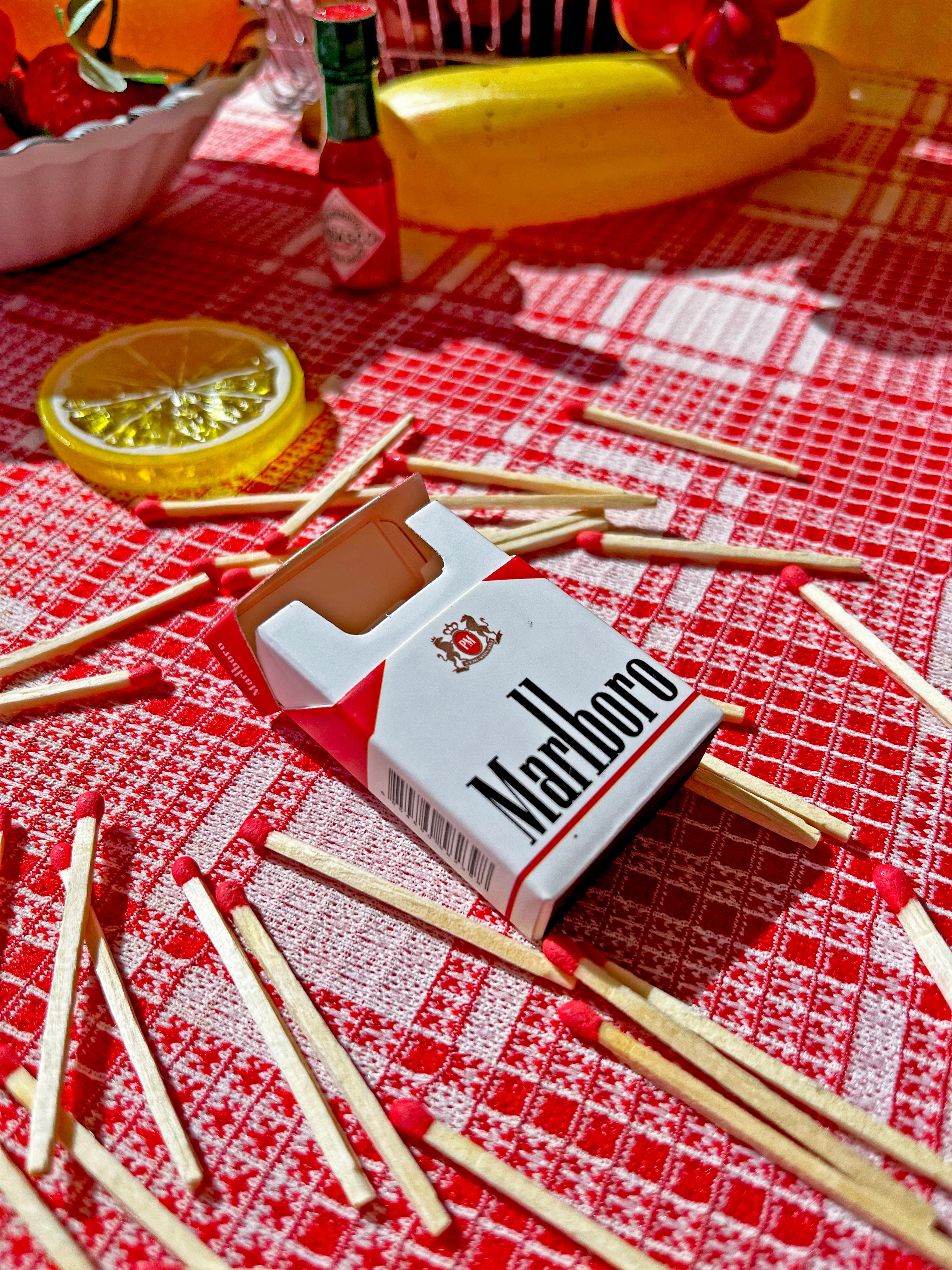 Approx. 30 red-tipped matches come in this novelty kitschy fun Marlboro mini cig box! It even opens like a cig box. We're in looooove!