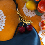 Your bag is practically begging you for a cute little accessory - and don't worry, we got you covered!! These glittery red twin cherries are the cuntiest addition to the handle of your bag! Comes with a jump ring and a gold stay-closed lobster clasp that's easy to add to your bag without ruining your manicure!