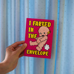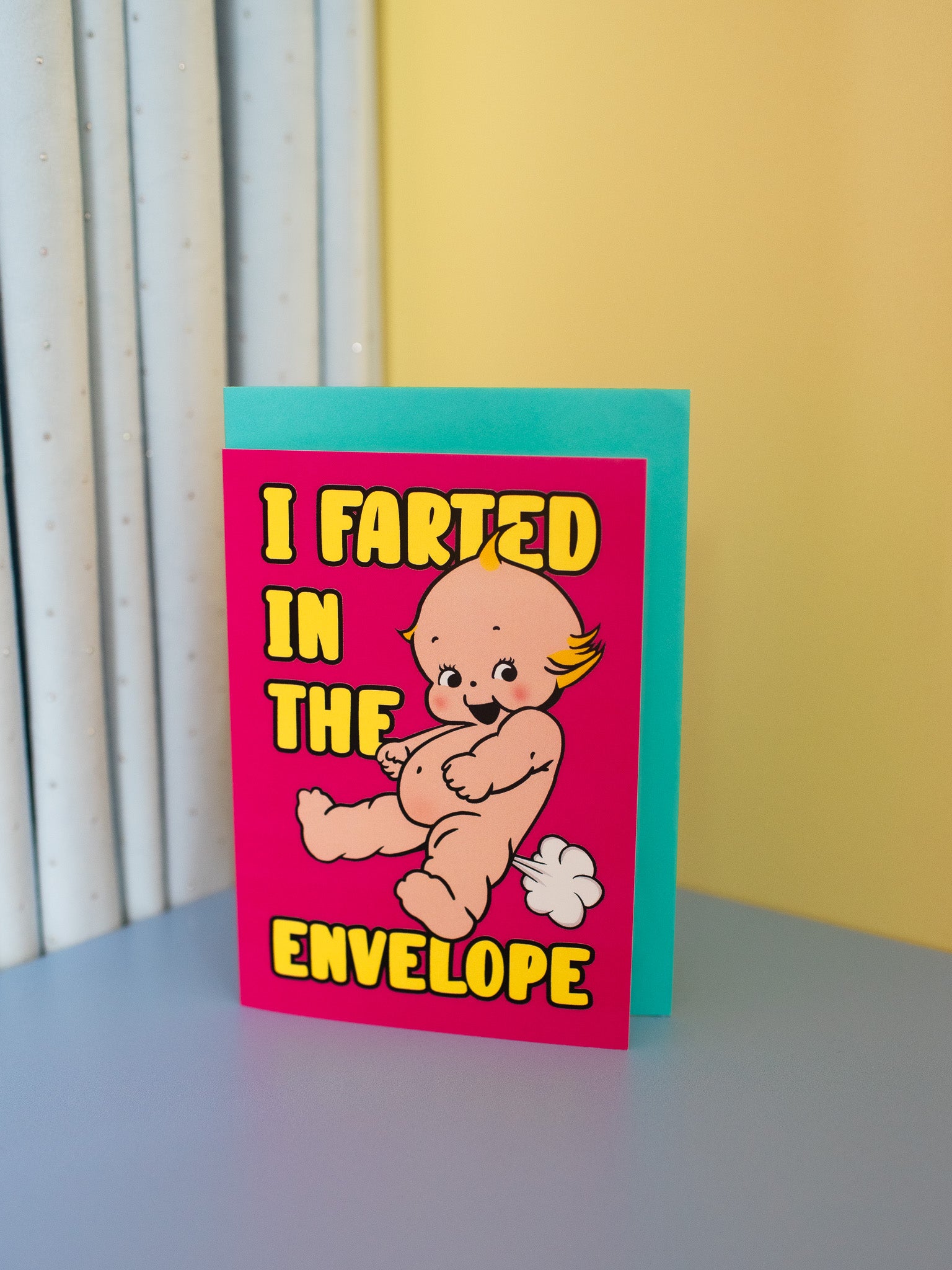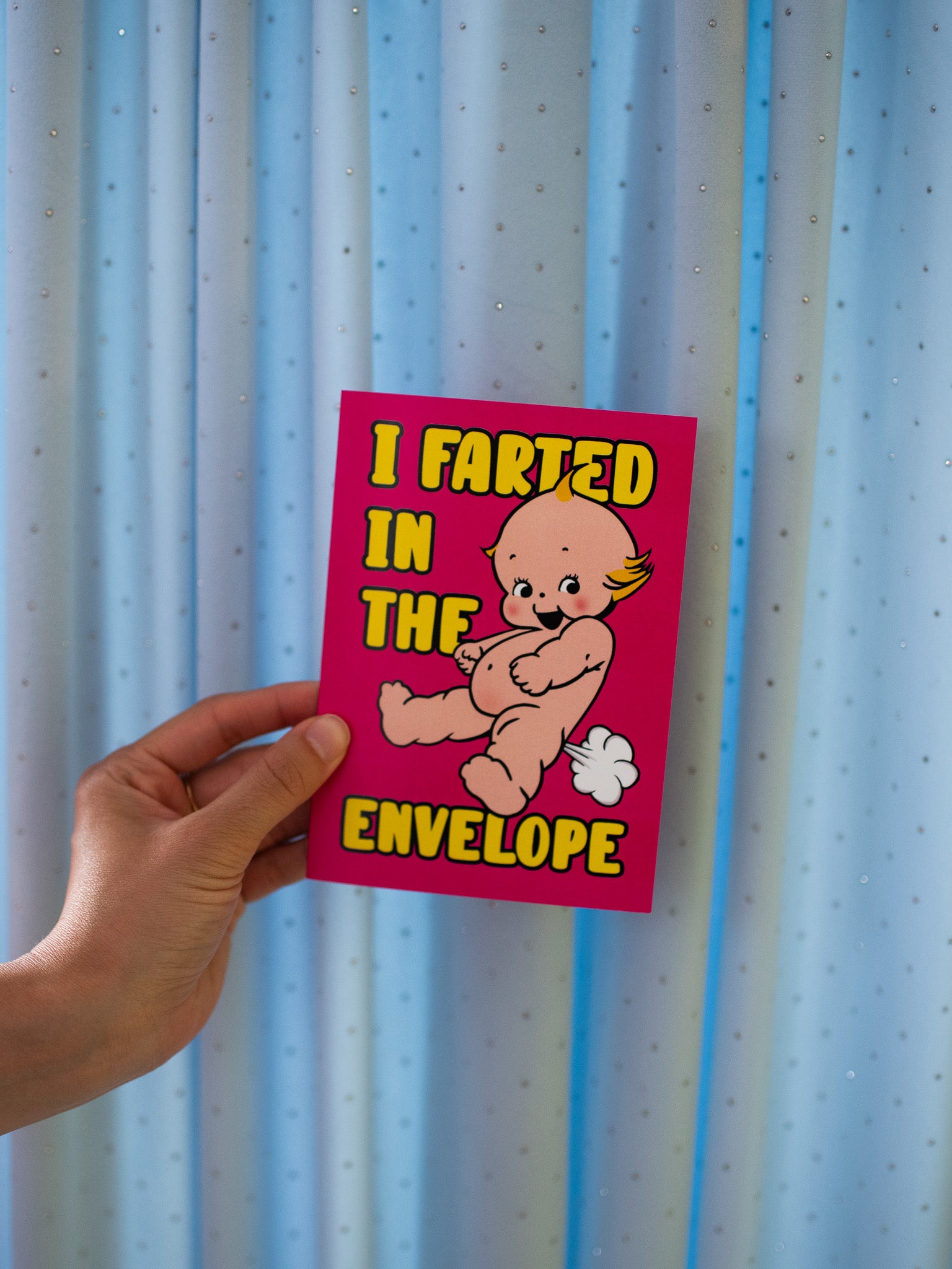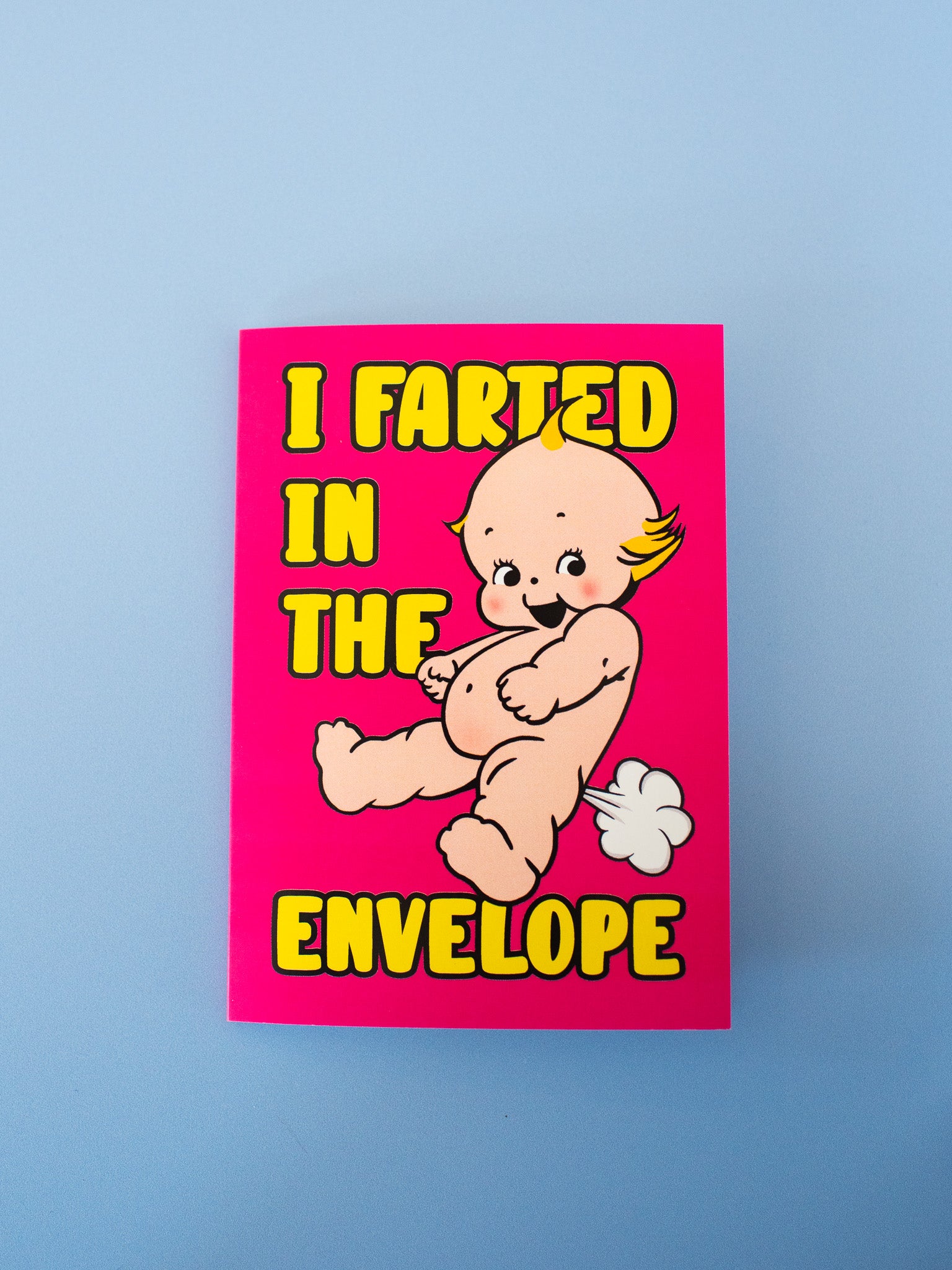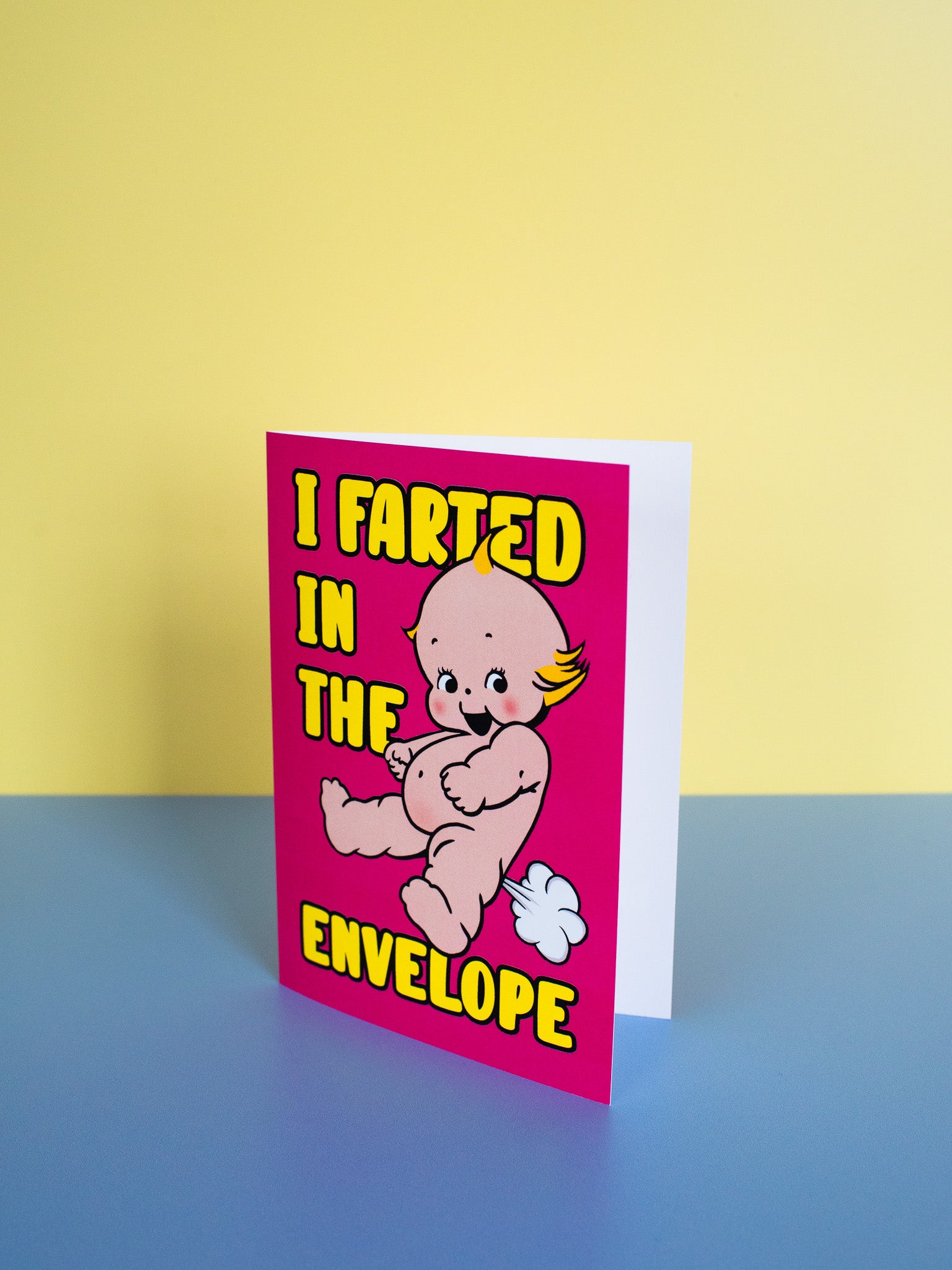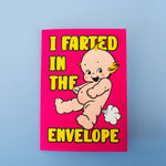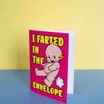 Features an adorable kewpie, with text that reads "I farted in the envelope"