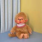 This Monchhichi has super soft and plush blonde fur, accessorized perfectly with a cute white and red Monchhichi bib! Perfect for gifting, adding to your growing collection, or just to add some fun vibes to your space!