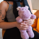 Hip Hippo Hooray! This cutie purple hippo is the perfect friend to help keep you warm on a cozy night!