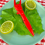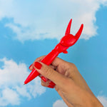 This bright red lobster claw pen activates with the click of a claw! Simply press down on the slider at the side of the pen to extend or retract the pen tip. Would look adorable sitting in your pen holder when not in use and makes a great kitschy gift!