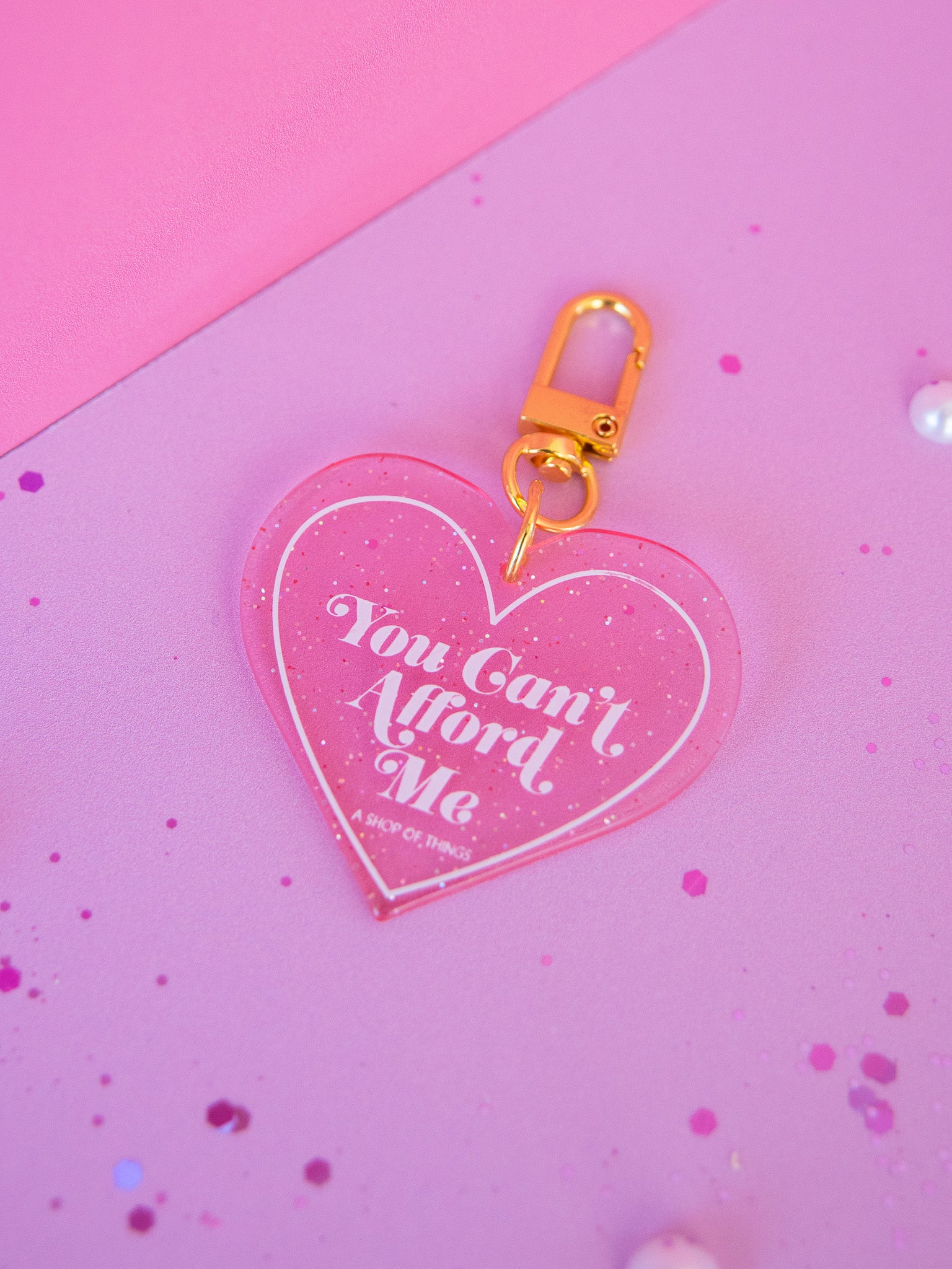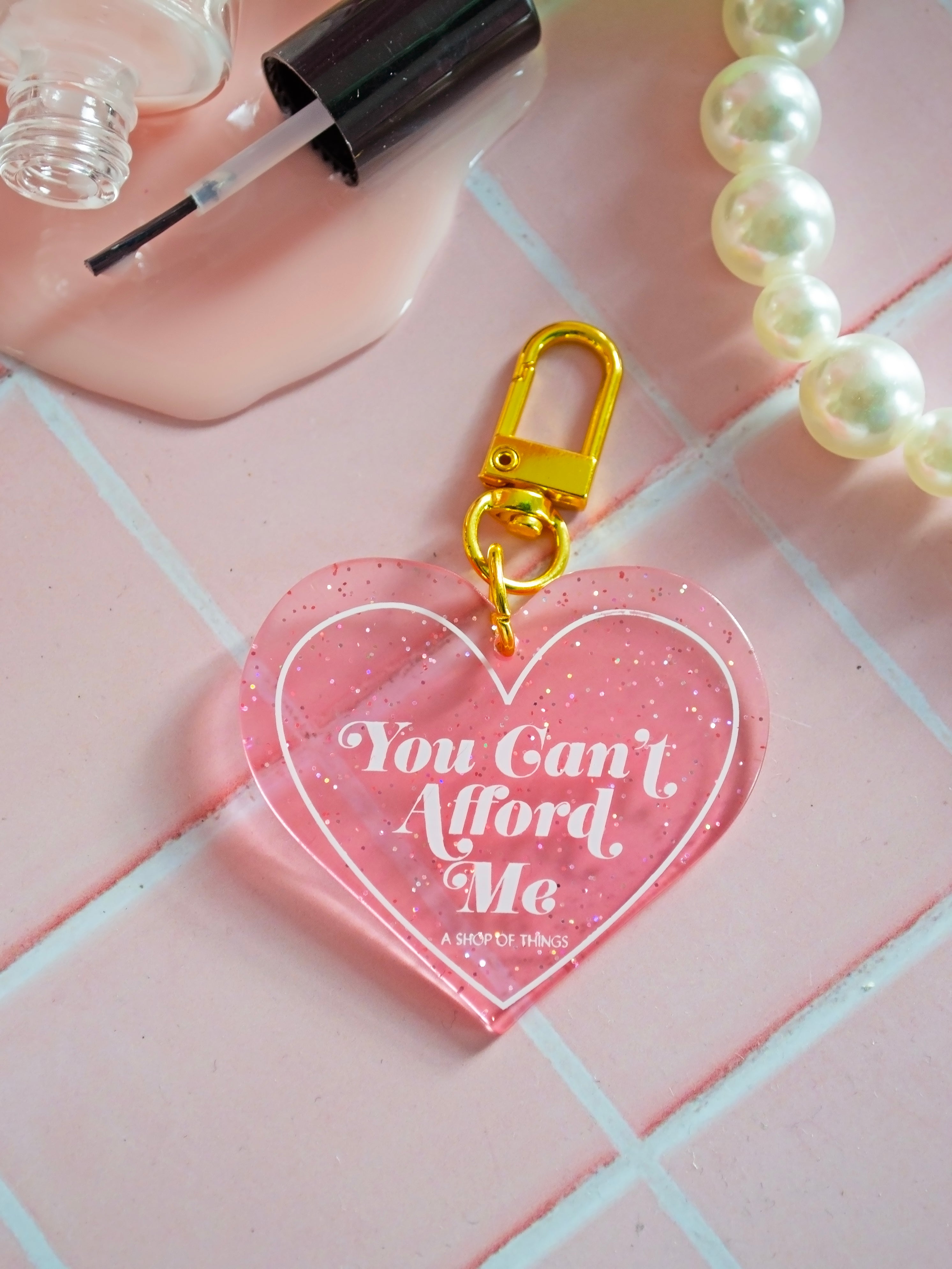 This my second “You can’t afford me” keychain, after several months and one too many drops I had to replace it. I love it so much, my keys were really missing something with out it! It’s so pretty in person