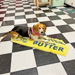 Measures 38" x 14". Design is a classic yellow stick of salted butter. Slip resistant backing, so no need to get rug tape! Made from 100% polyester, can be machine washed, but we recommend hand washing. Do not iron, air dry only.