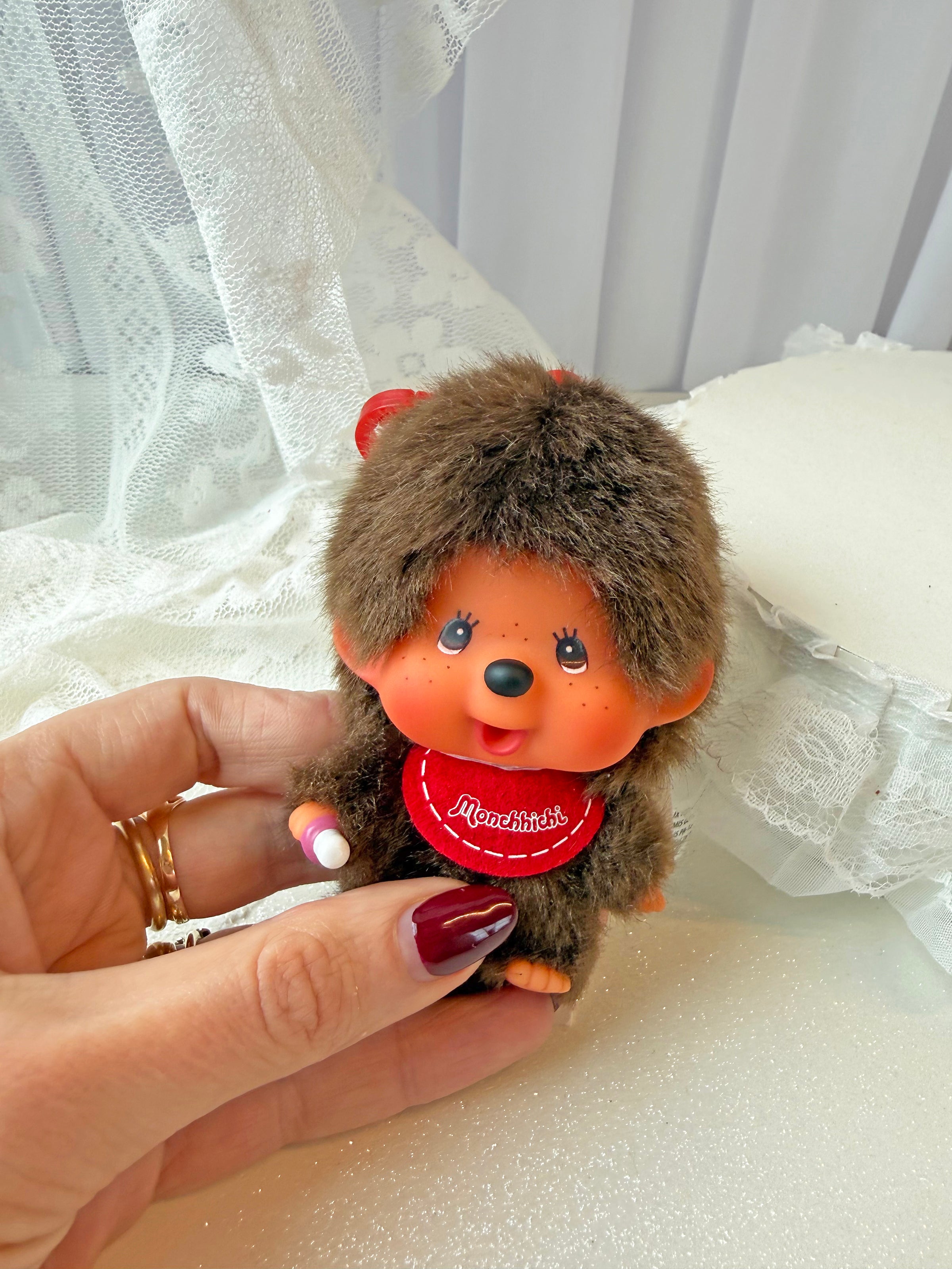 This Monchhichi has super soft and plush fur, accessorized perfectly with a cute white and red Monchhichi bib! The best part? He's also a keychain! Perfect for gifting, adding to your growing collection, attaching to keychains and bags, or to add fun vibes to your space!