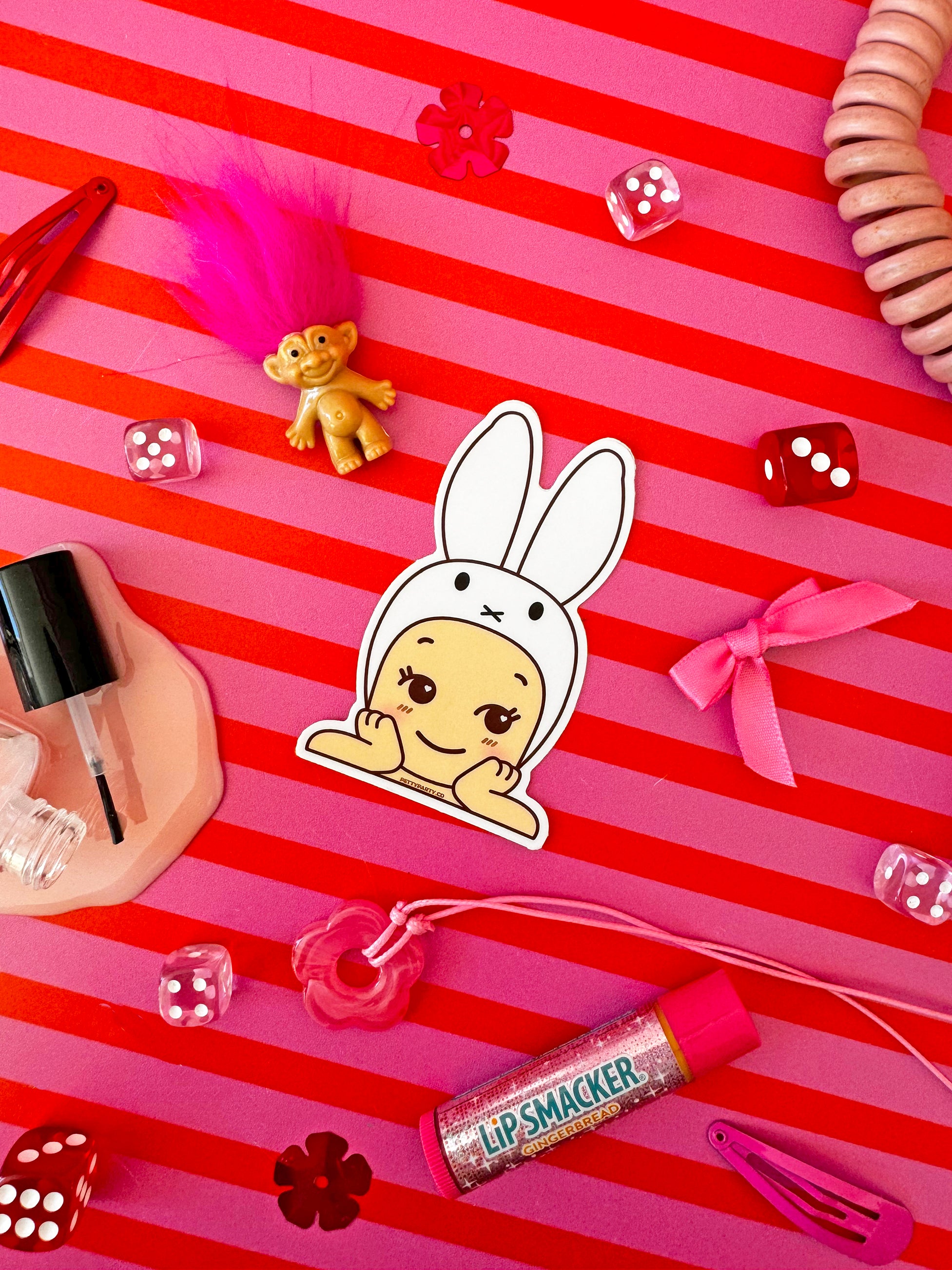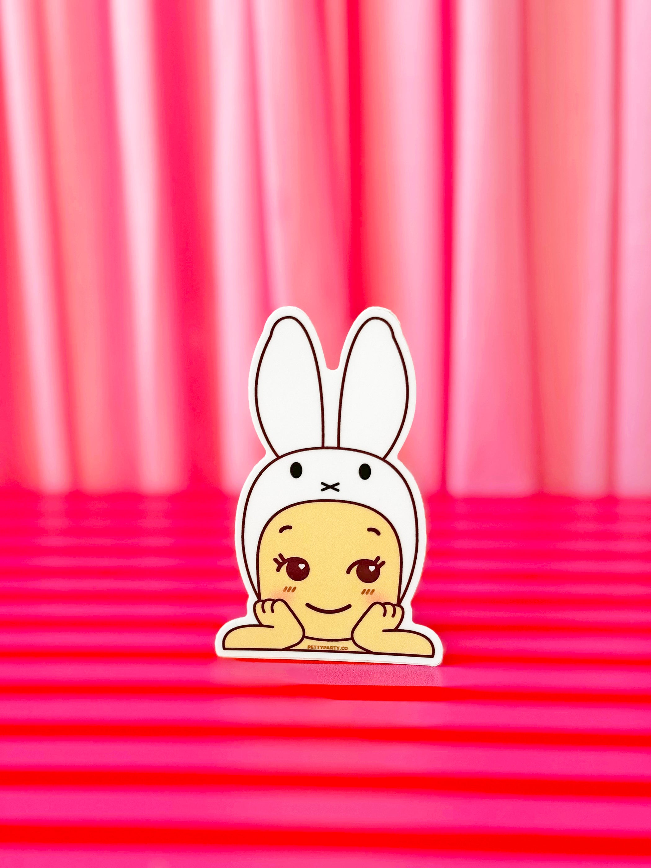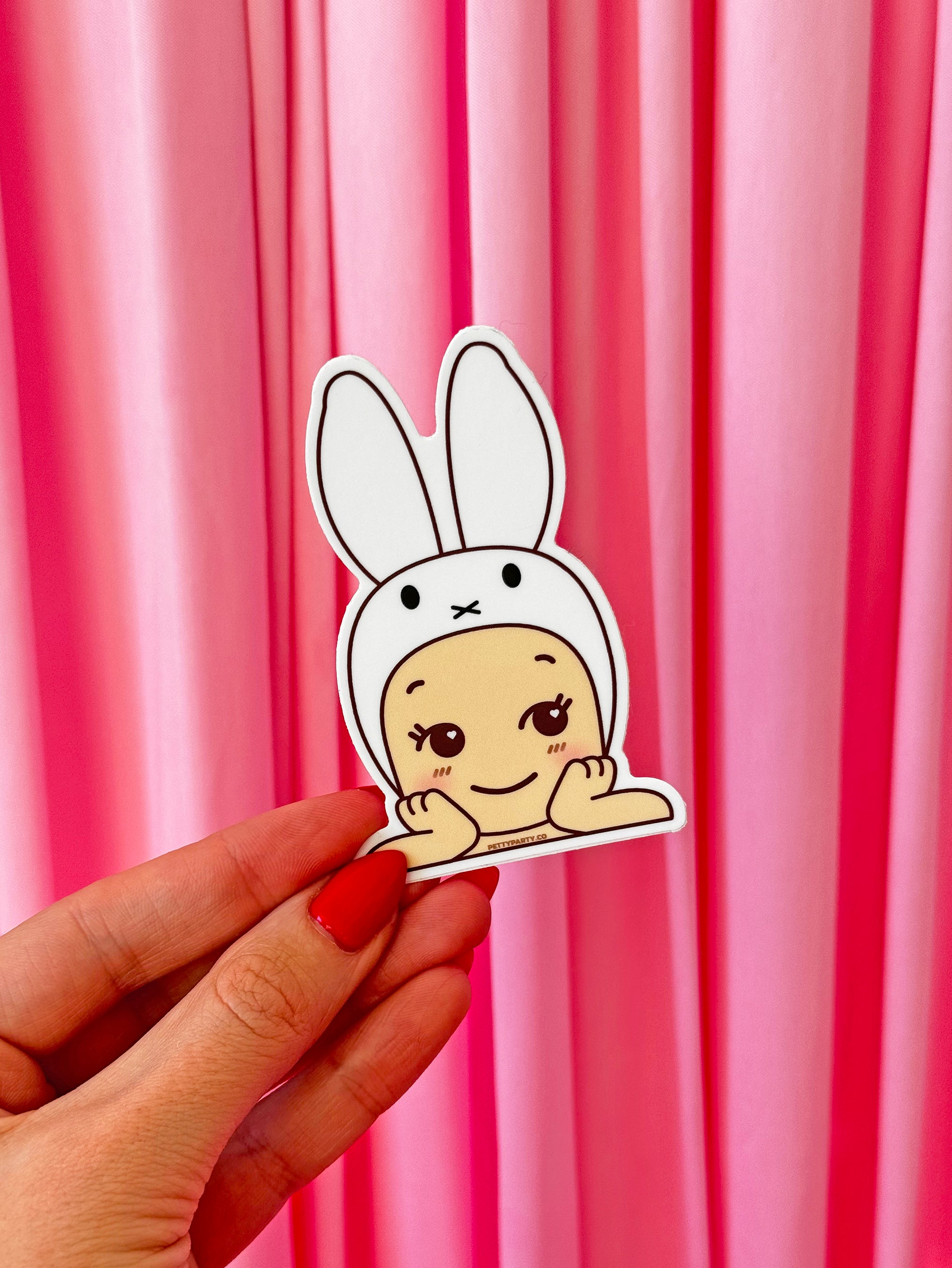 This sticker features an angelic baby wearing an adorable bunny ears hat!