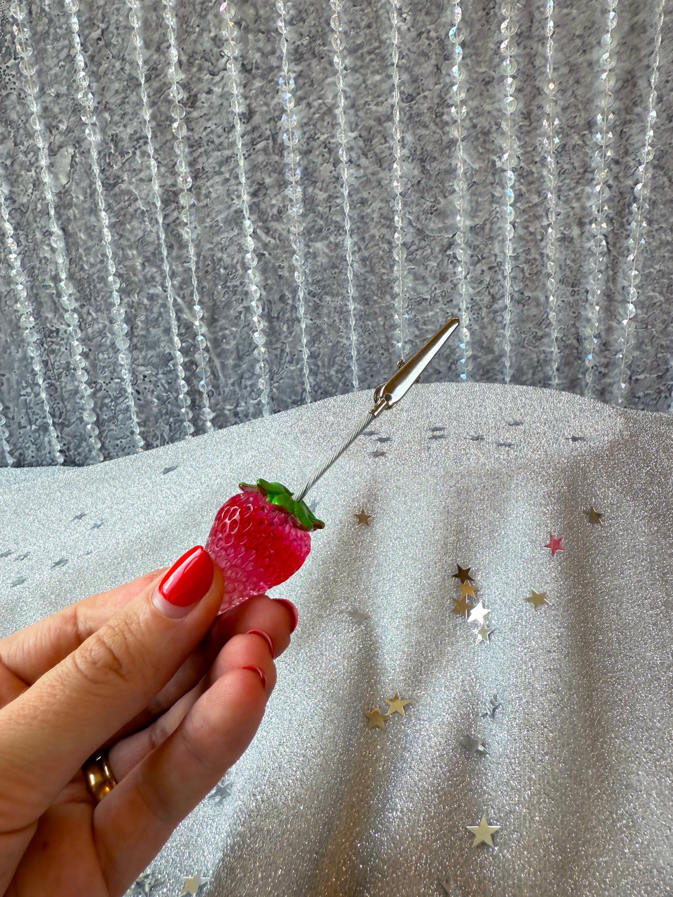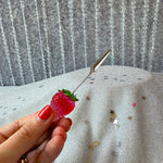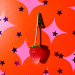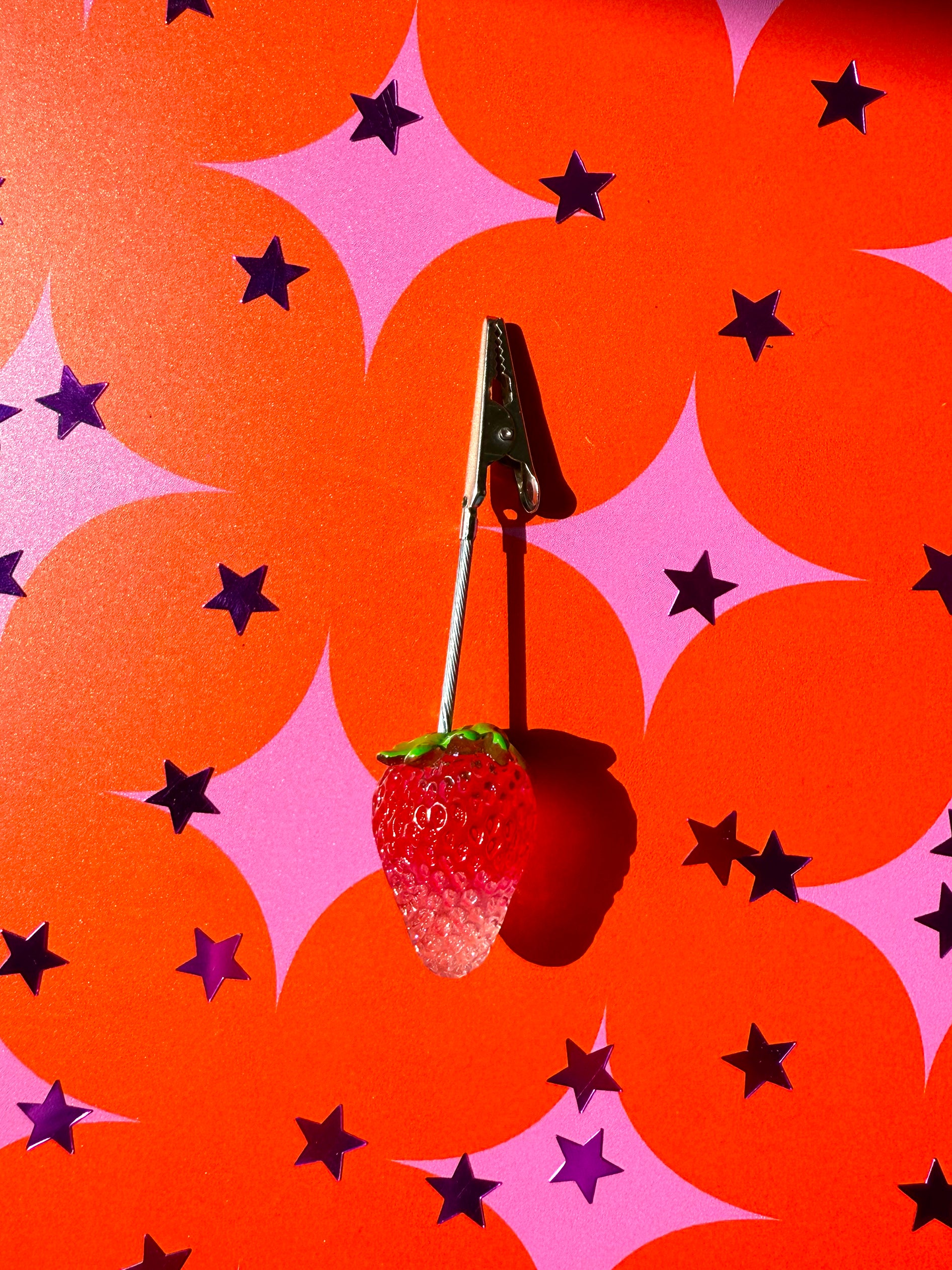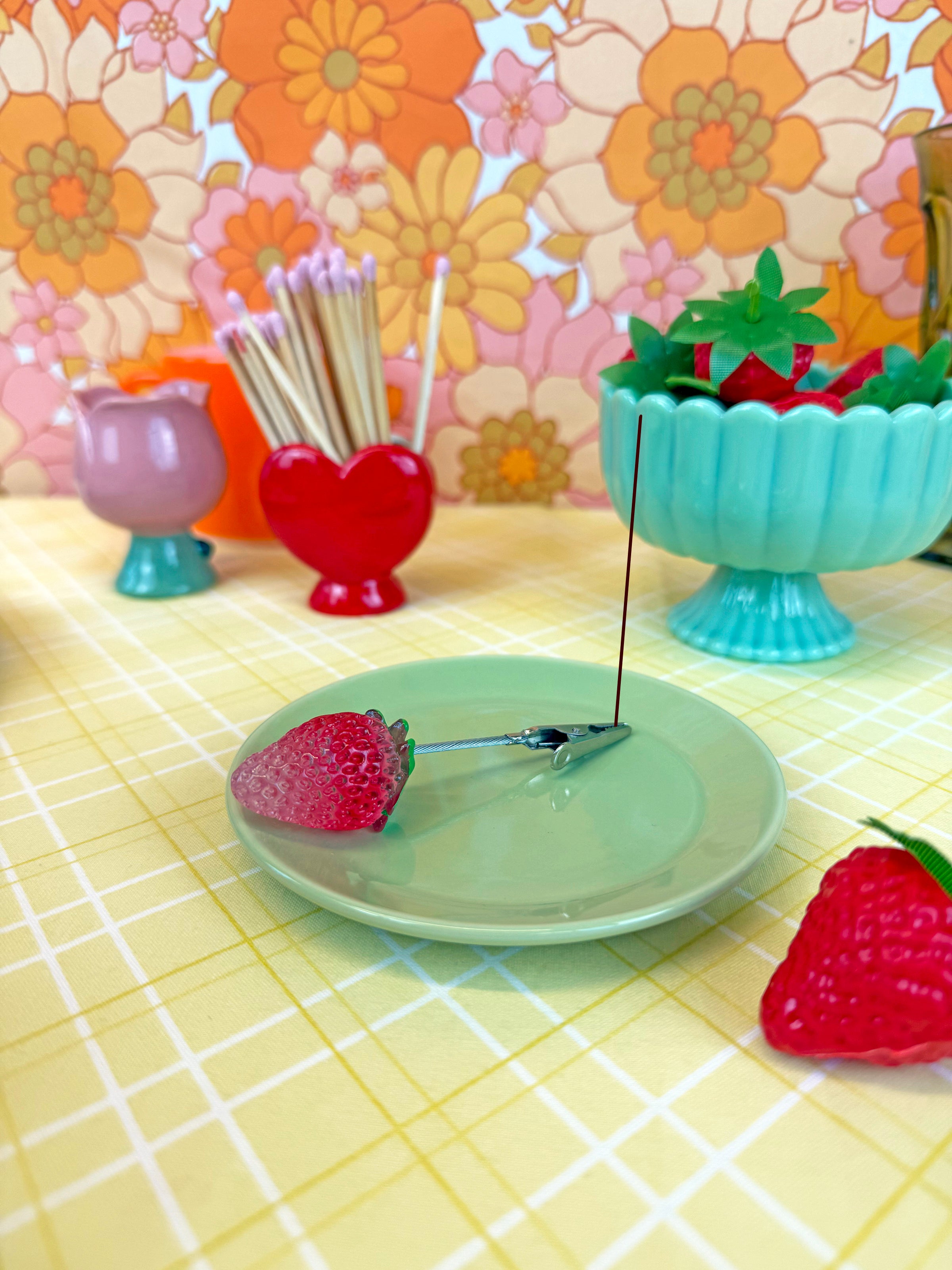 A handy dandy clip sits atop this resin strawberry. Great to use as a photo clip, for incense, or for a j!