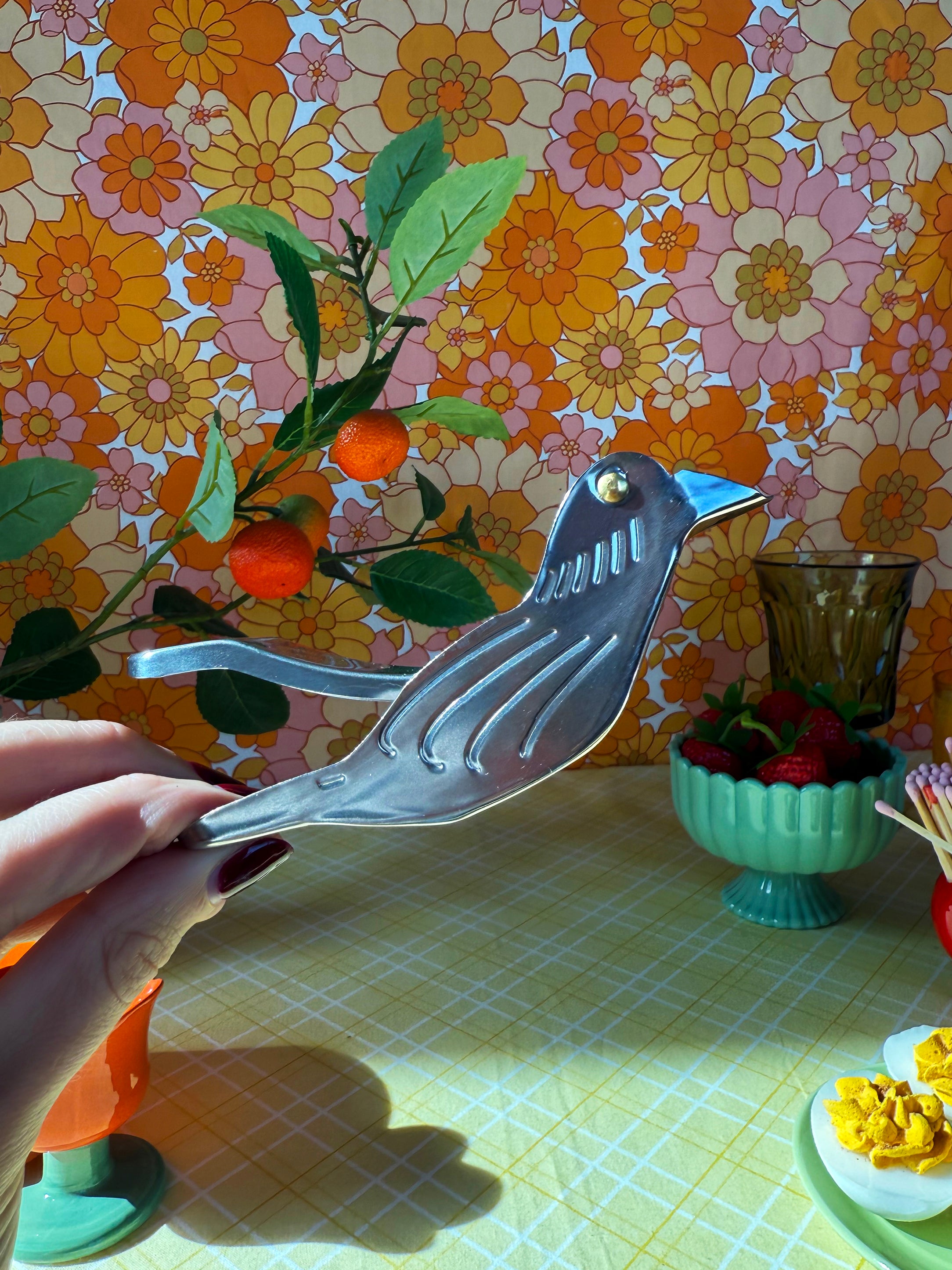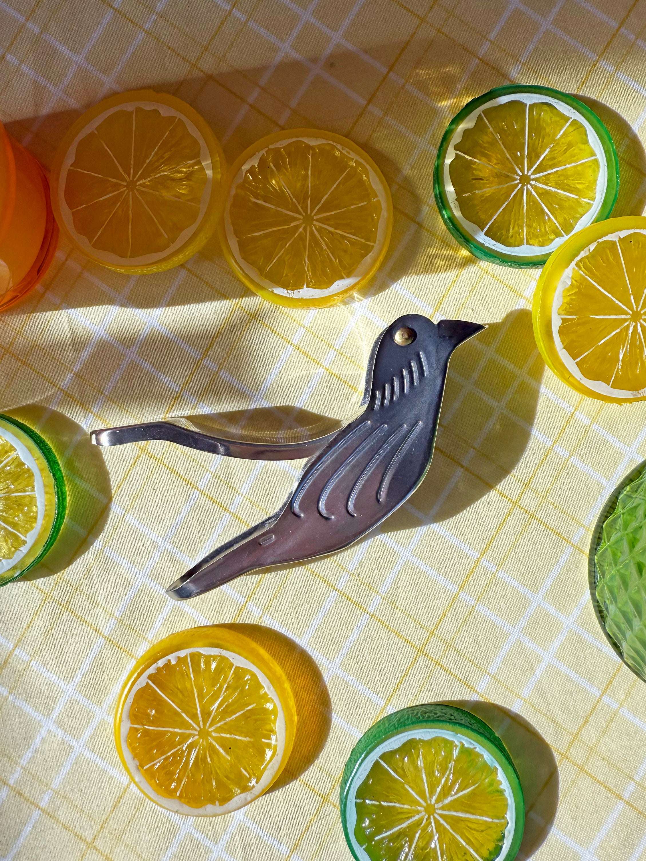 This bird-shaped juicer is so cute and makes juicing lemons and limes an breeze! Simply cut up your lemons, limes, oranges, etc, place under the handle, and squeeze! The liquid will pout out of the cute lil' bird's mouth. Made from stainless steel and easy to clean.