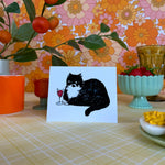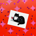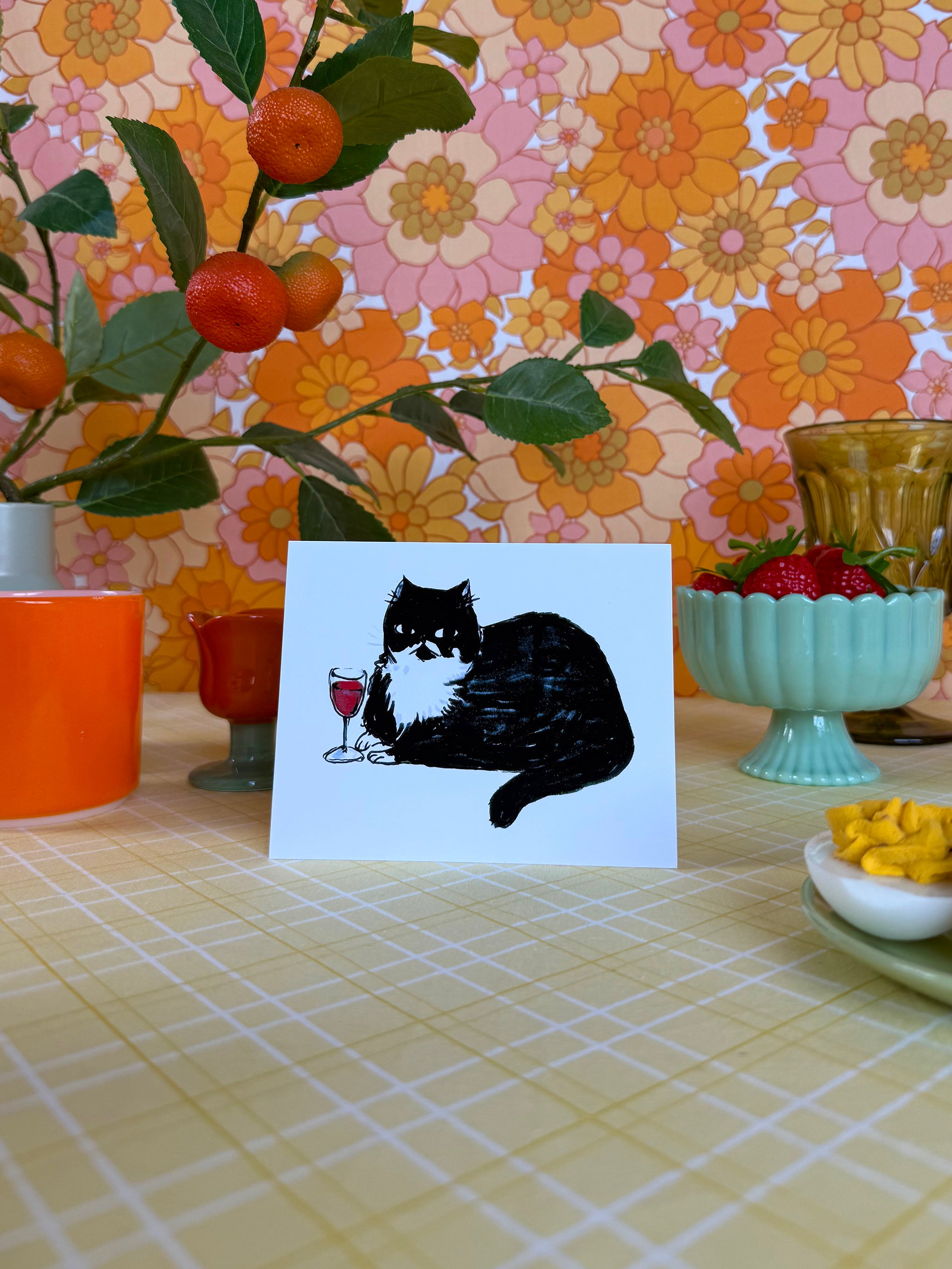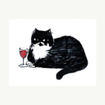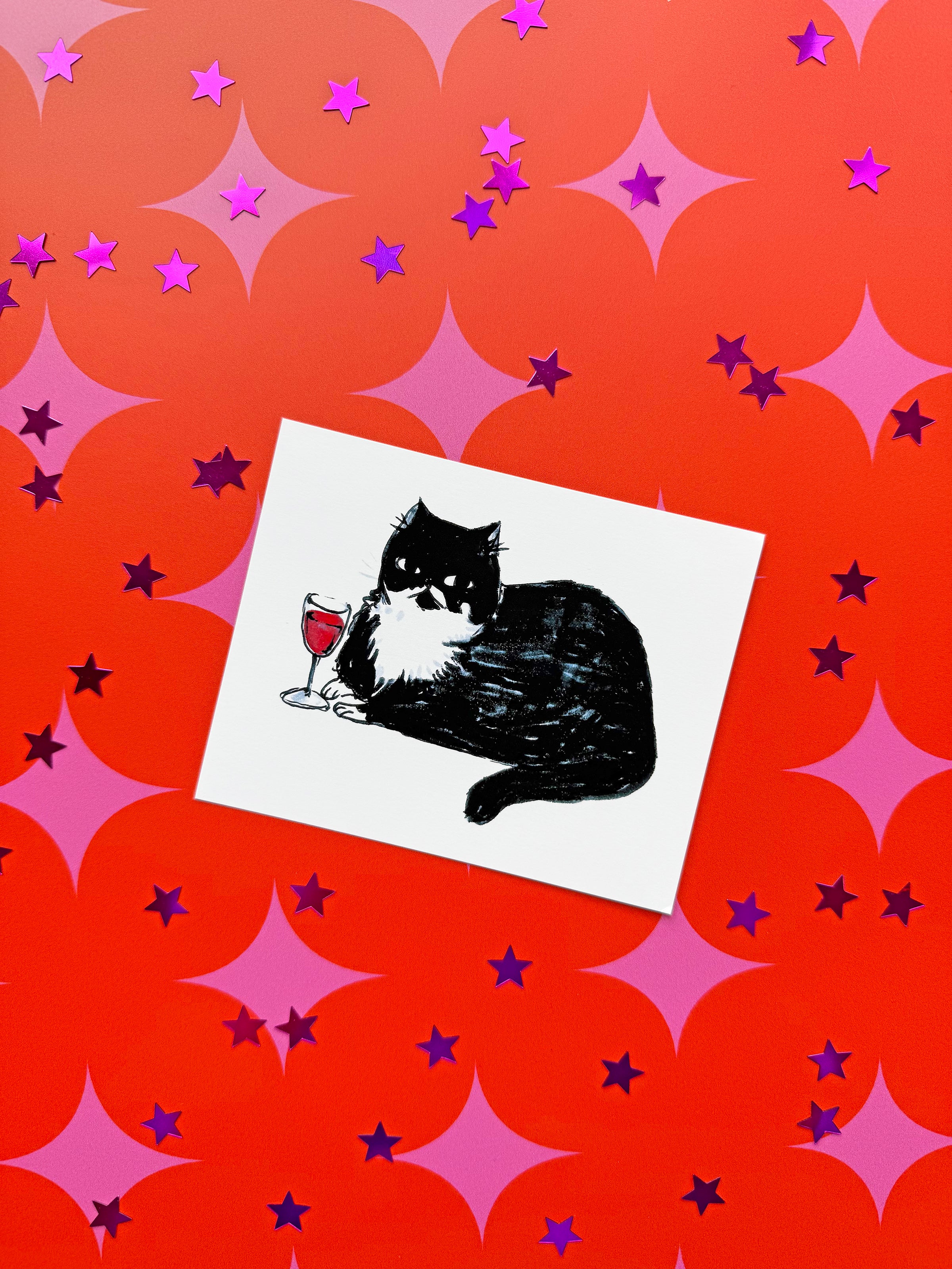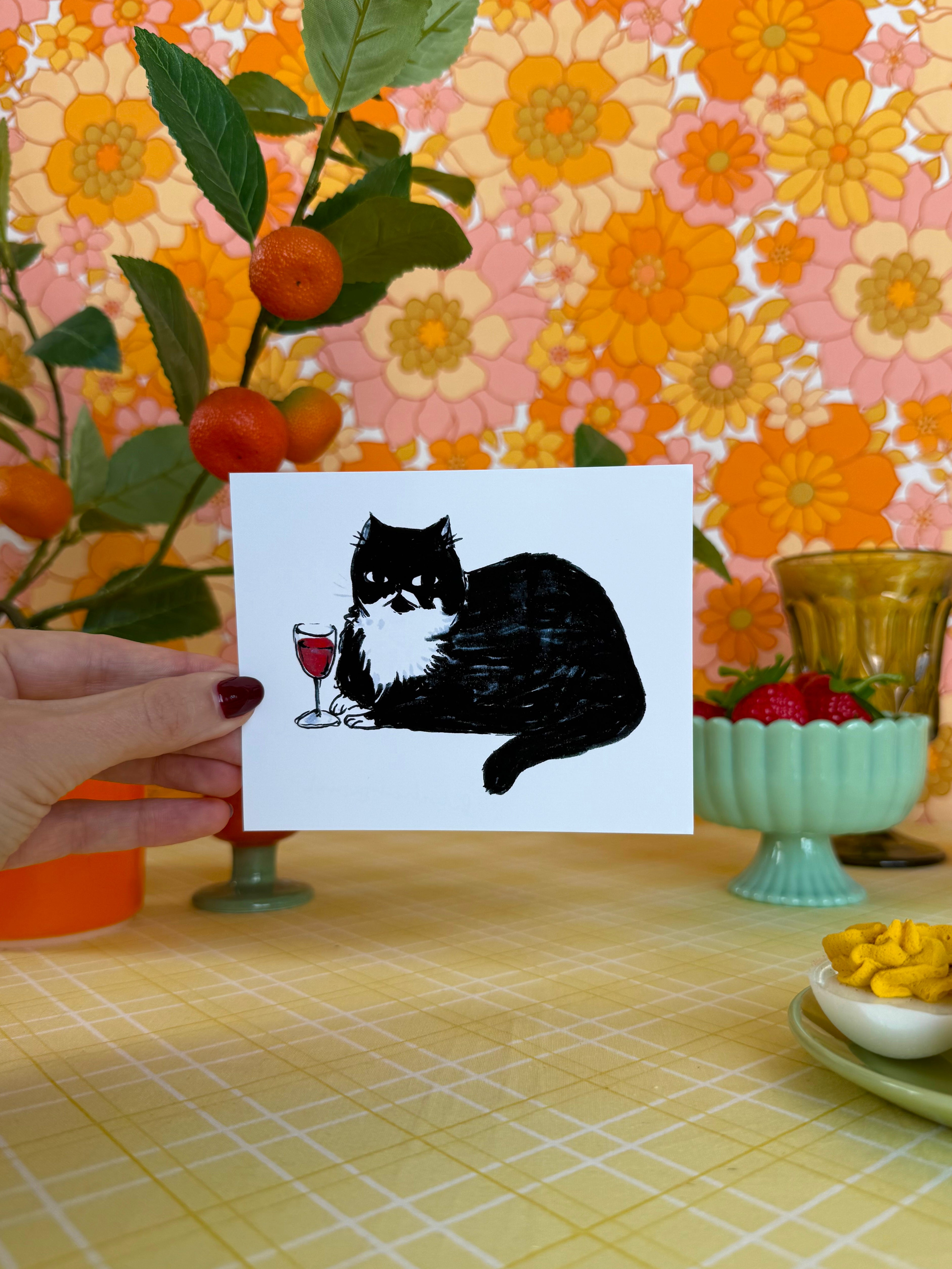 Nothing says stability like wine and with your cats! This print features Pepper, an adorable black and white kitty, sitting serenely with a fine Bordeaux! Made by artist Rebekah Evans, this watercolor print looks adorable on a shelf and makes for the sweetest gift!