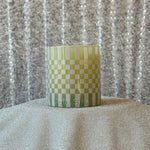 8.5oz of wax made from a coconut and beeswax blend, measures 3.5" tall.