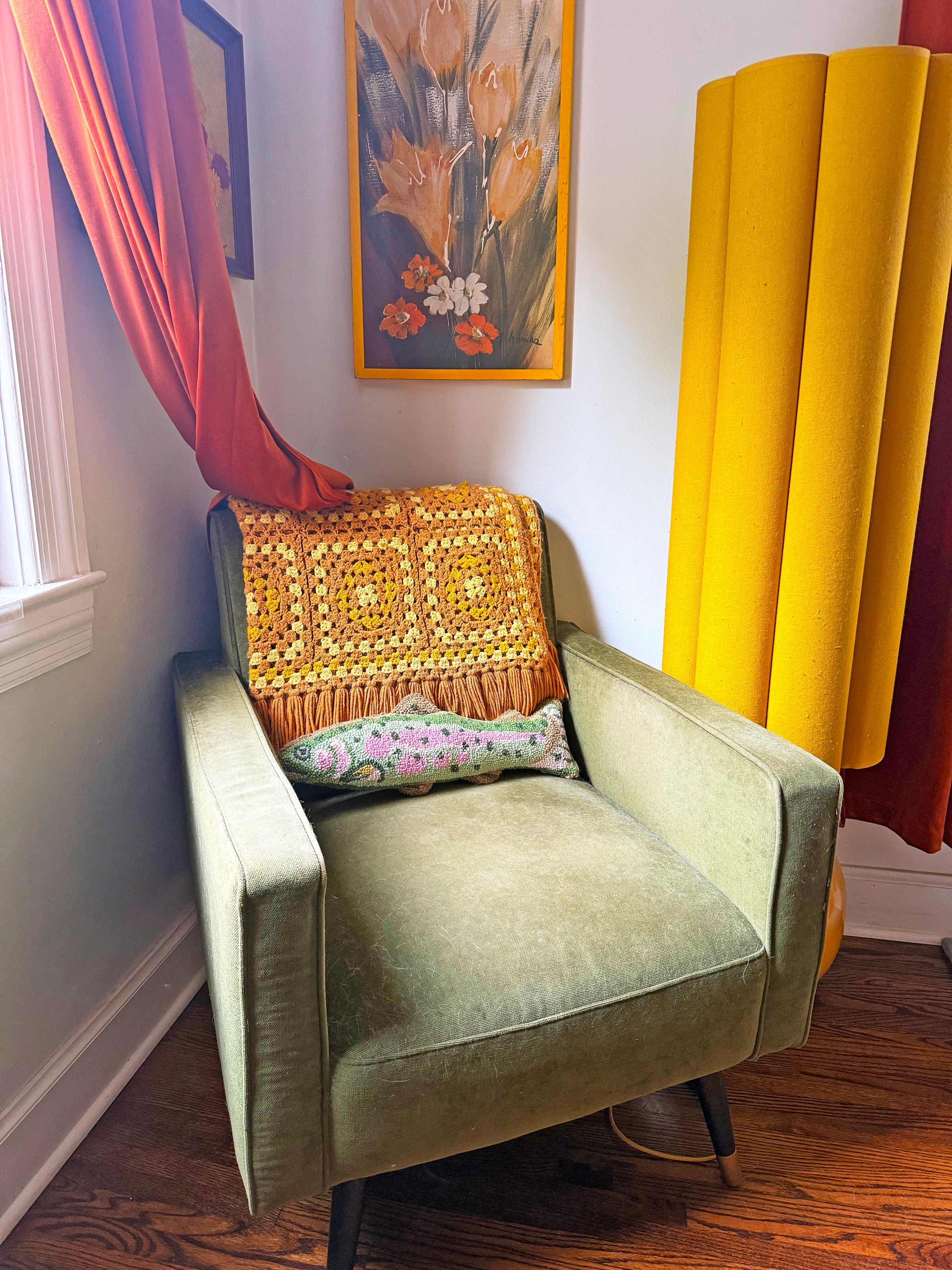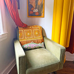 Pillow measures 8" x 22". This pillow is 100% wool hooked with a 100% polyester velvet backing.