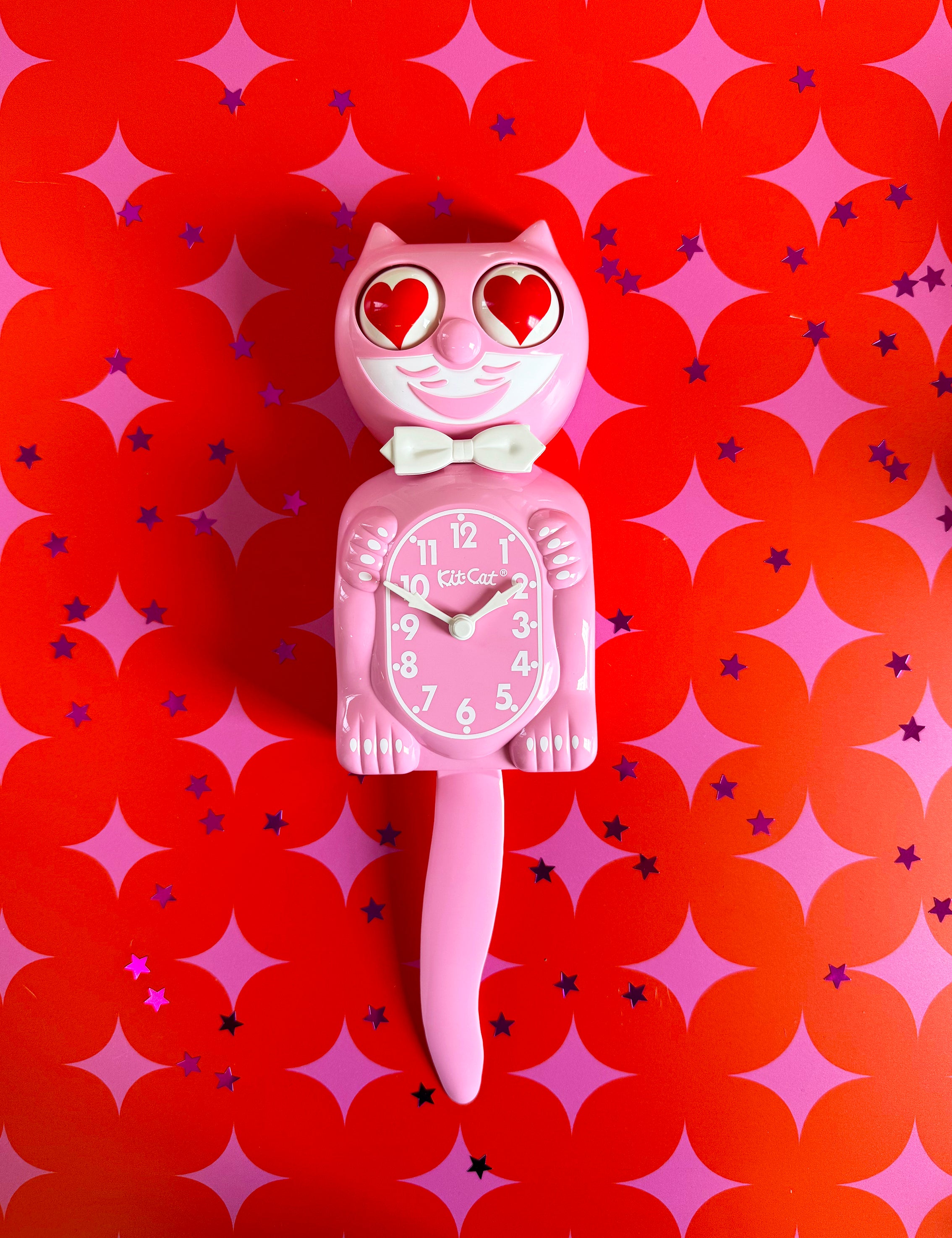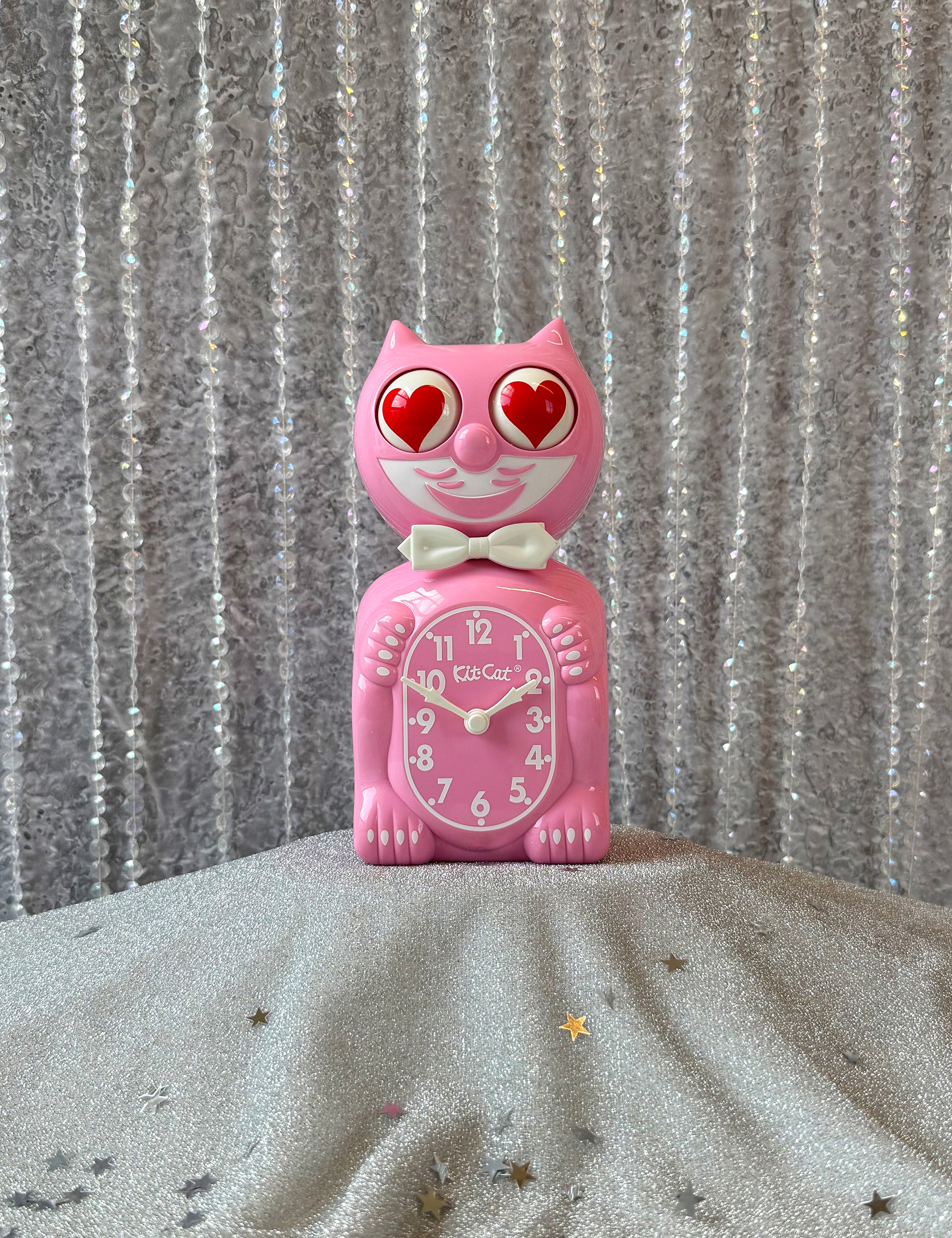 Pink Satin Kit-Cat Klock - Heart Eyes
