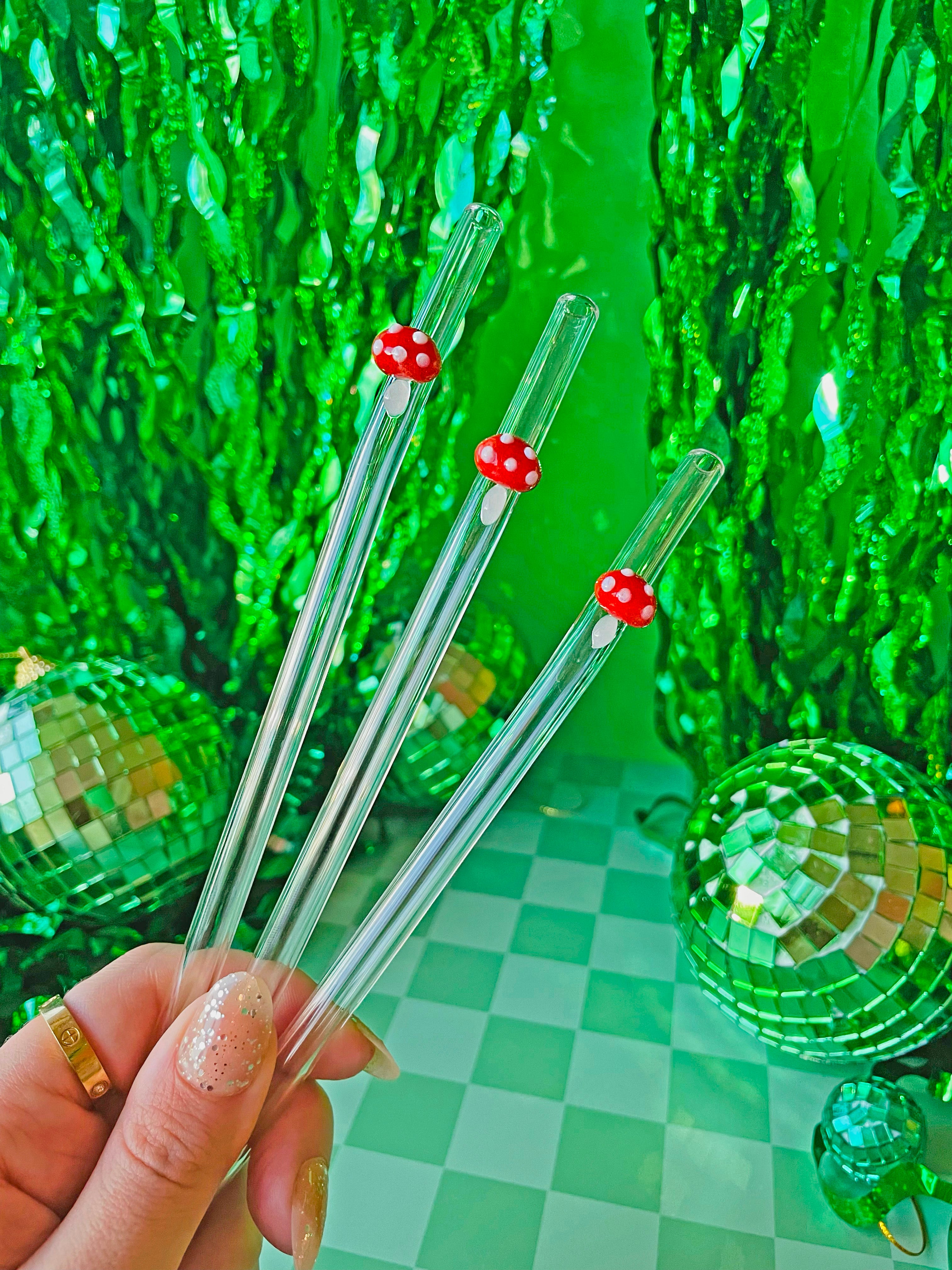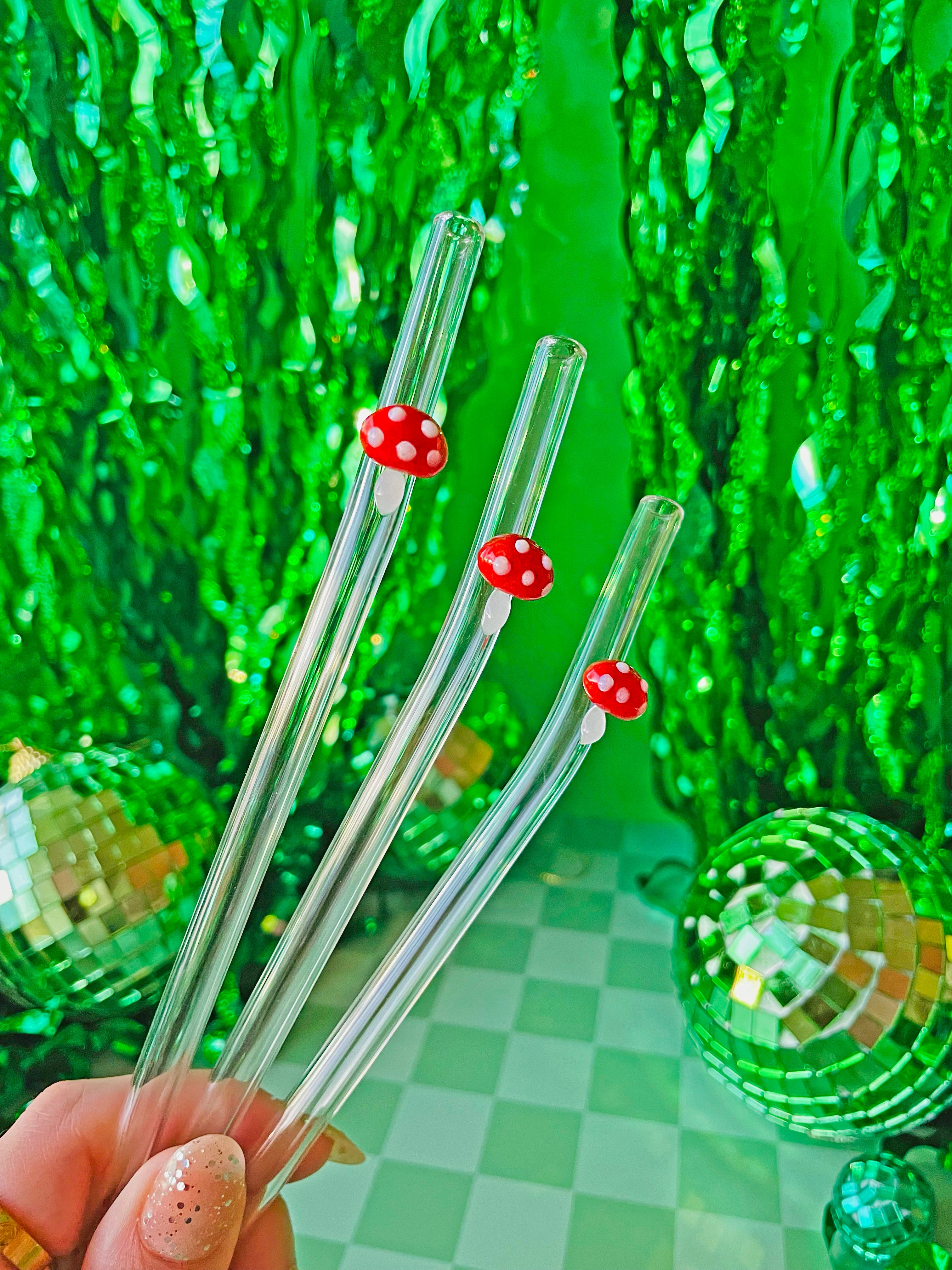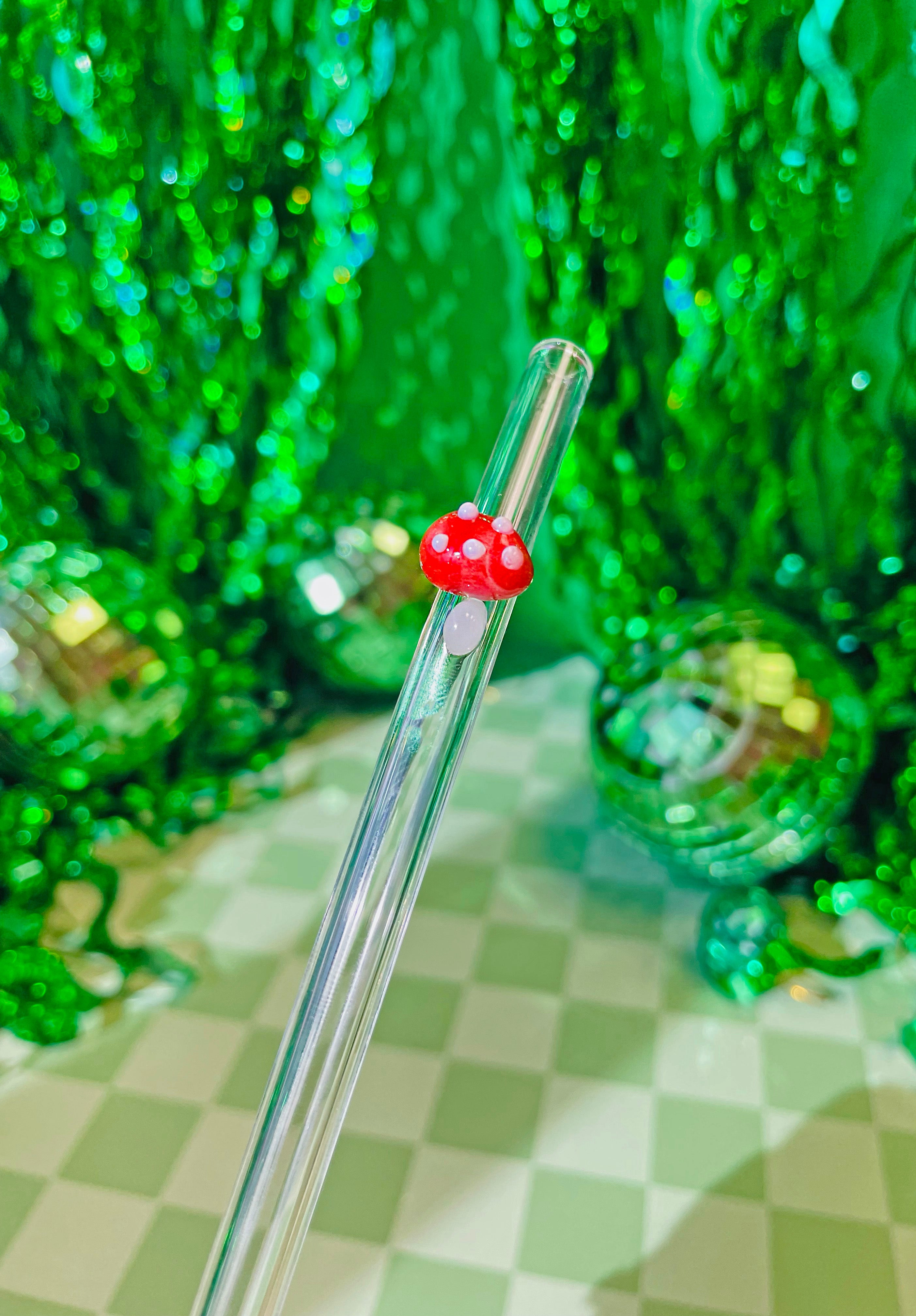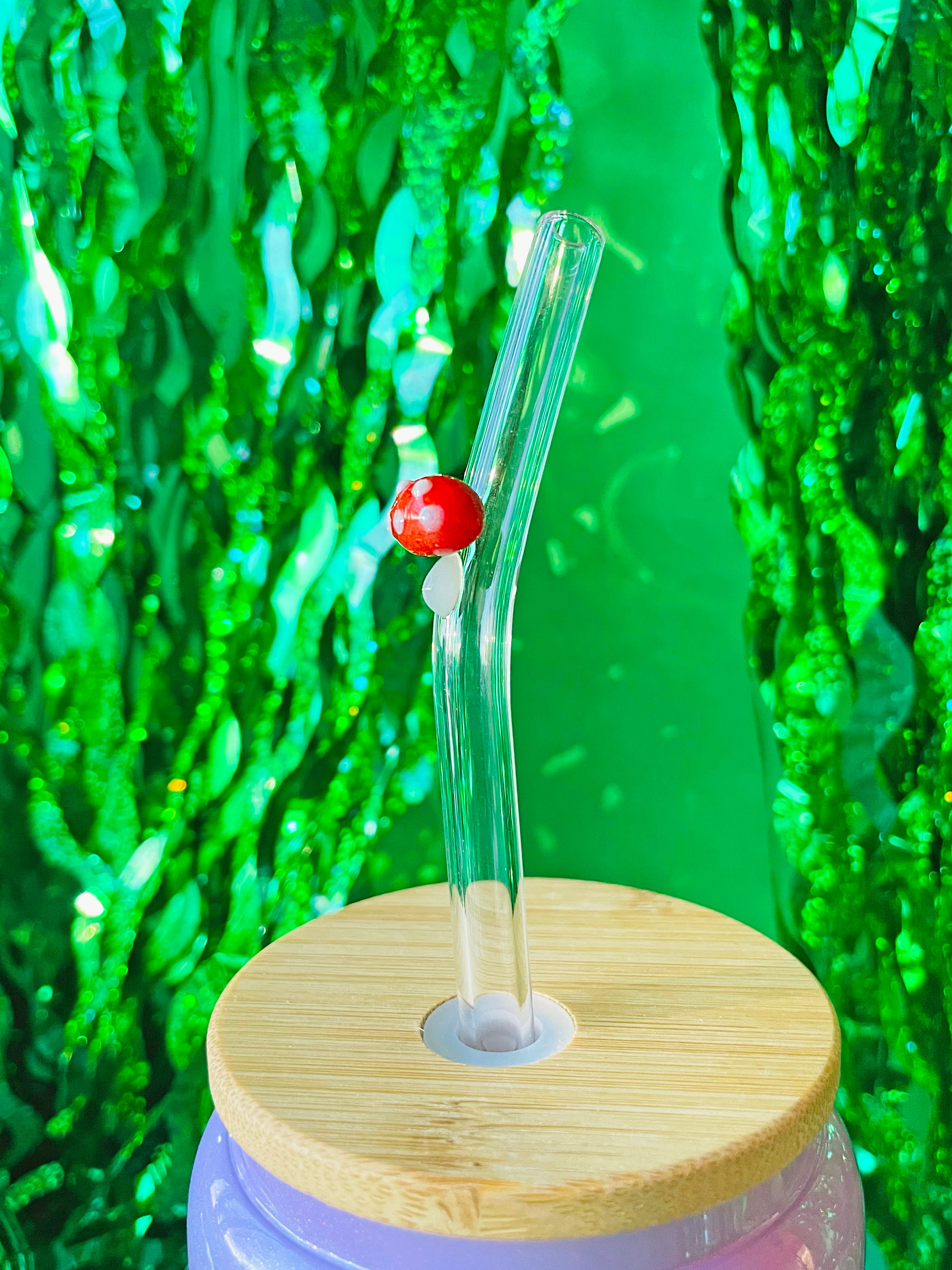 Made of glass, so no chance of that weird metallic taste you get with some metal straws. Features one little red mushroom at the top of the straw. So cute!Â