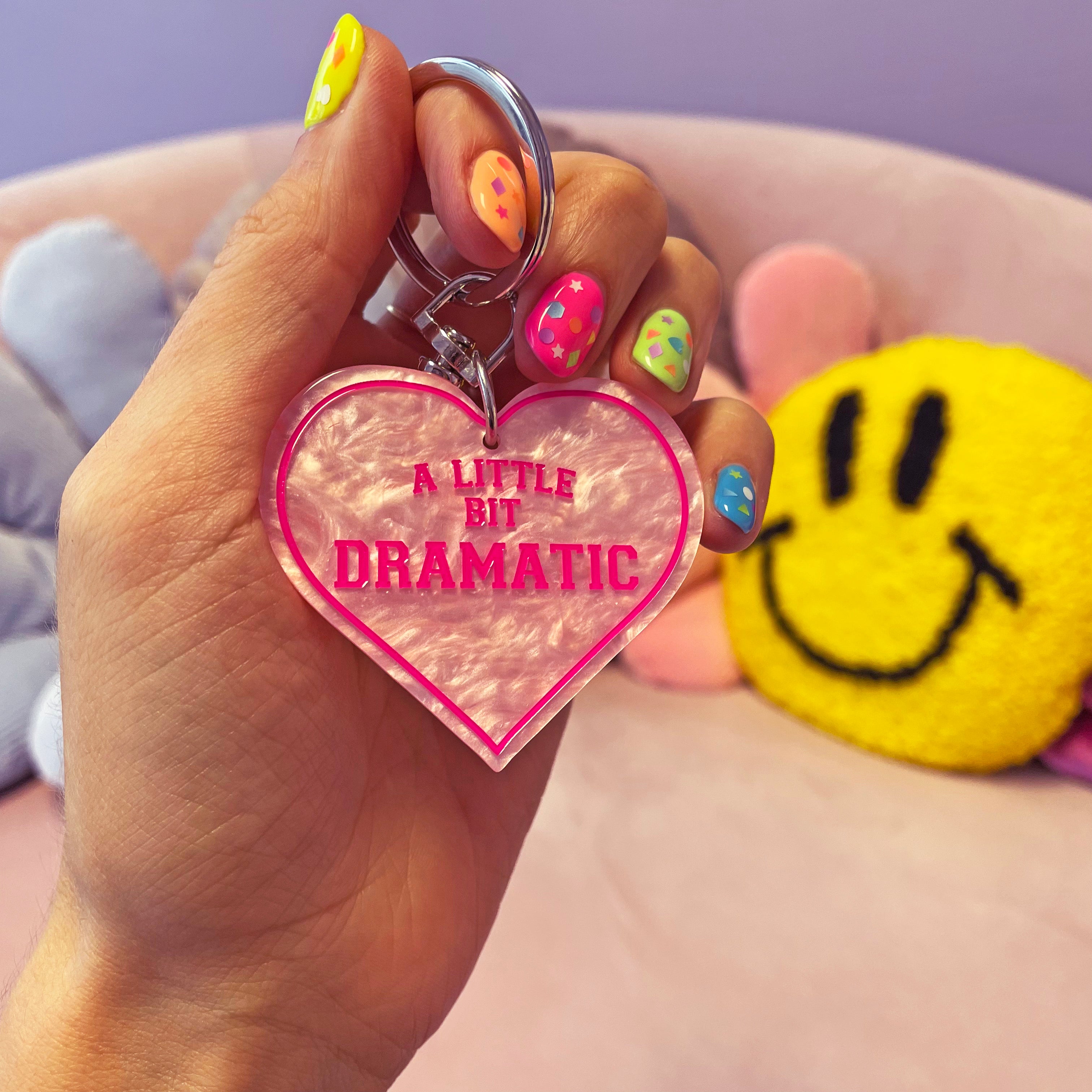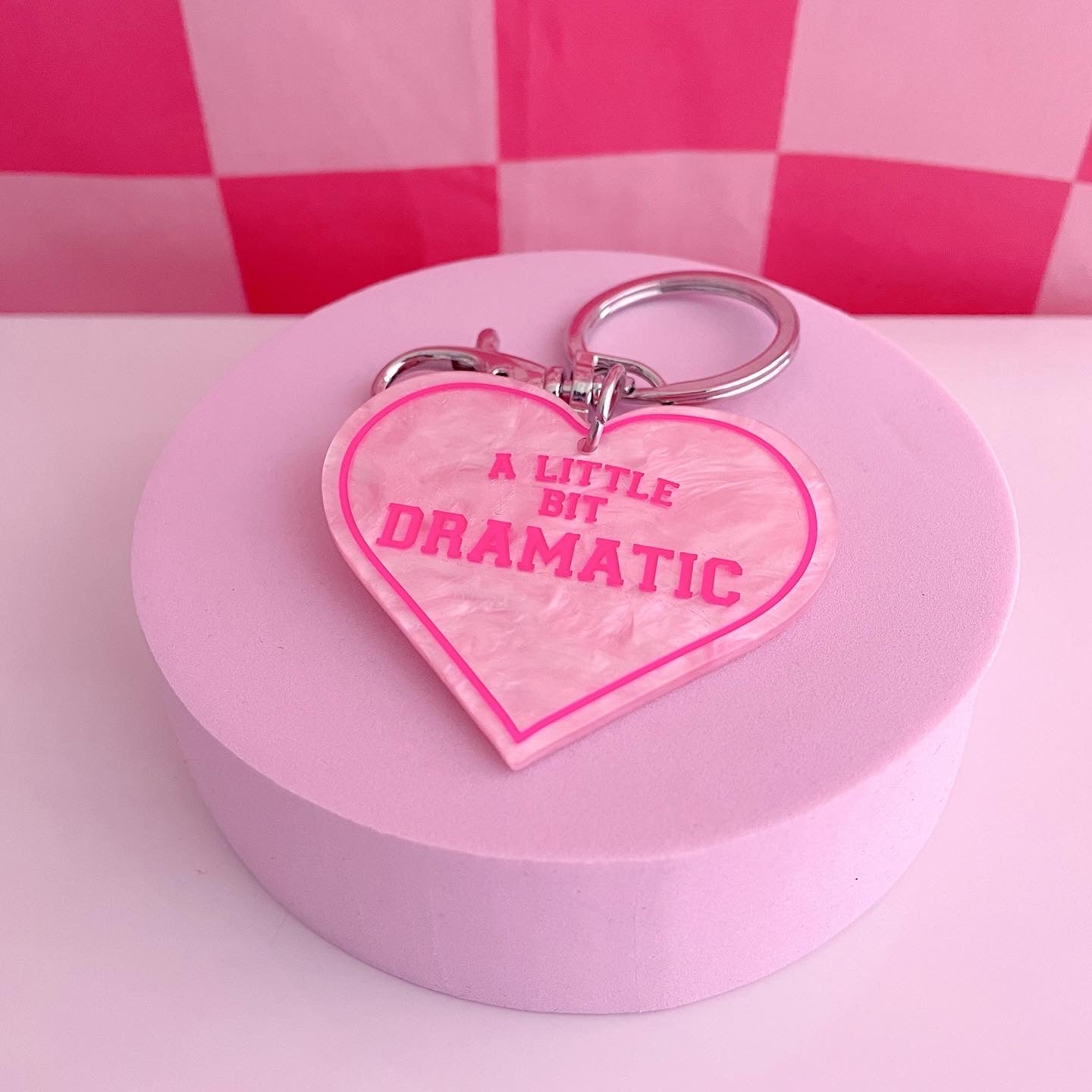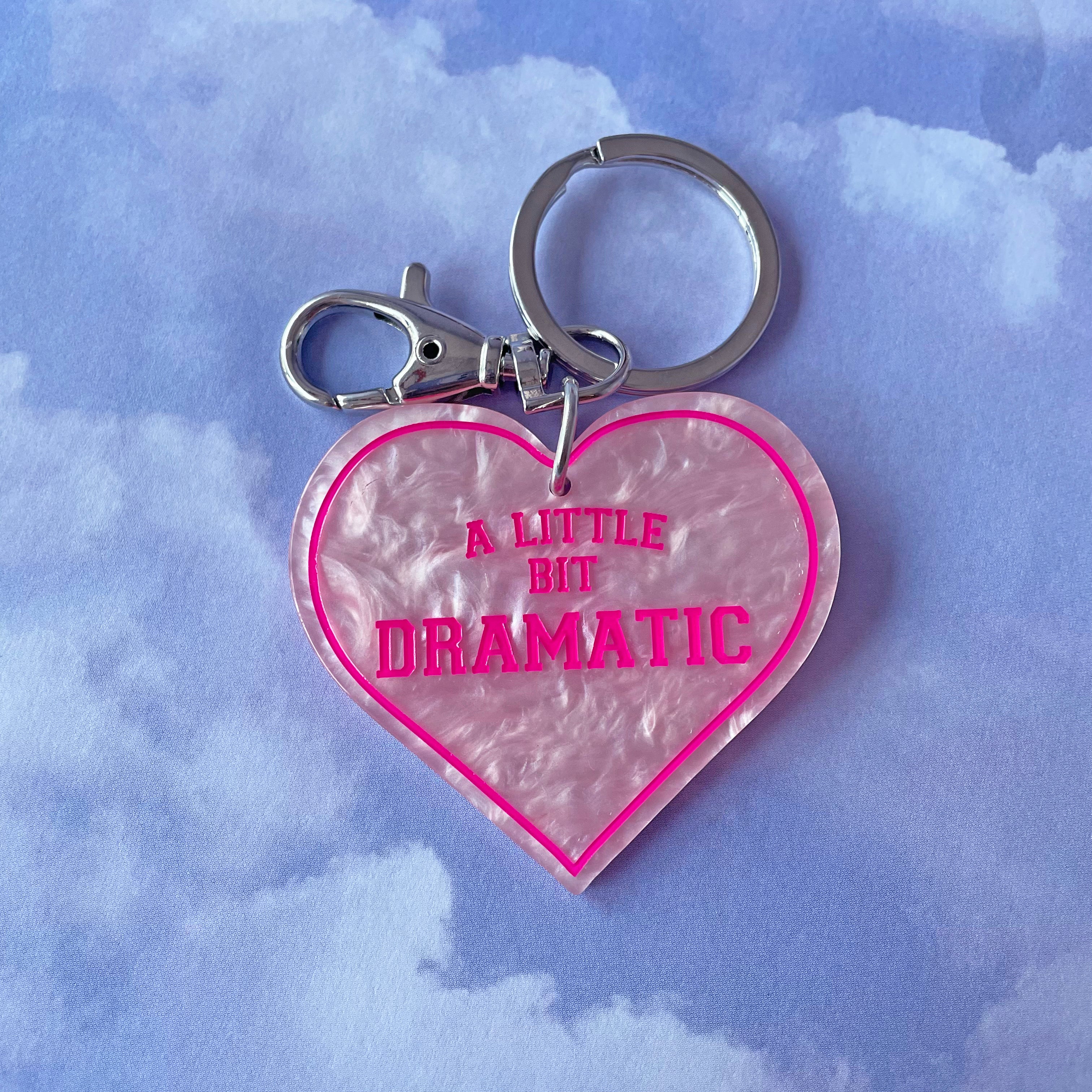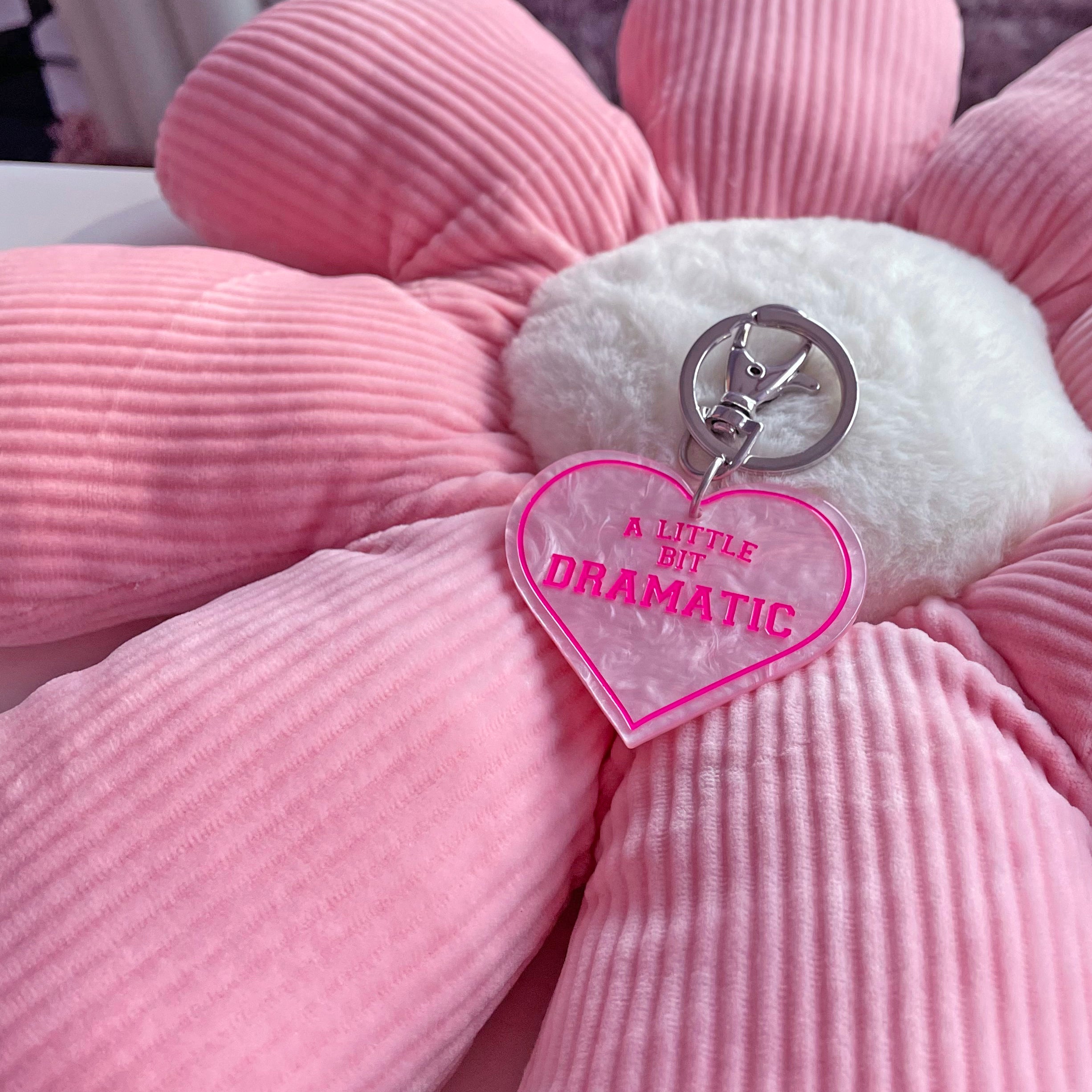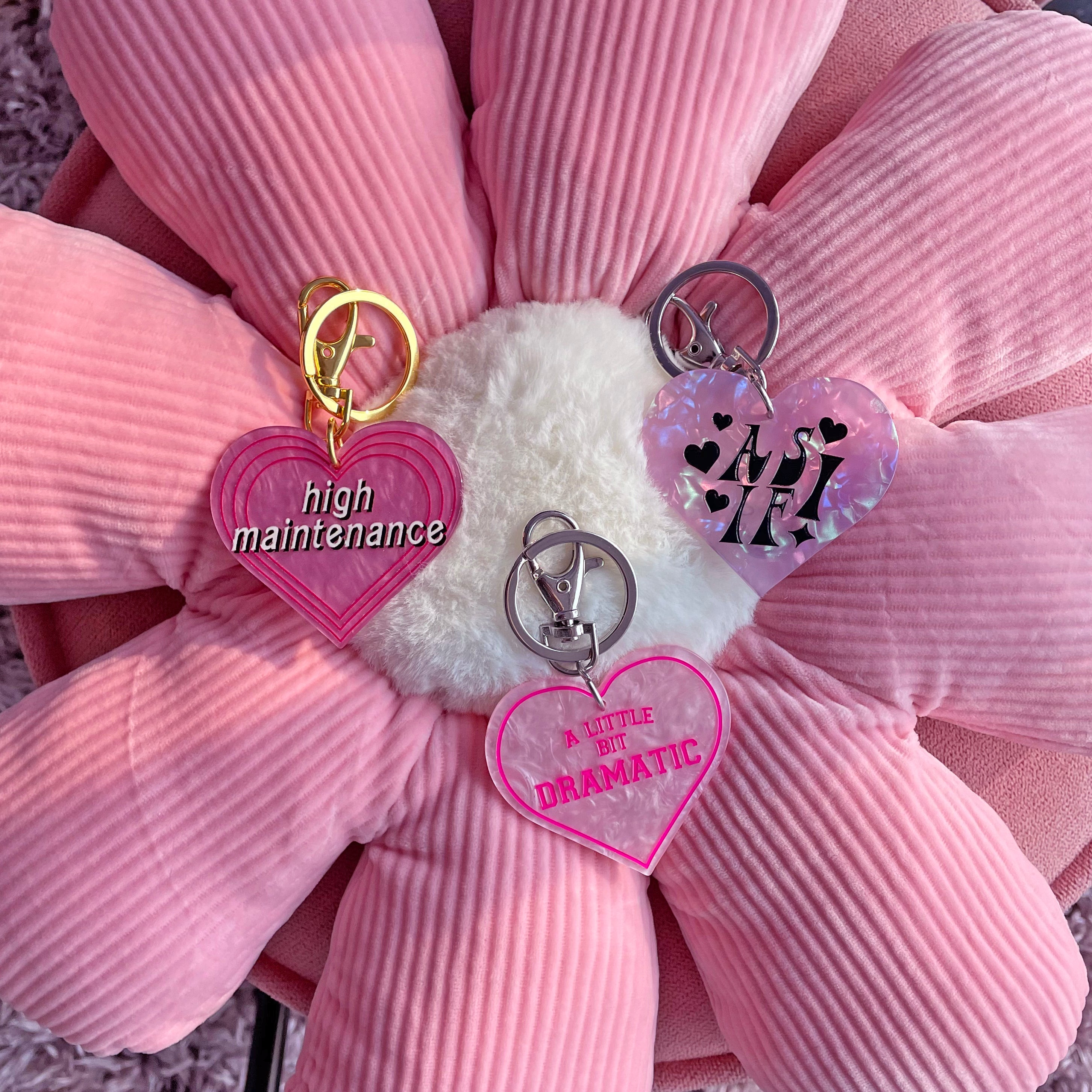 Light pink heart-shaped keychain harkons back to THAT t-shirt from Mean Girls.