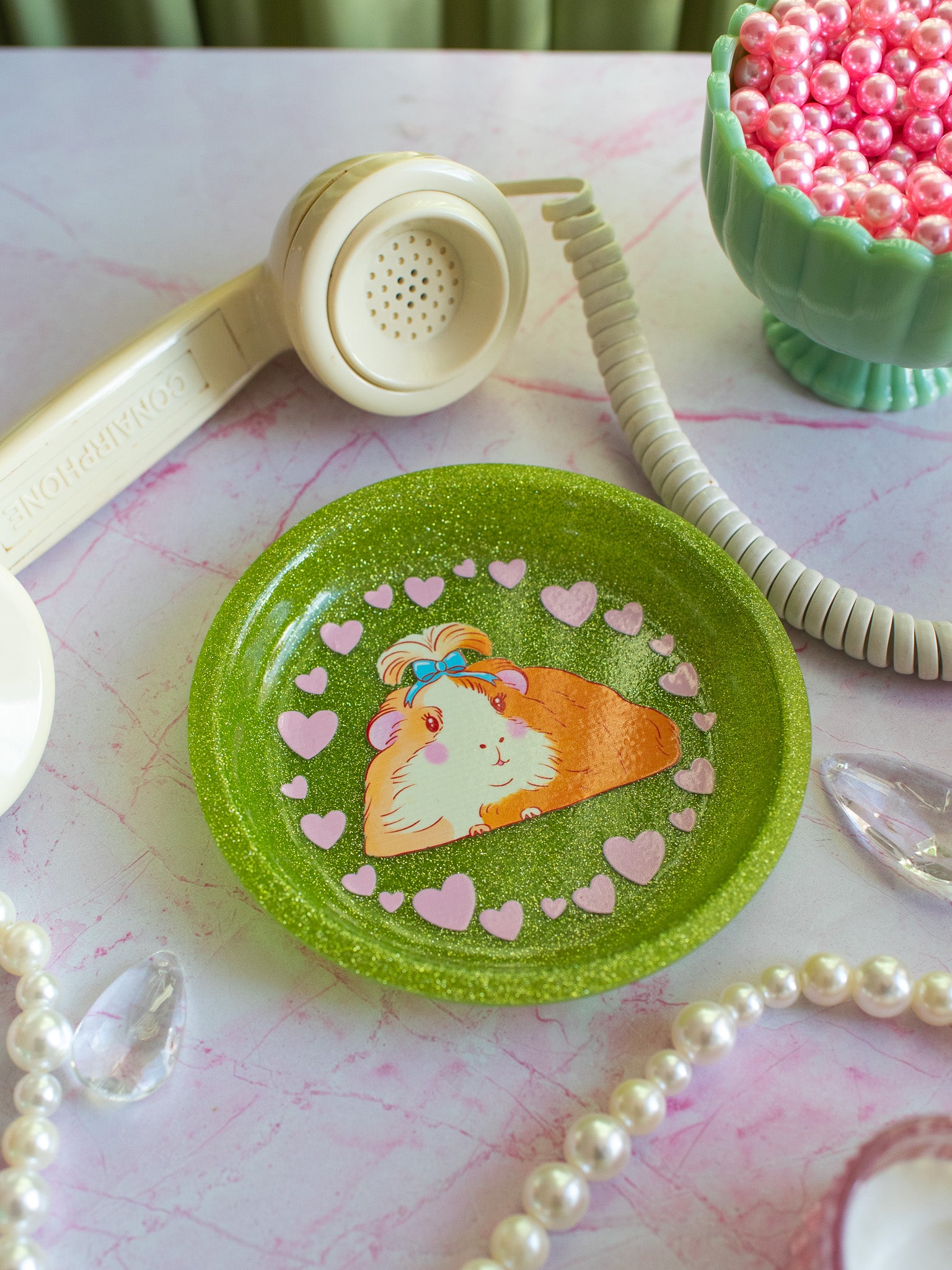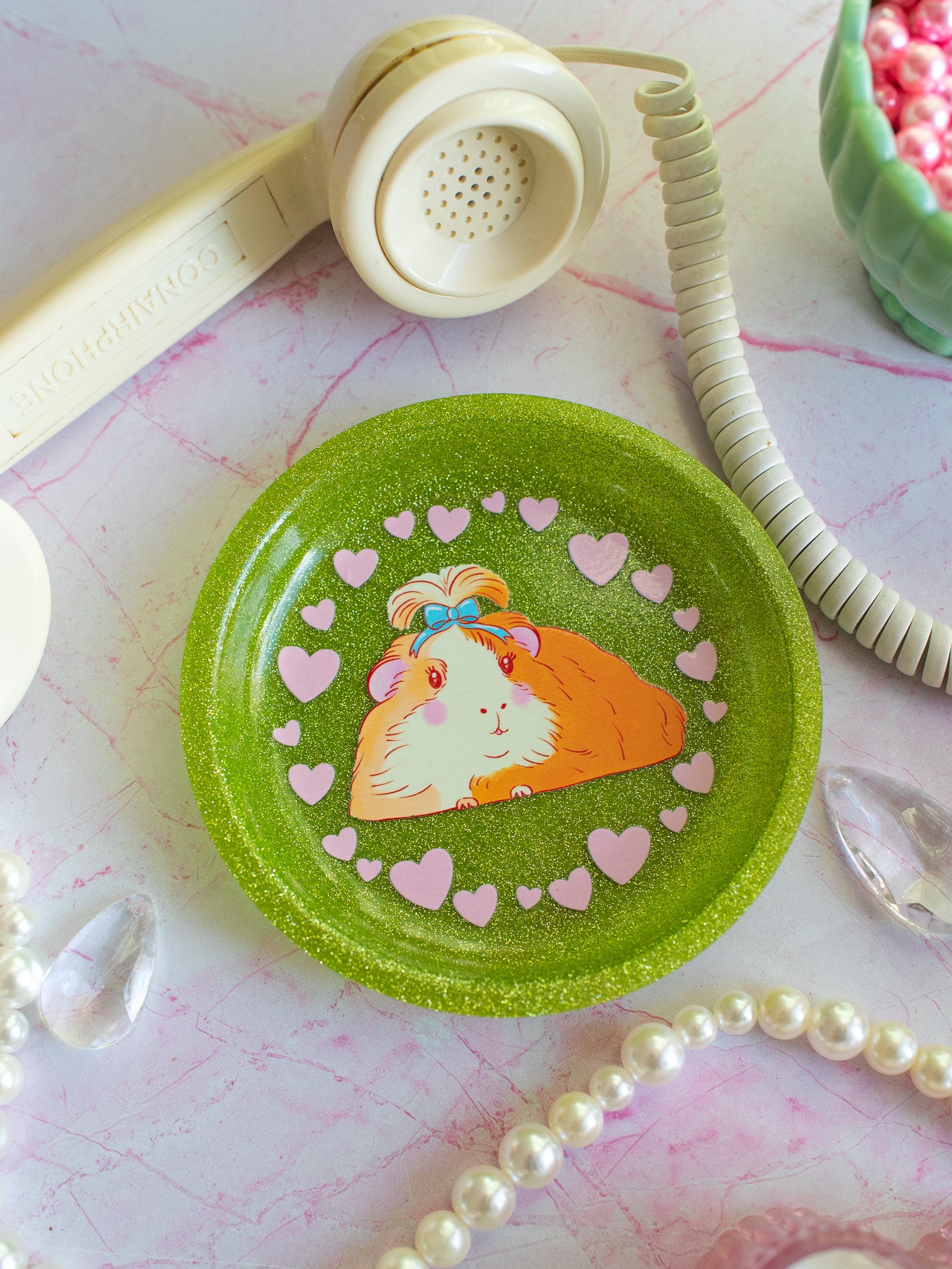 This tray is made from a gorgeous glittery green acrylic and is perfect for rolling or you can even use it as a trinket tray! Features a guinea pig with a hair bow π drawn by Claire Shadomy!