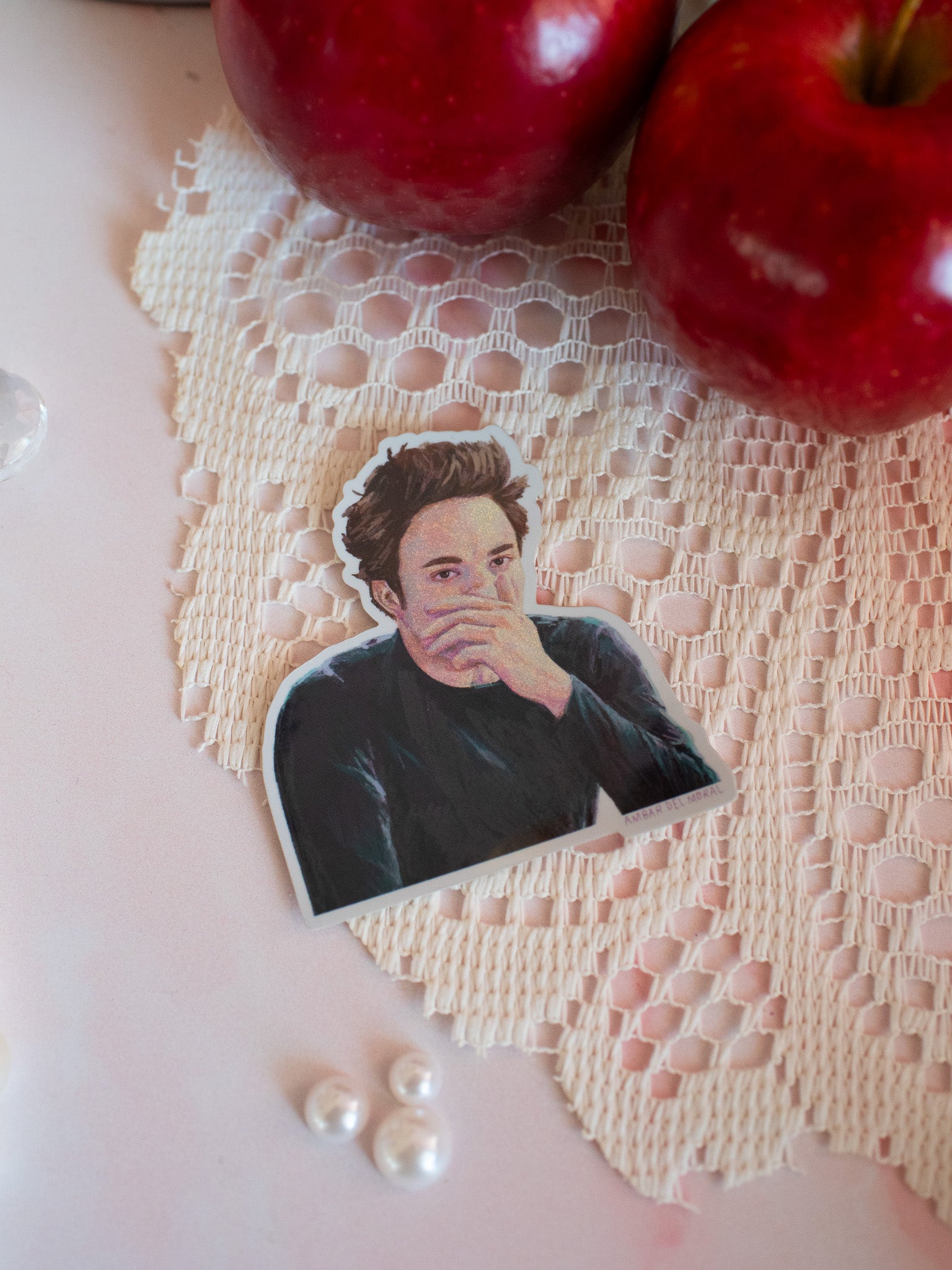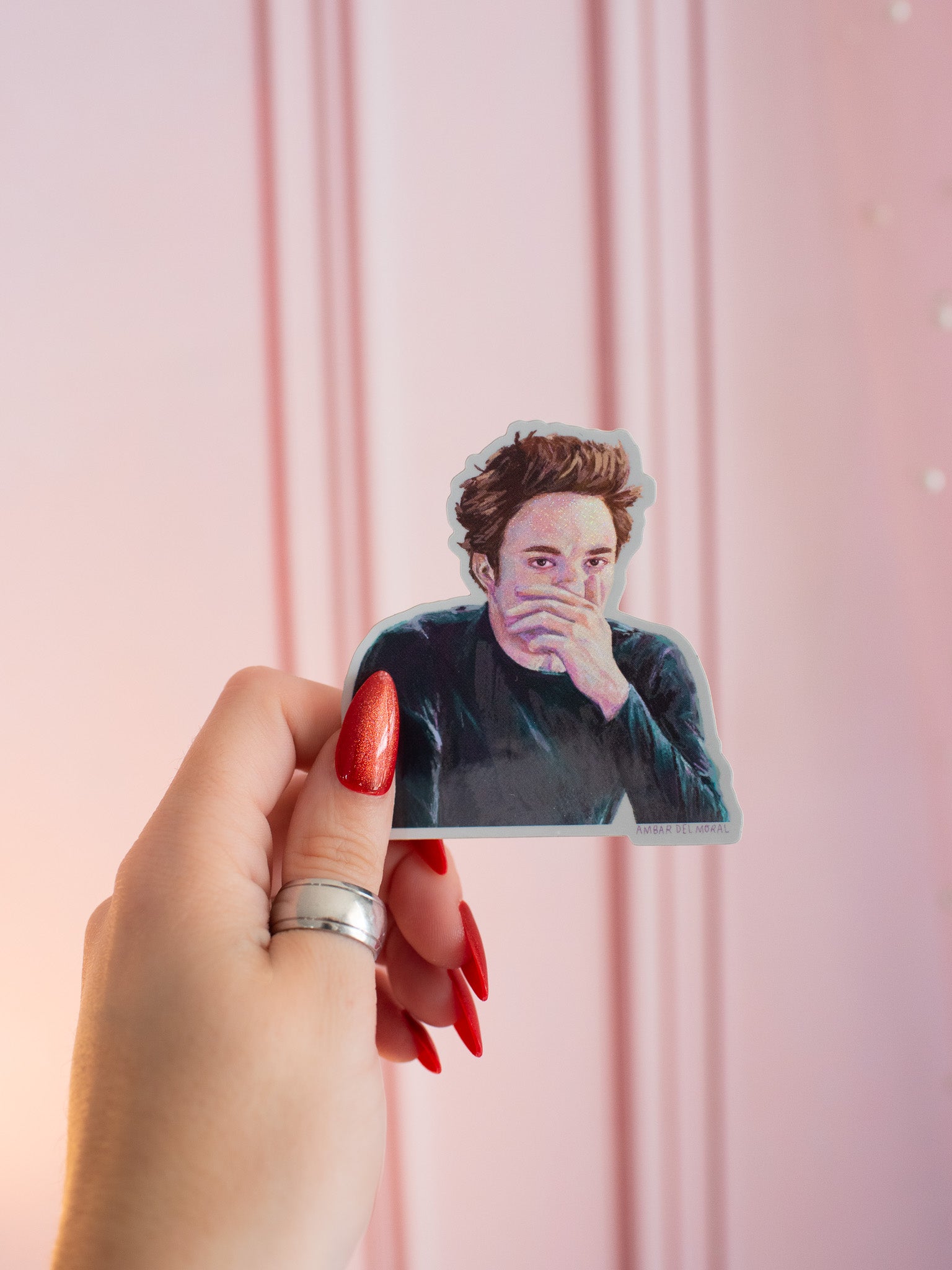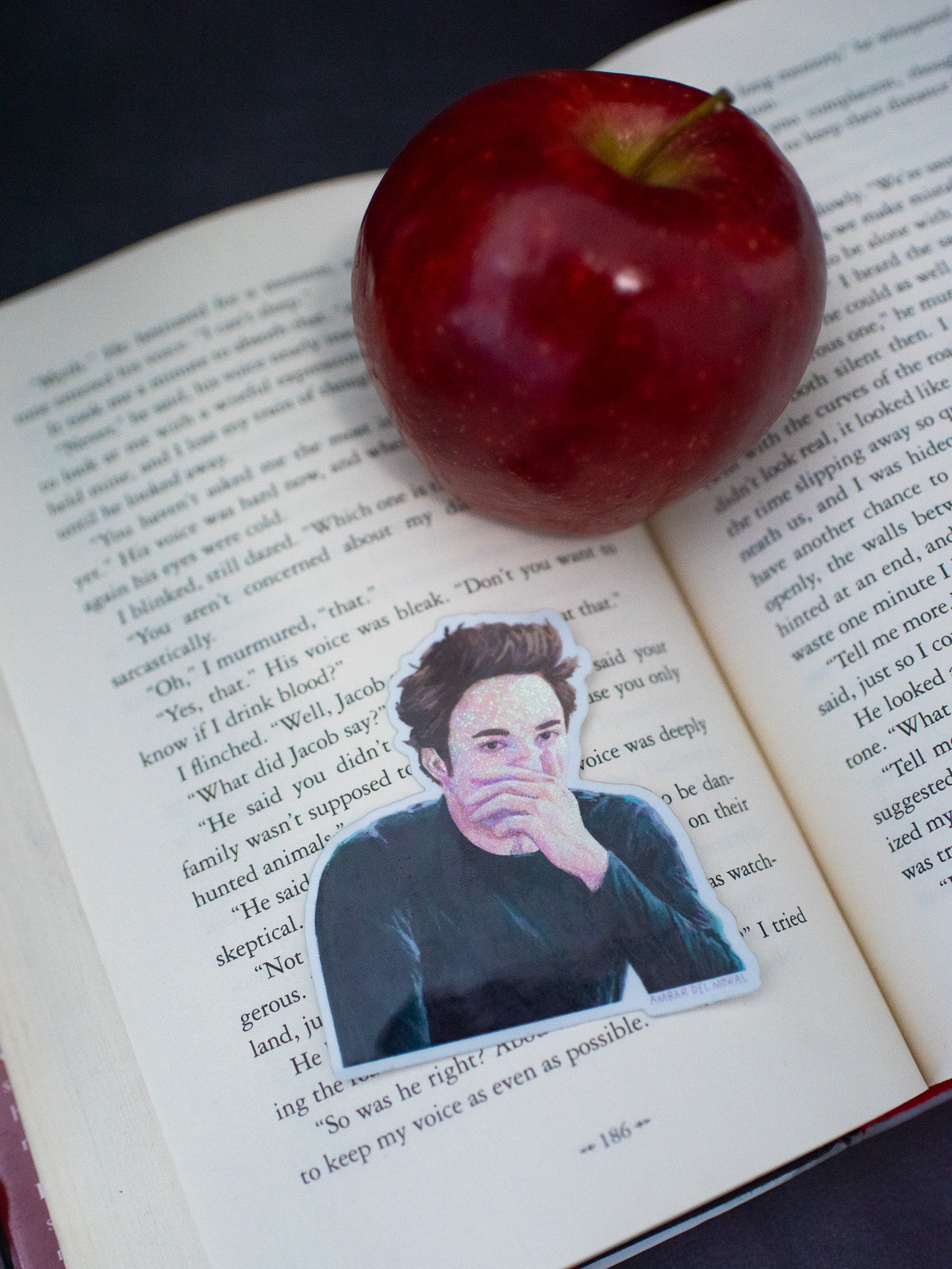 This vinyl sticker features a glittery Edward Cullen covering his nose because he cannot stand the smell of that one girl in class.