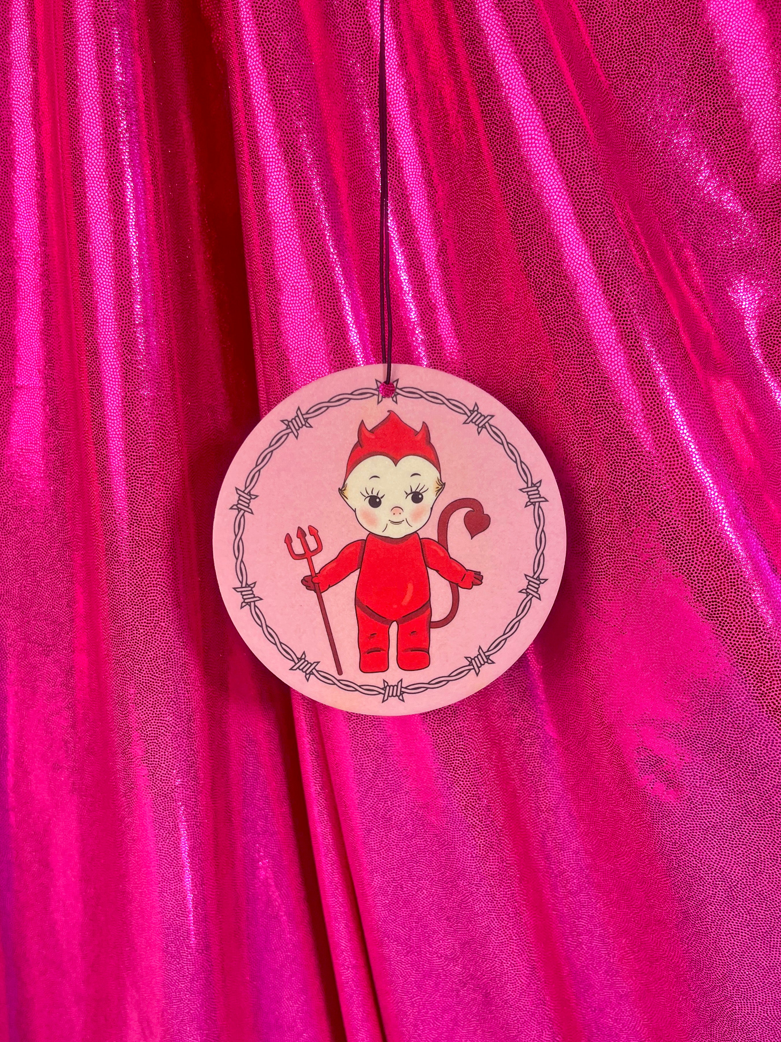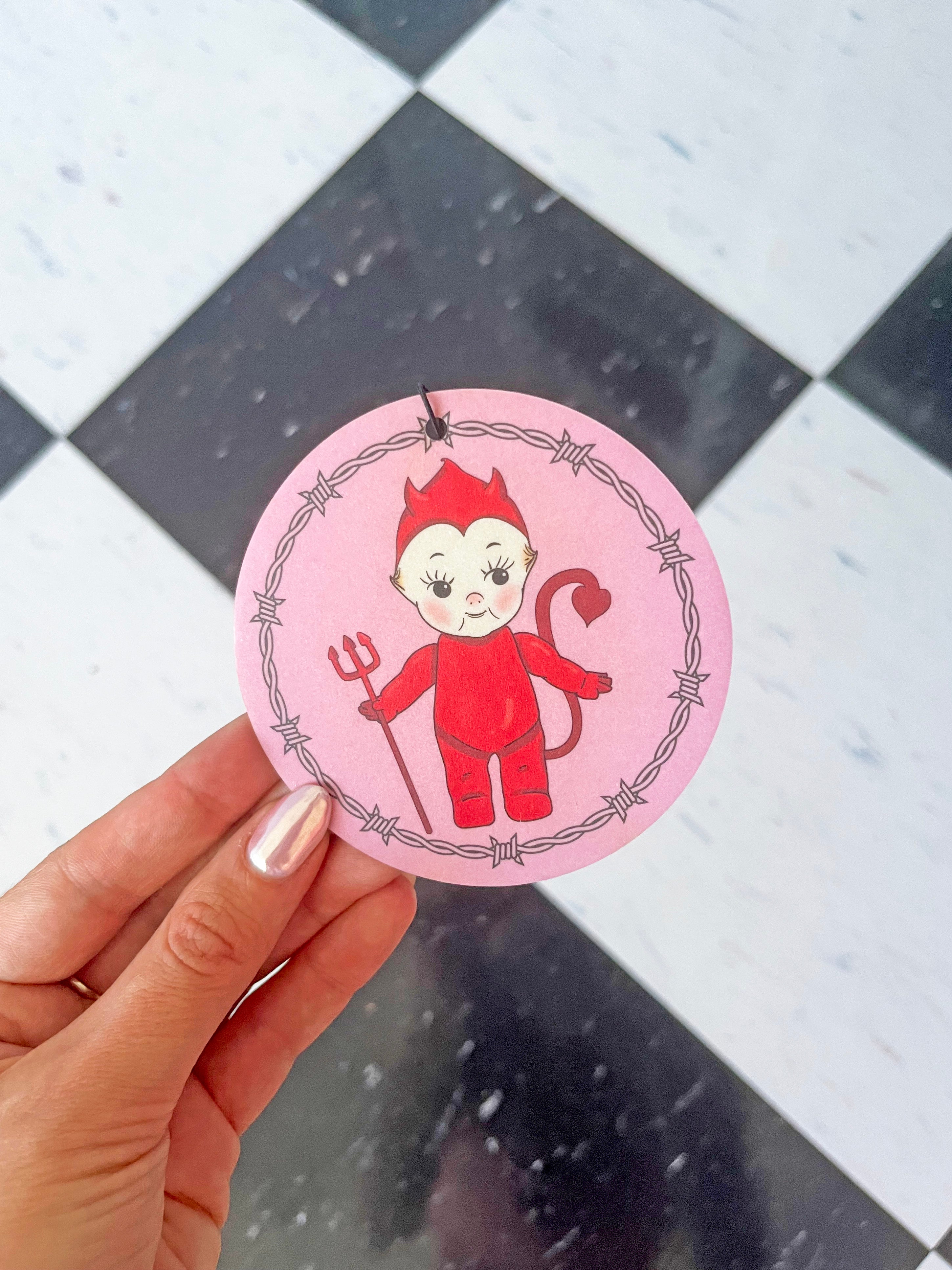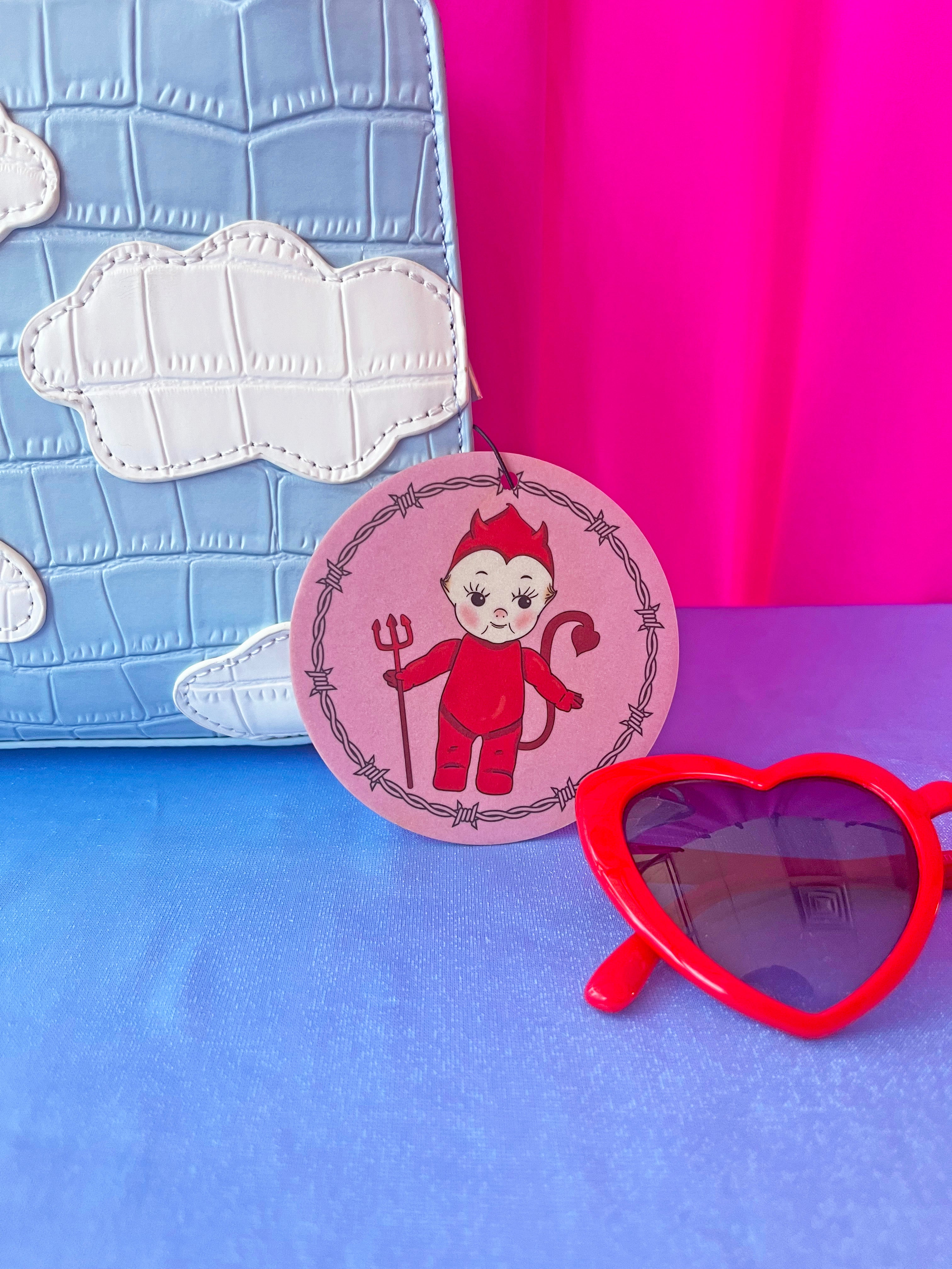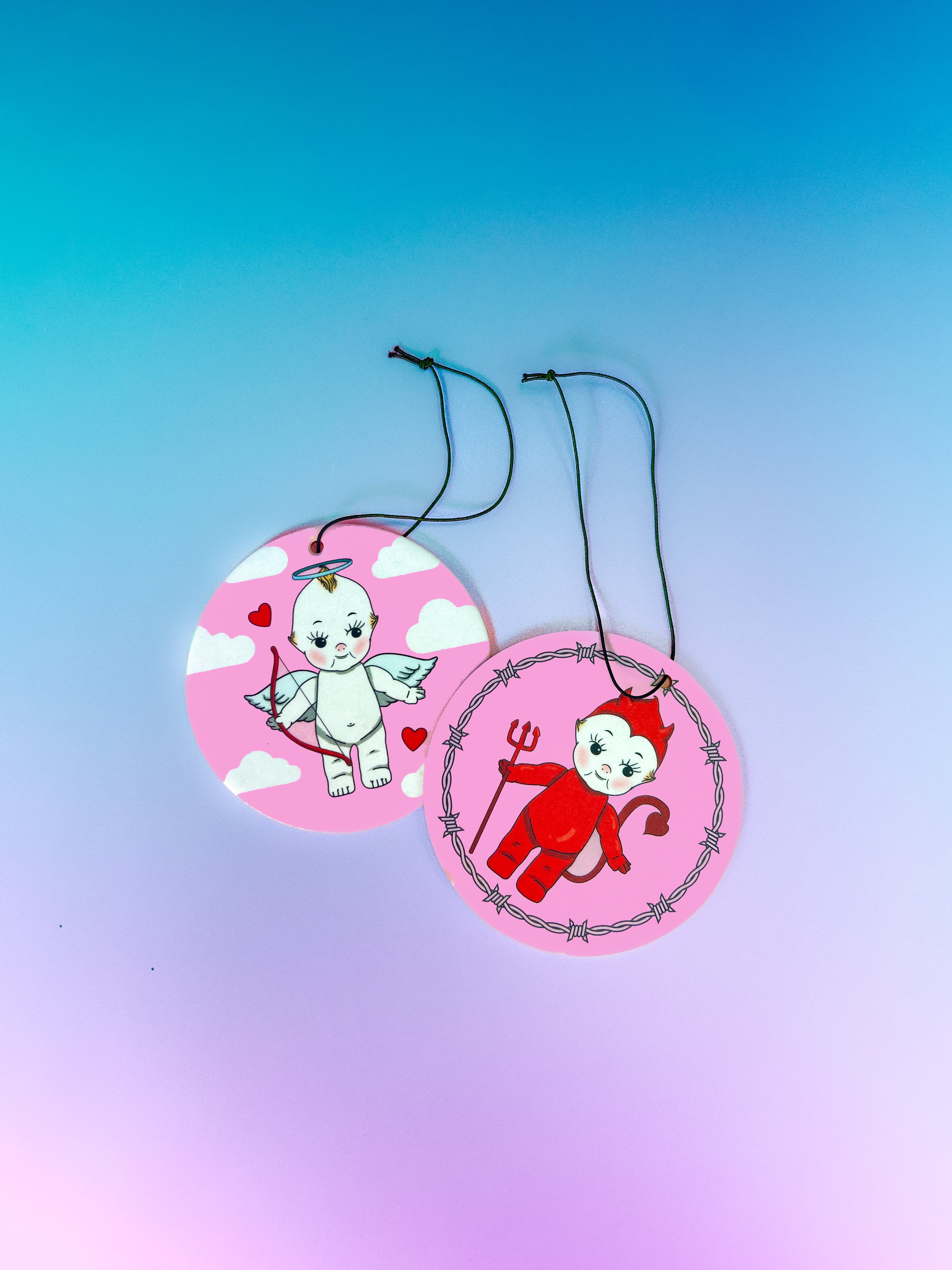 I'm just a baby angel/devil! This air freshener is unique in that both sides are a different kewpie design! One for each of your personalities.