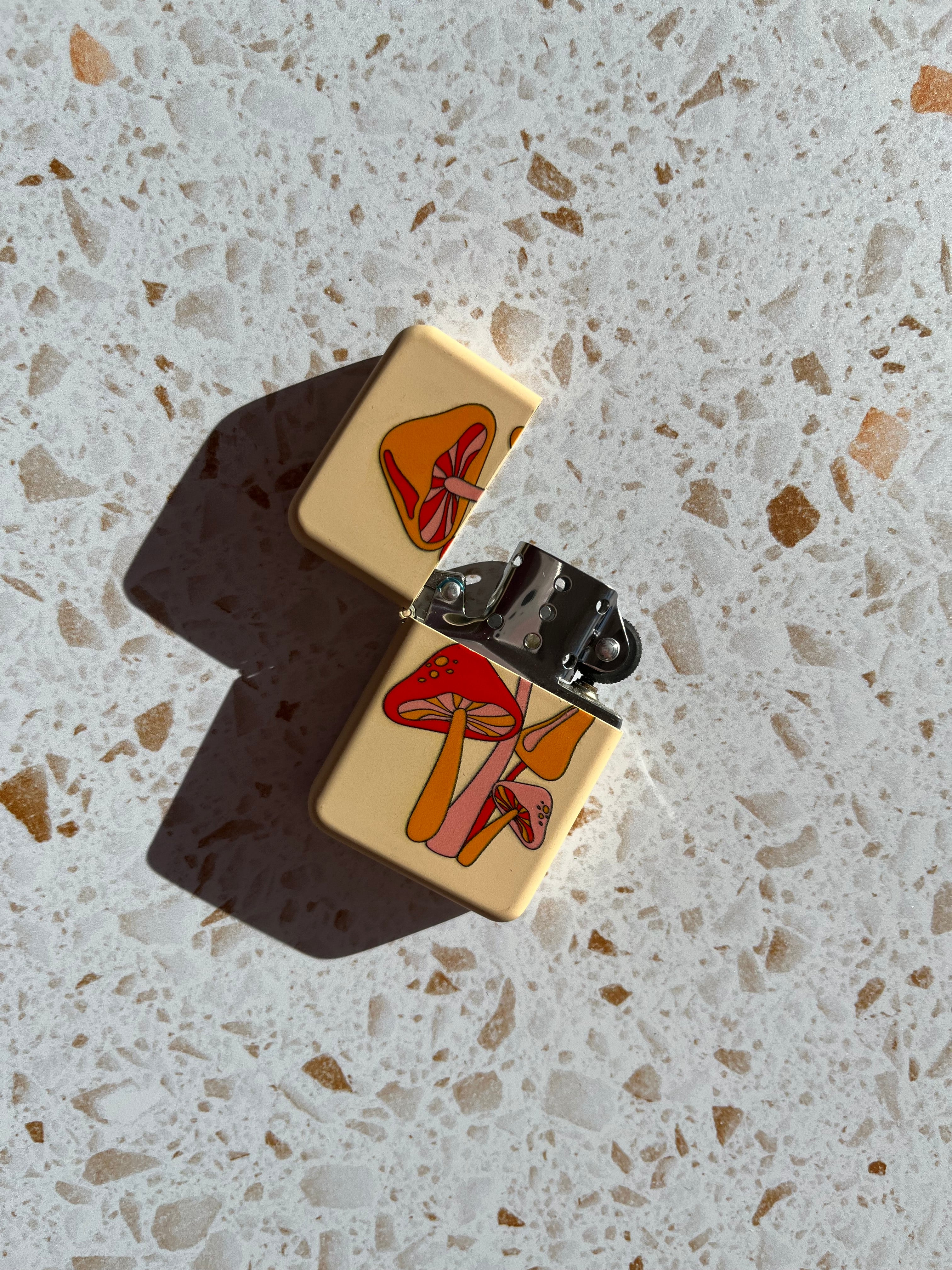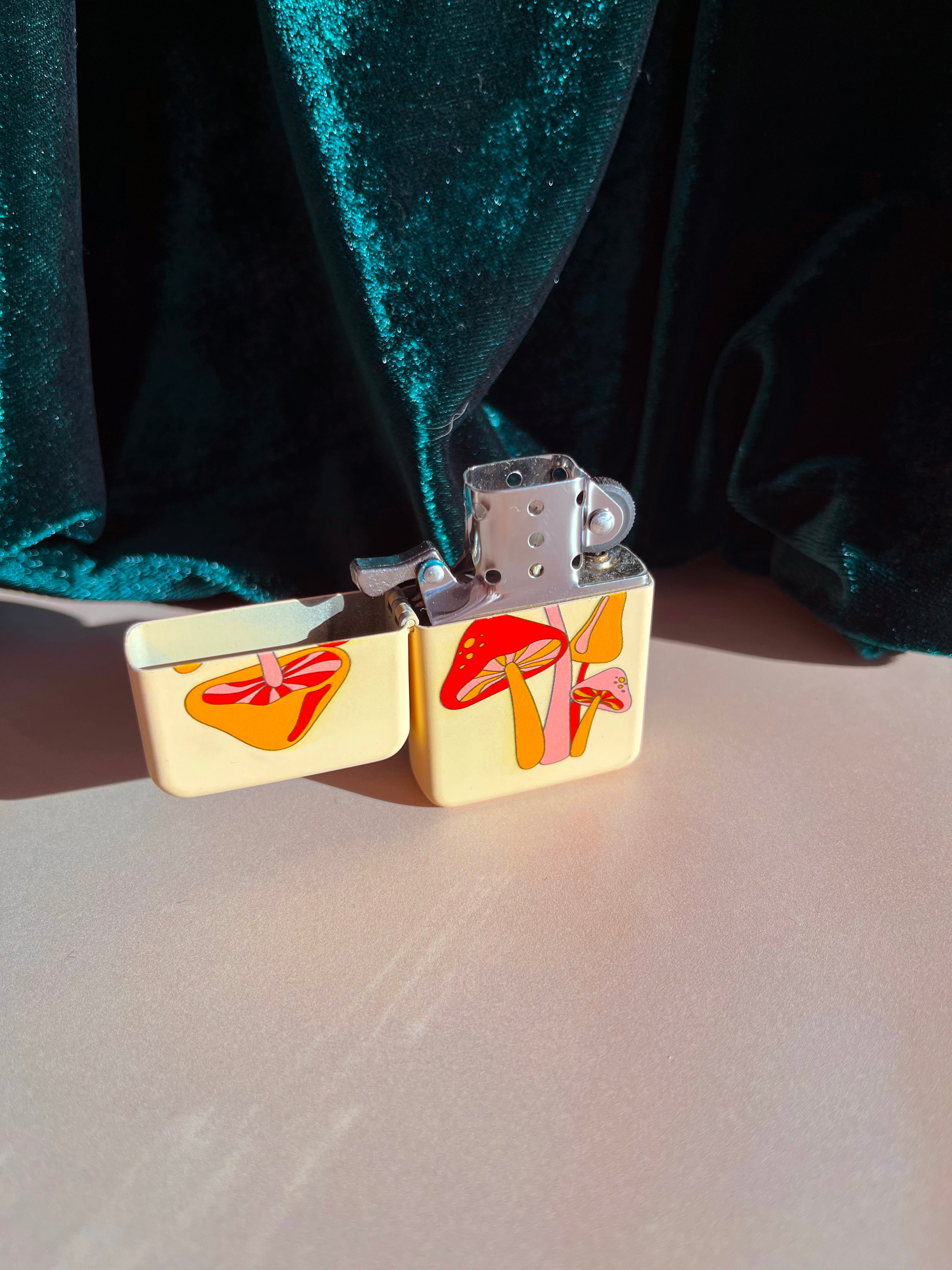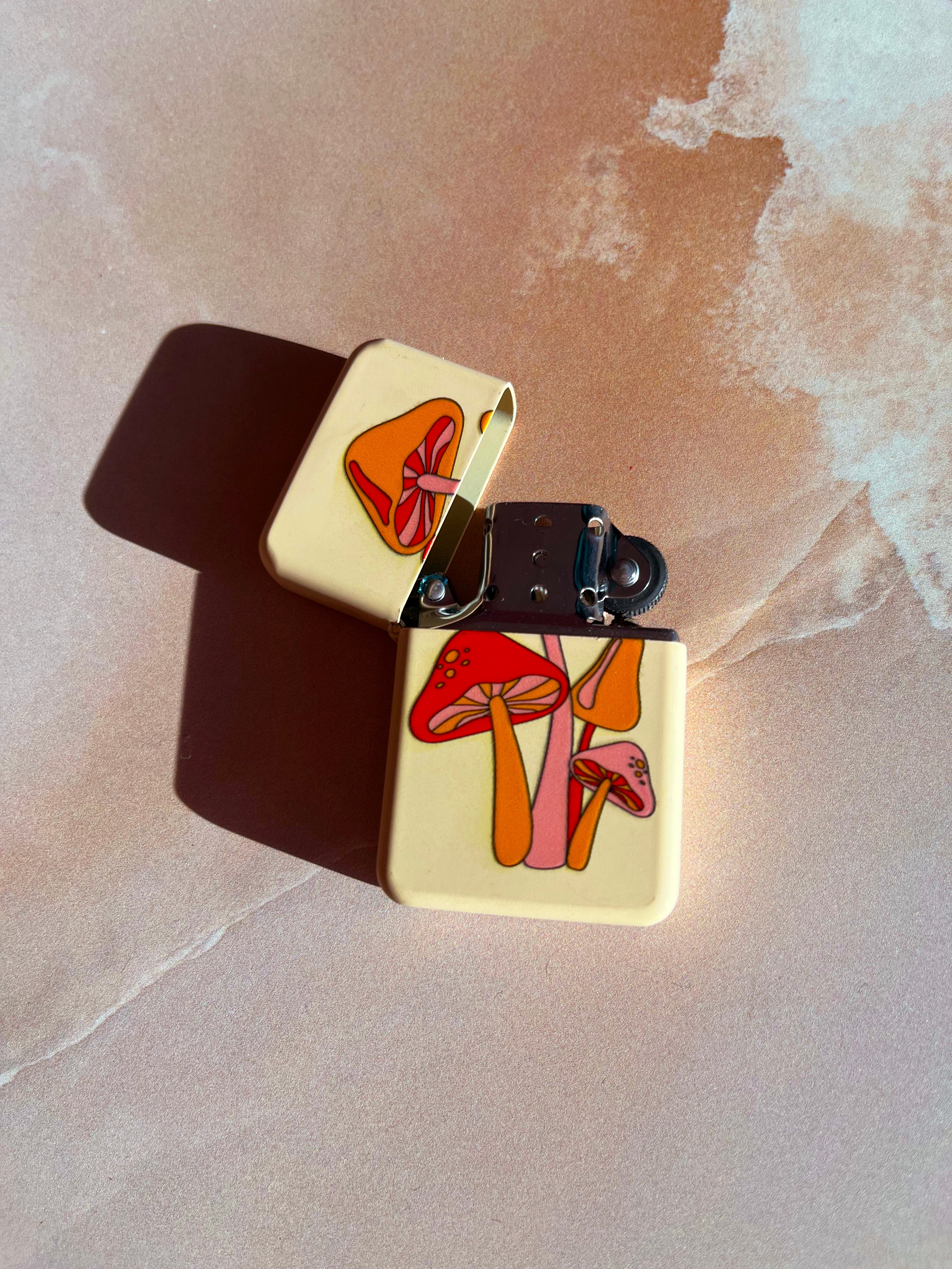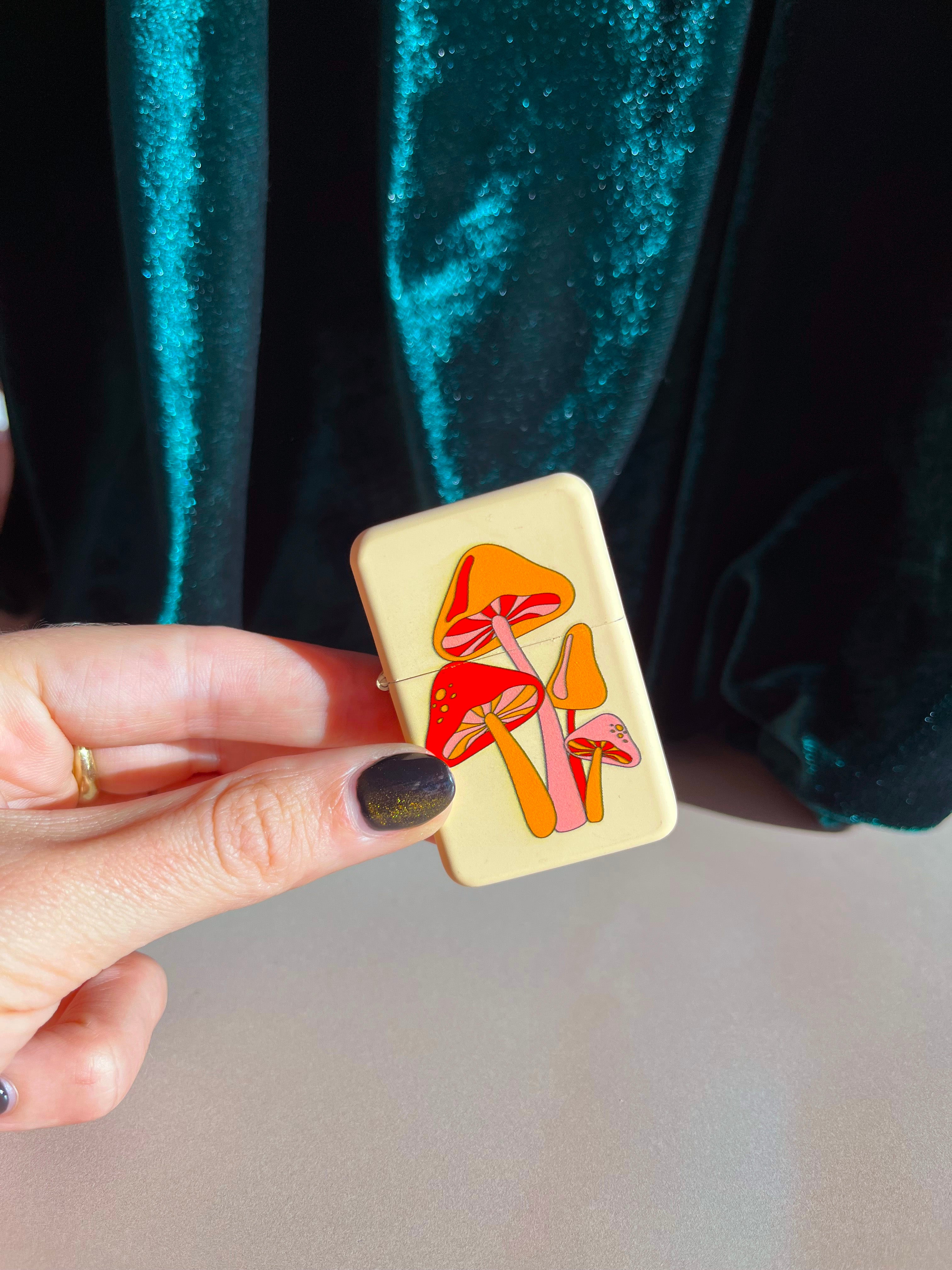 This lighter features a cute little fungi fam on the front and perfectly matches our magic mushie cones! Perfect for lighting cigarettes, candles, or whatever else you need a fire for!