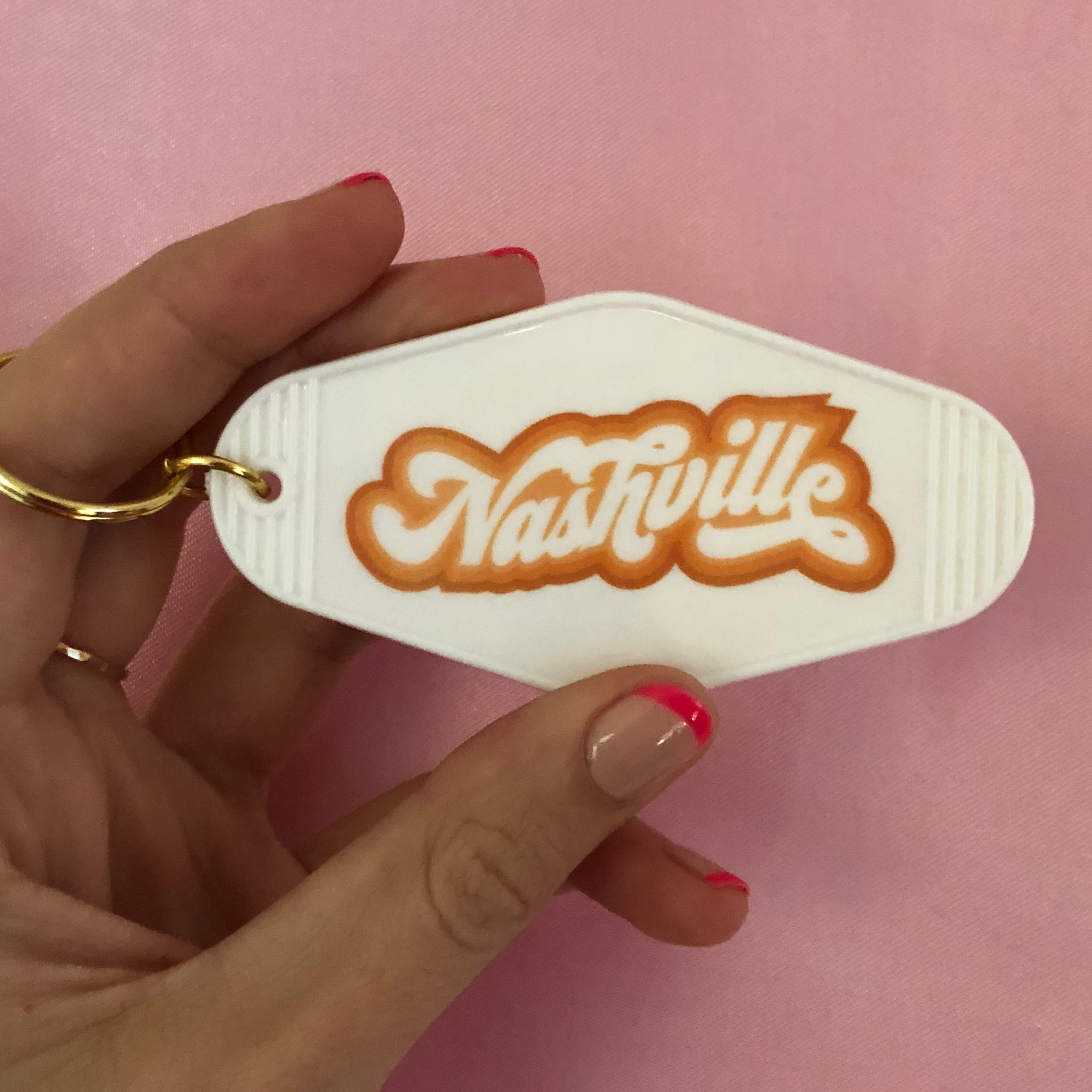 Keychain is 3.5" white plastic with a 1.25" keyring for all your keychains.