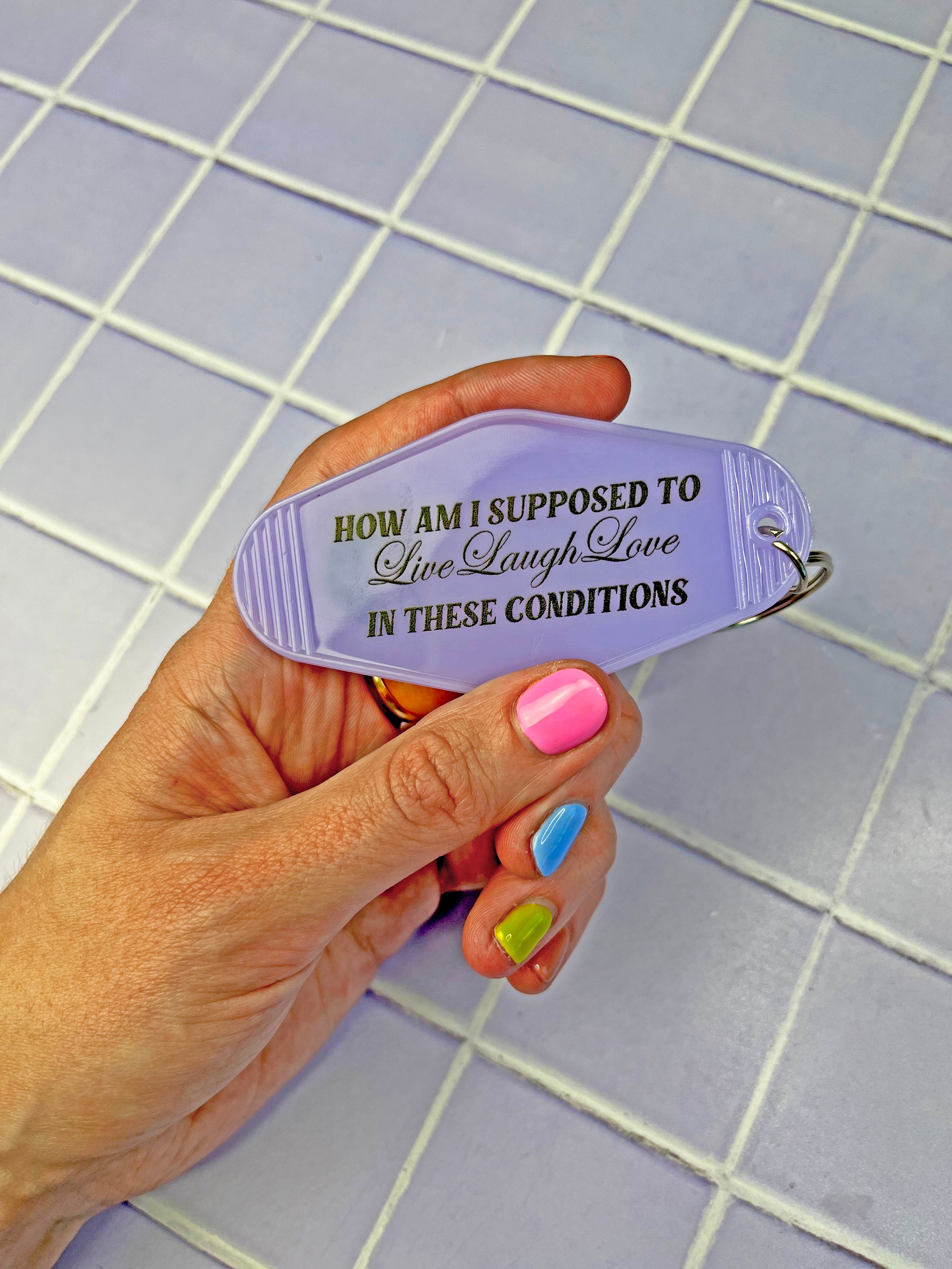 Vintage motel style keychain is 3.5" jelly purple plastic with a 1.25" keyring for all your keychains.