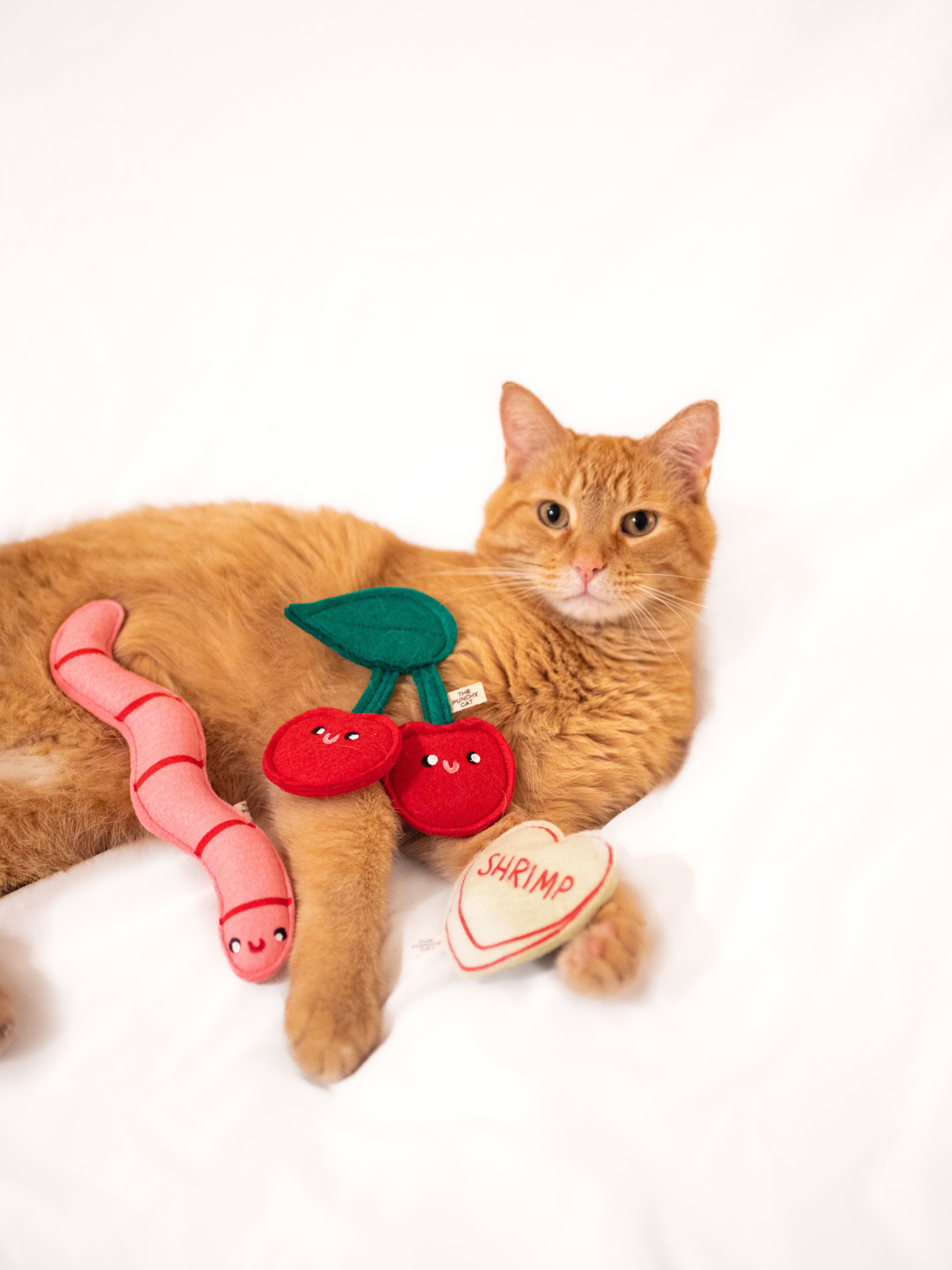 This catnip toy is cherry cuuuuute! Made with super potent catnip that is sure to keep both you and your cat entertained.