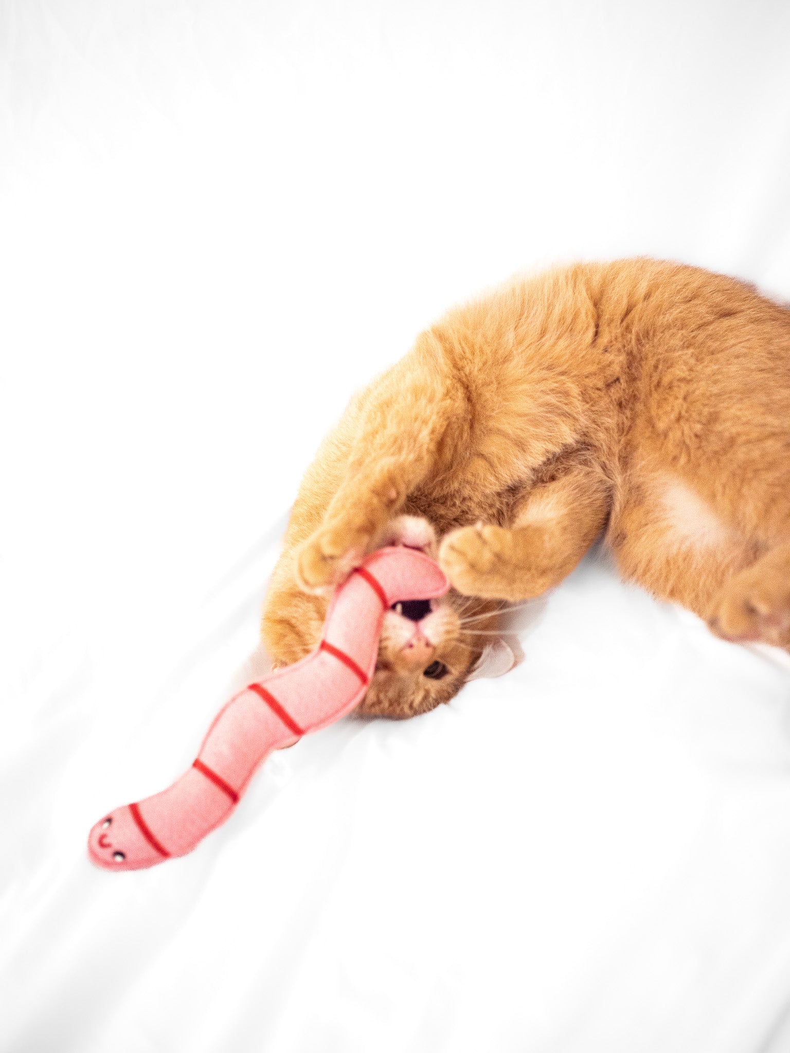 This pink worm with red stripes measures 9” and is made with super potent organic catnip.
