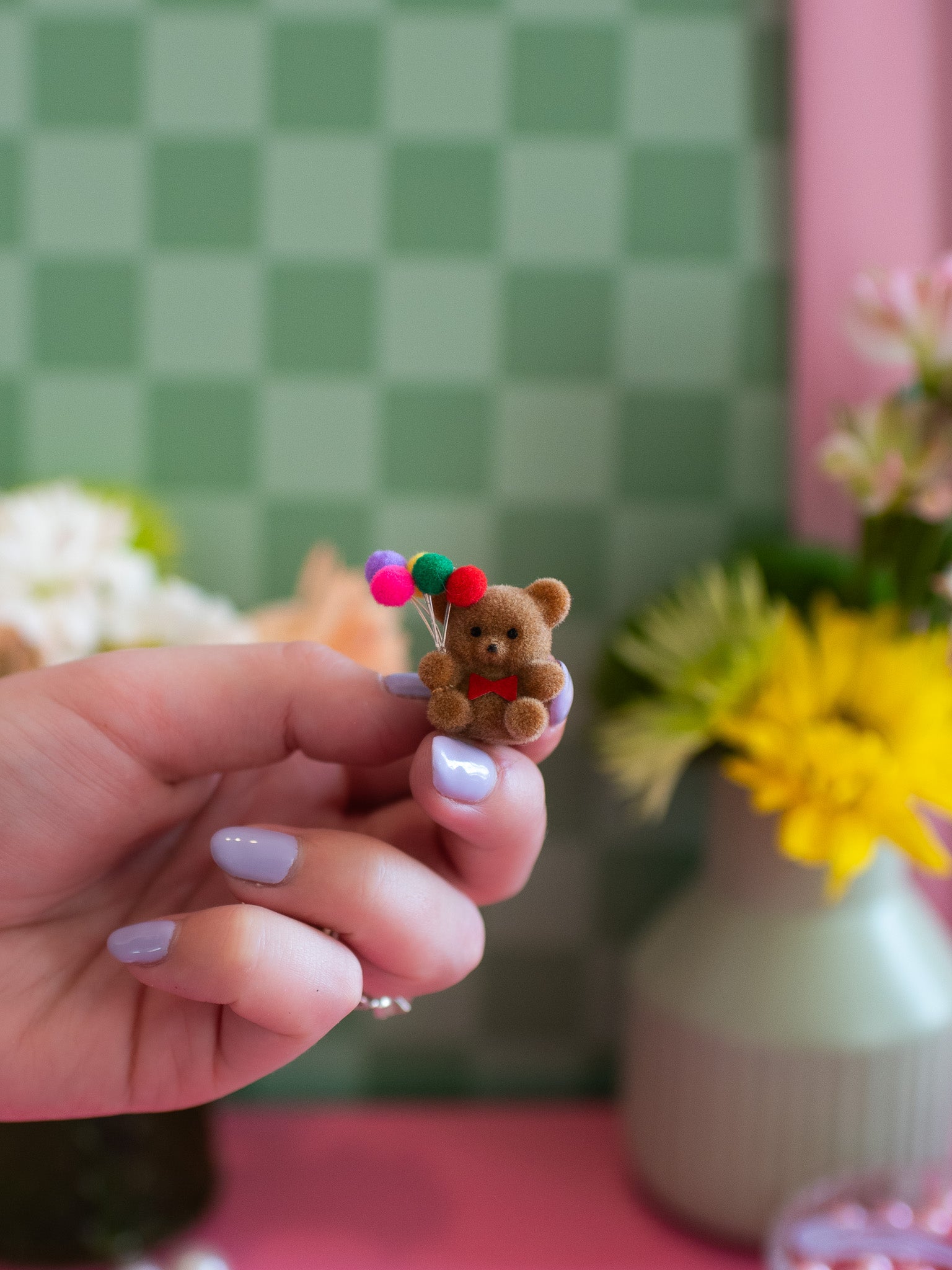This adorable felt bear is holding equally adorable, multicolored balloons that will remind you that while not every day is your birthday, you can always pretend that you're the main character, 365 days a year!