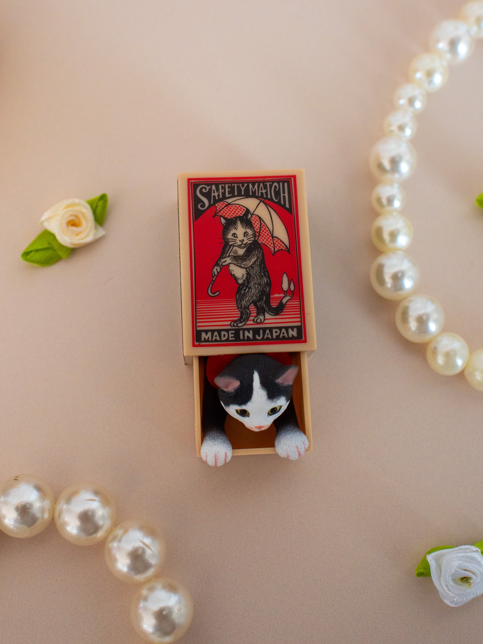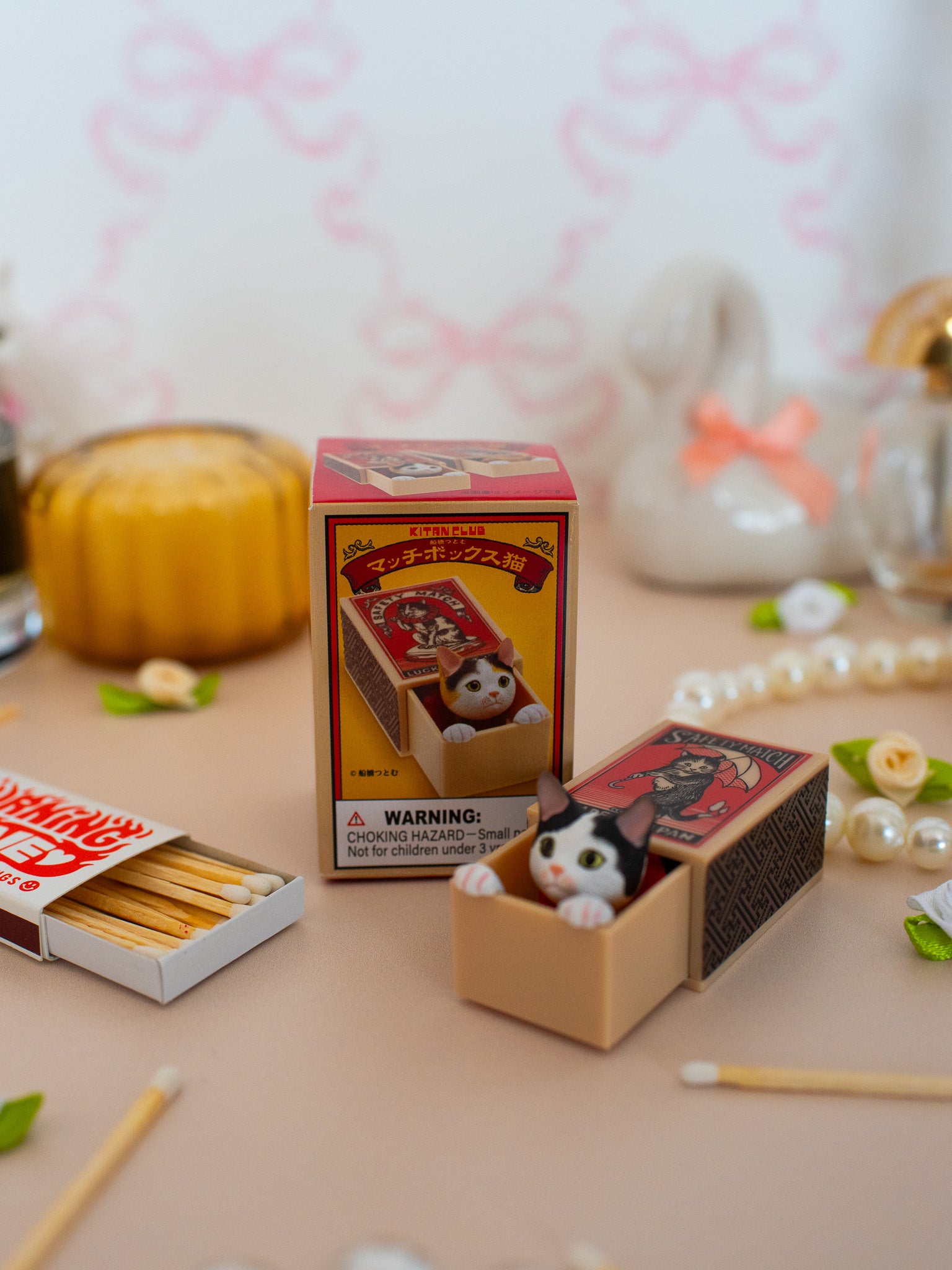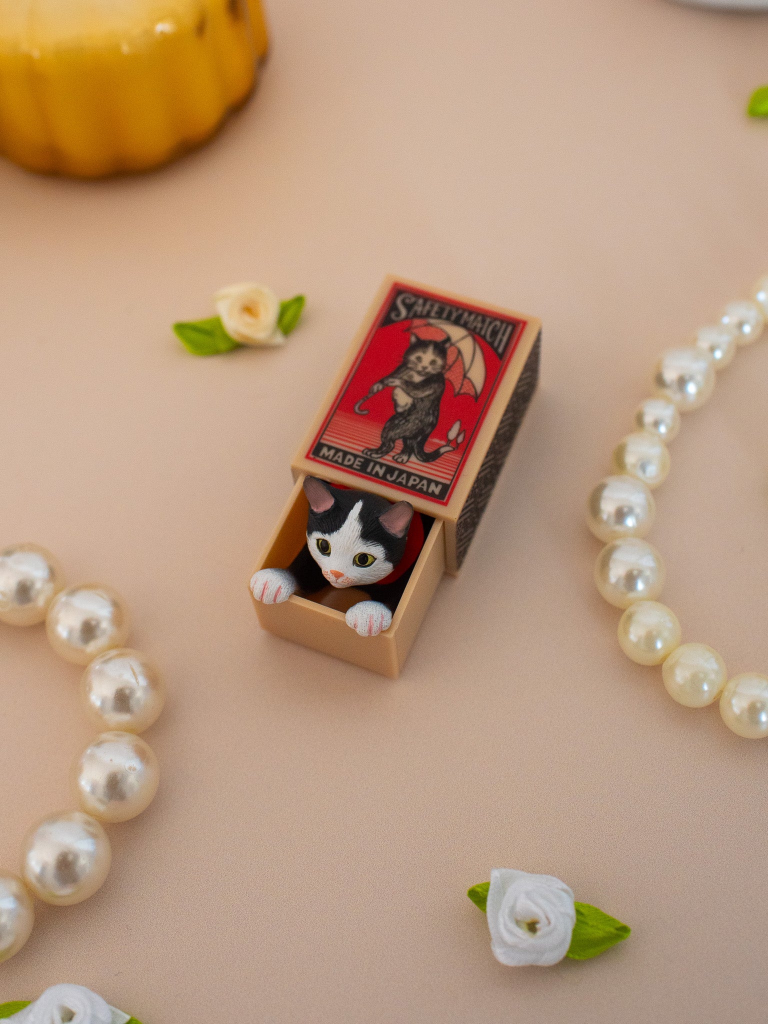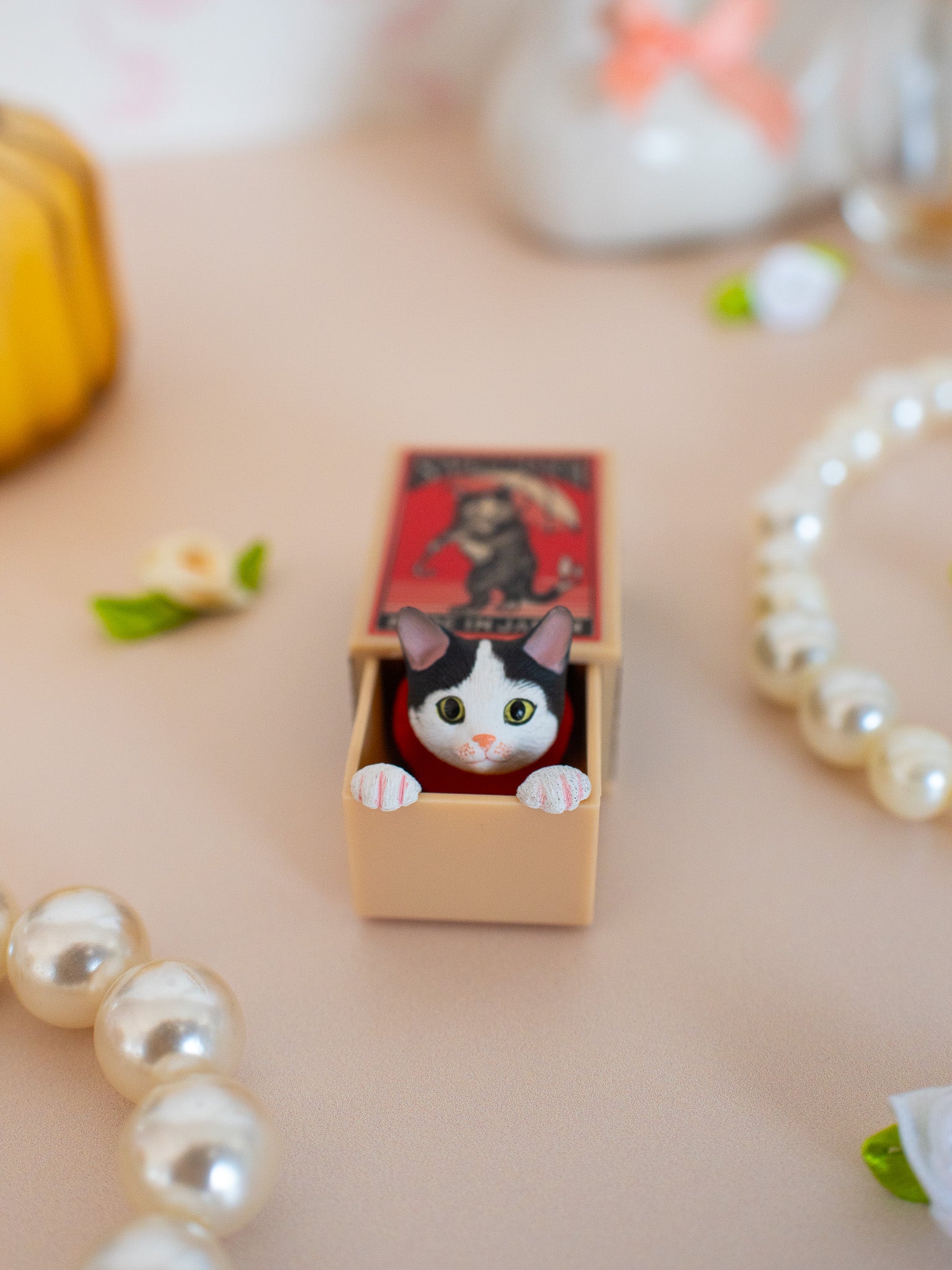 This adorable blind box features a cute cat peeking out of a matchbox. Open the drawer and the kitty will pop her head out of the box!