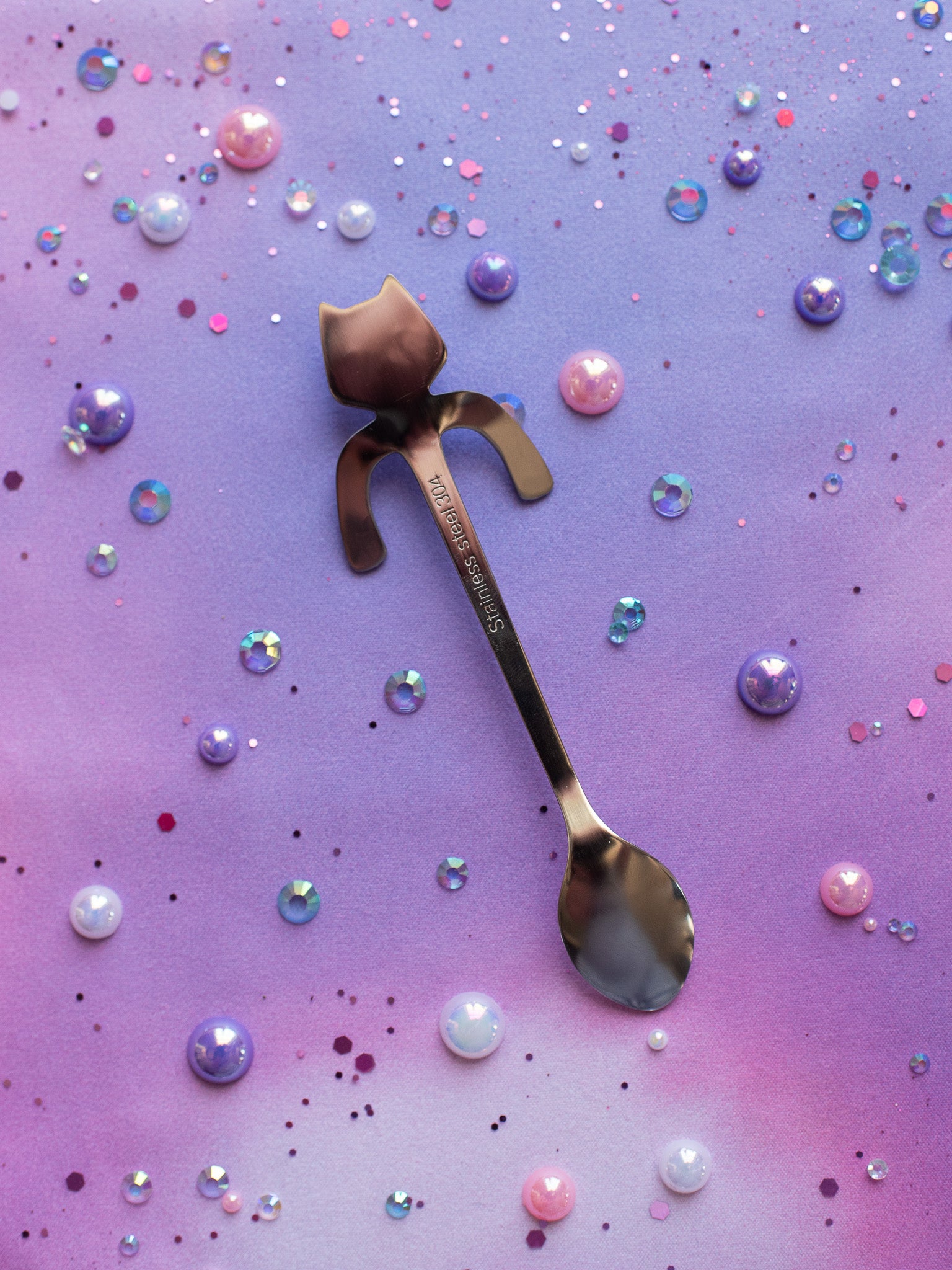 This silver teaspoon features a little kitty with arms that let it sit perfectly on the rim of a cup of (kit)tea. Sooo adorable and sure to be your new fav multi-purpose teaspoon!