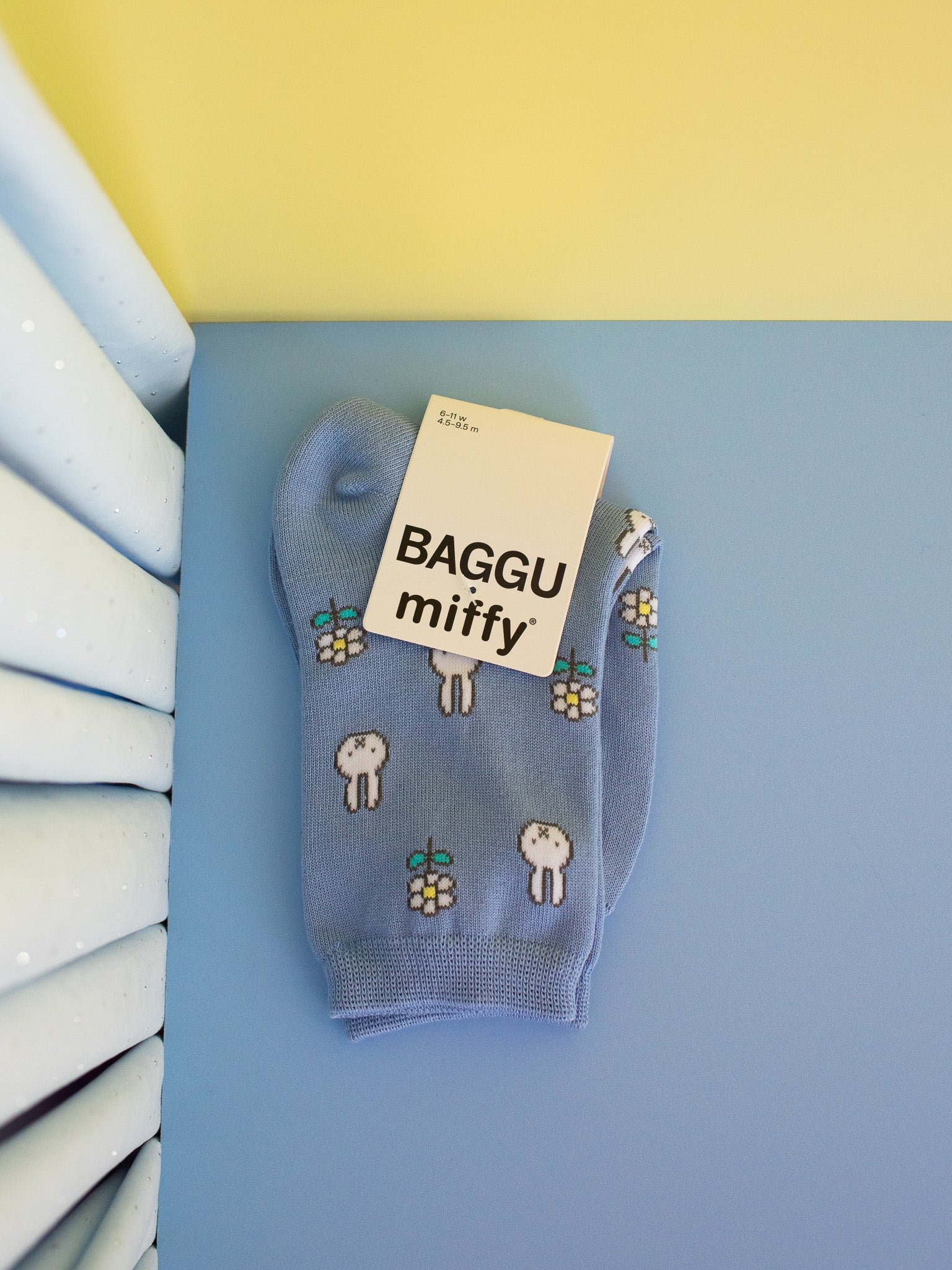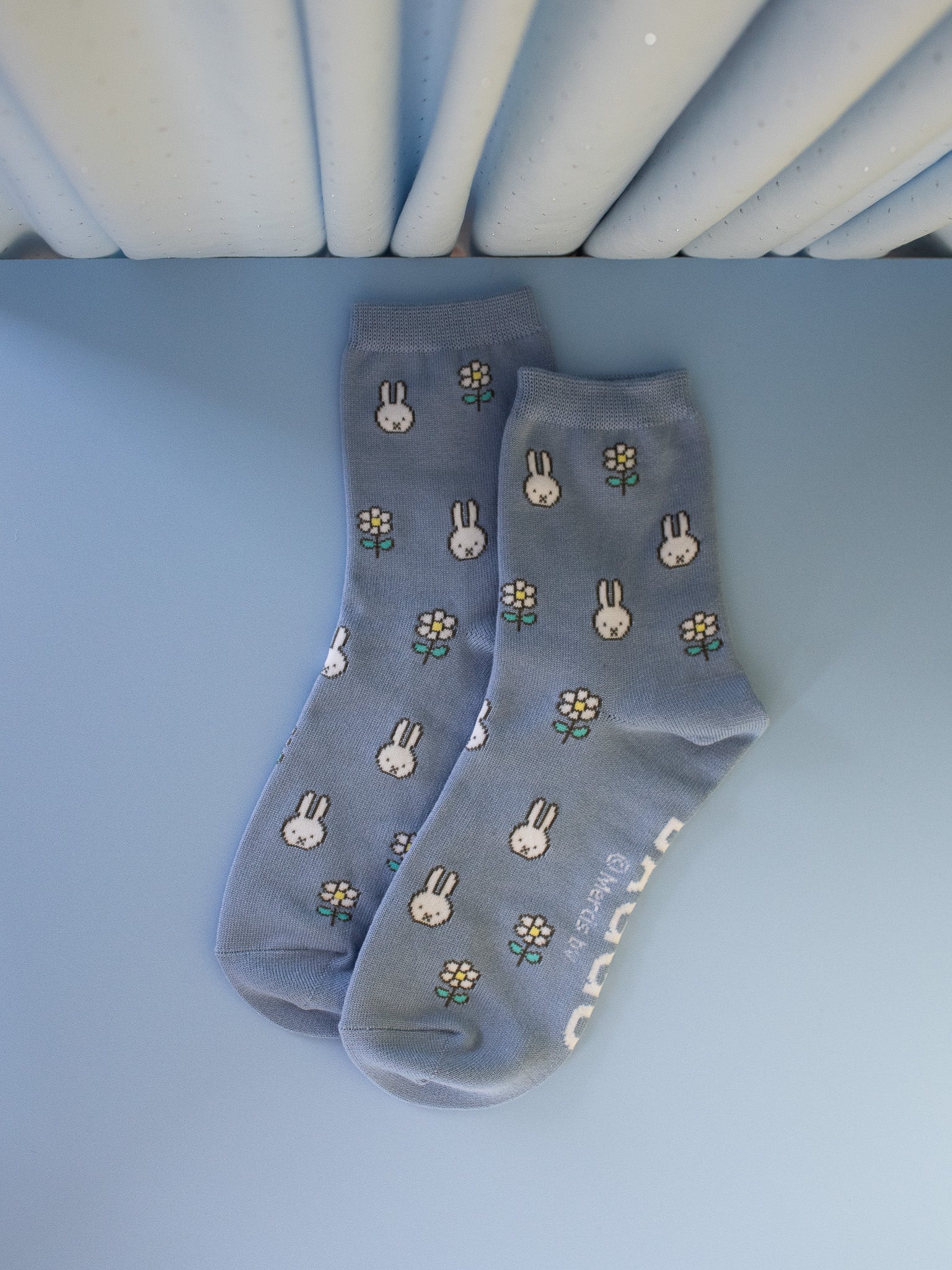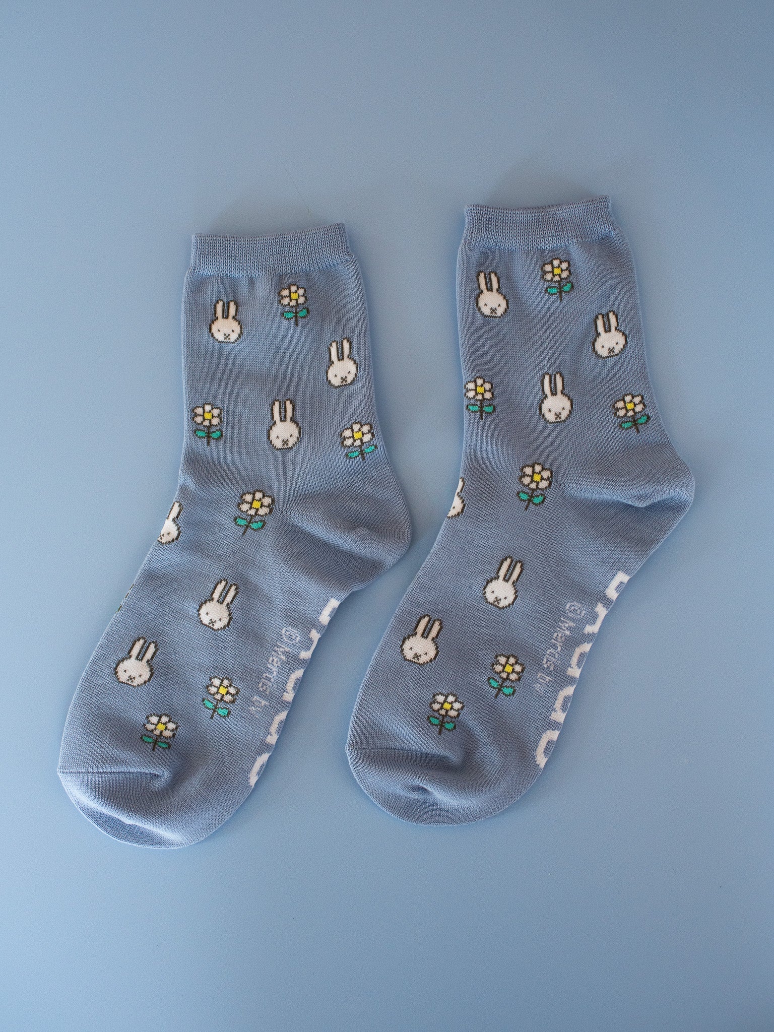 Socks are just bags for your feet, right? These crew socks are woven from soft and stretchy bamboo rayon material and feature a repeating design of Miffy and daisies! AH so cute!