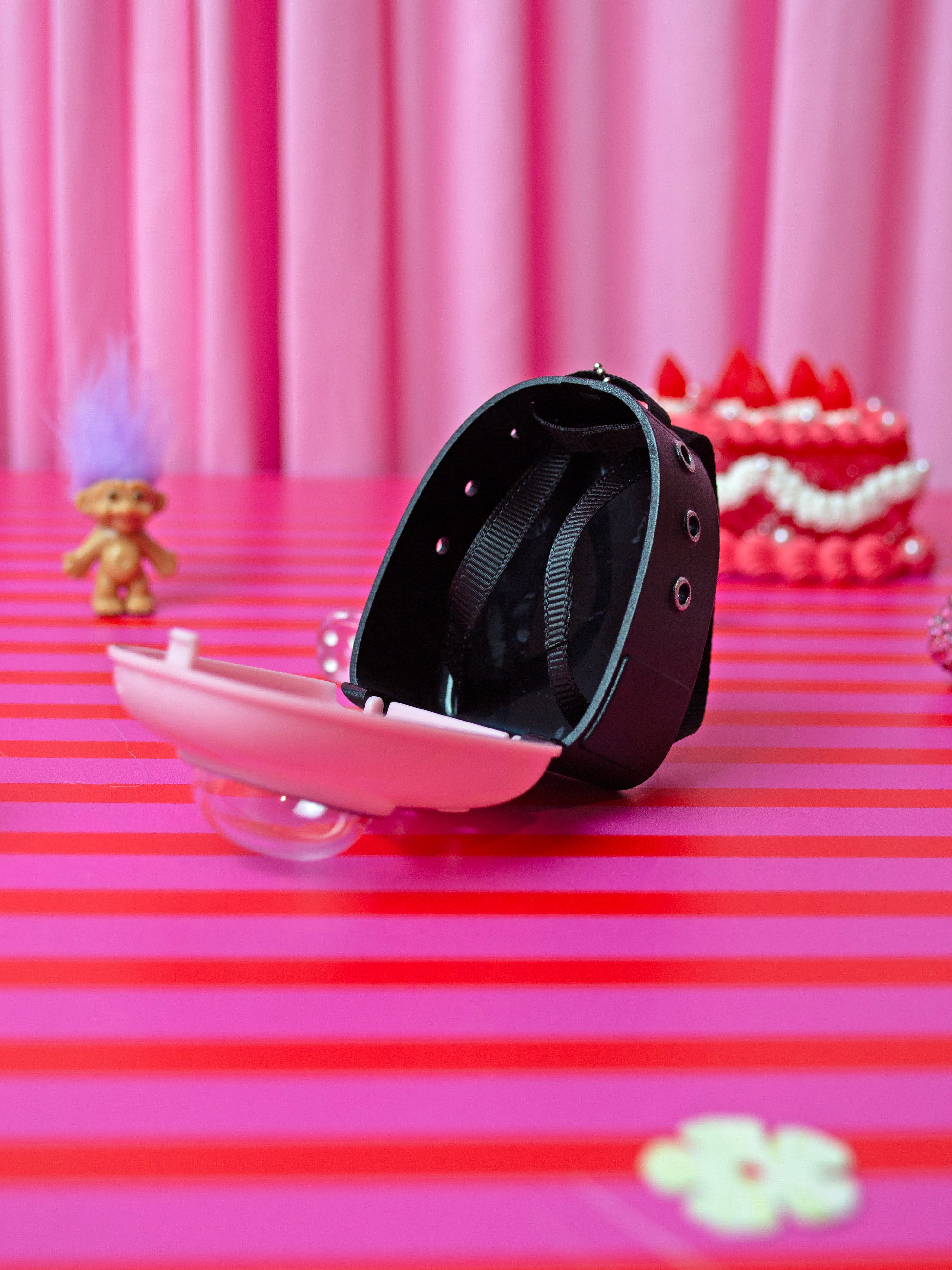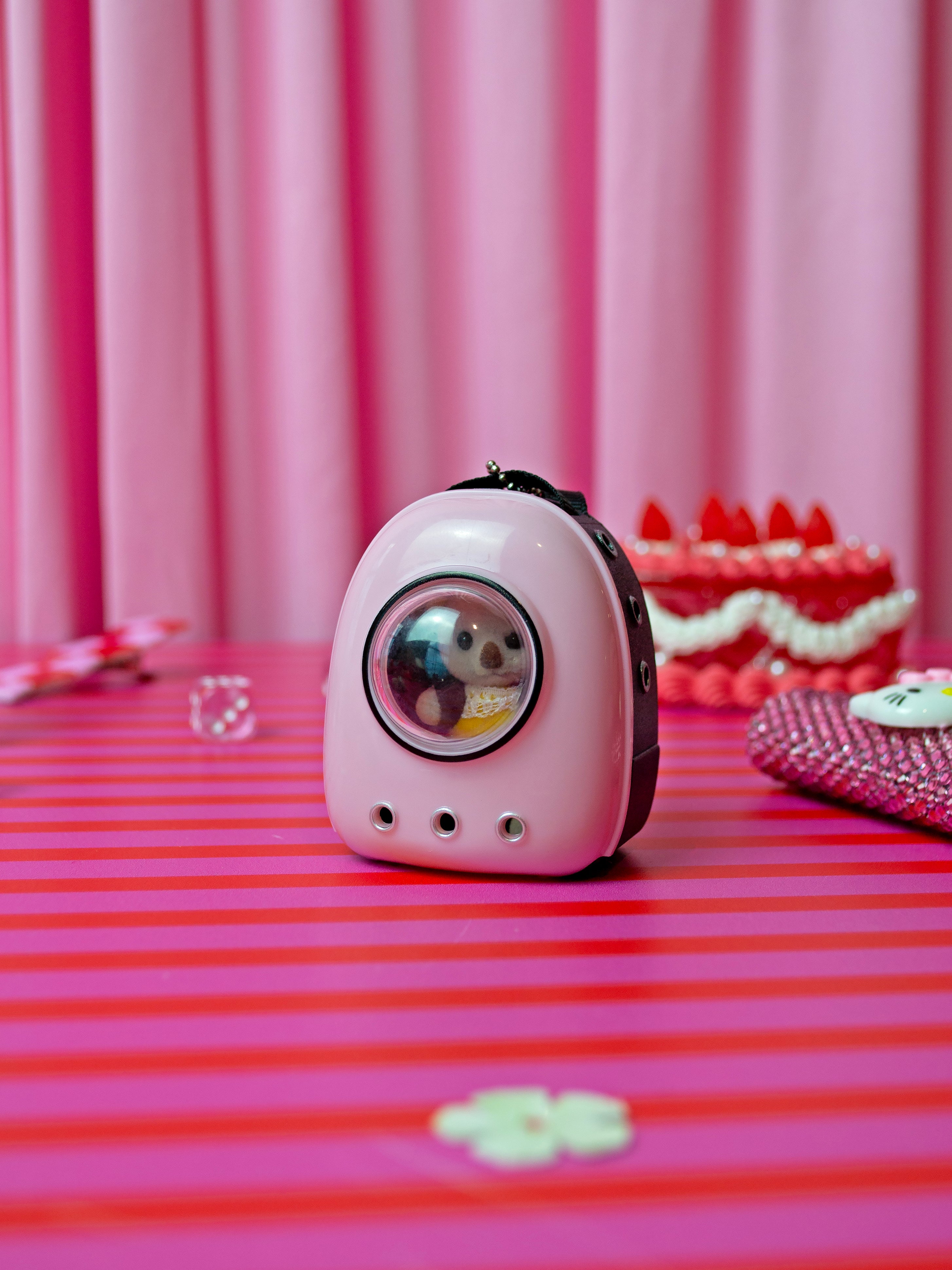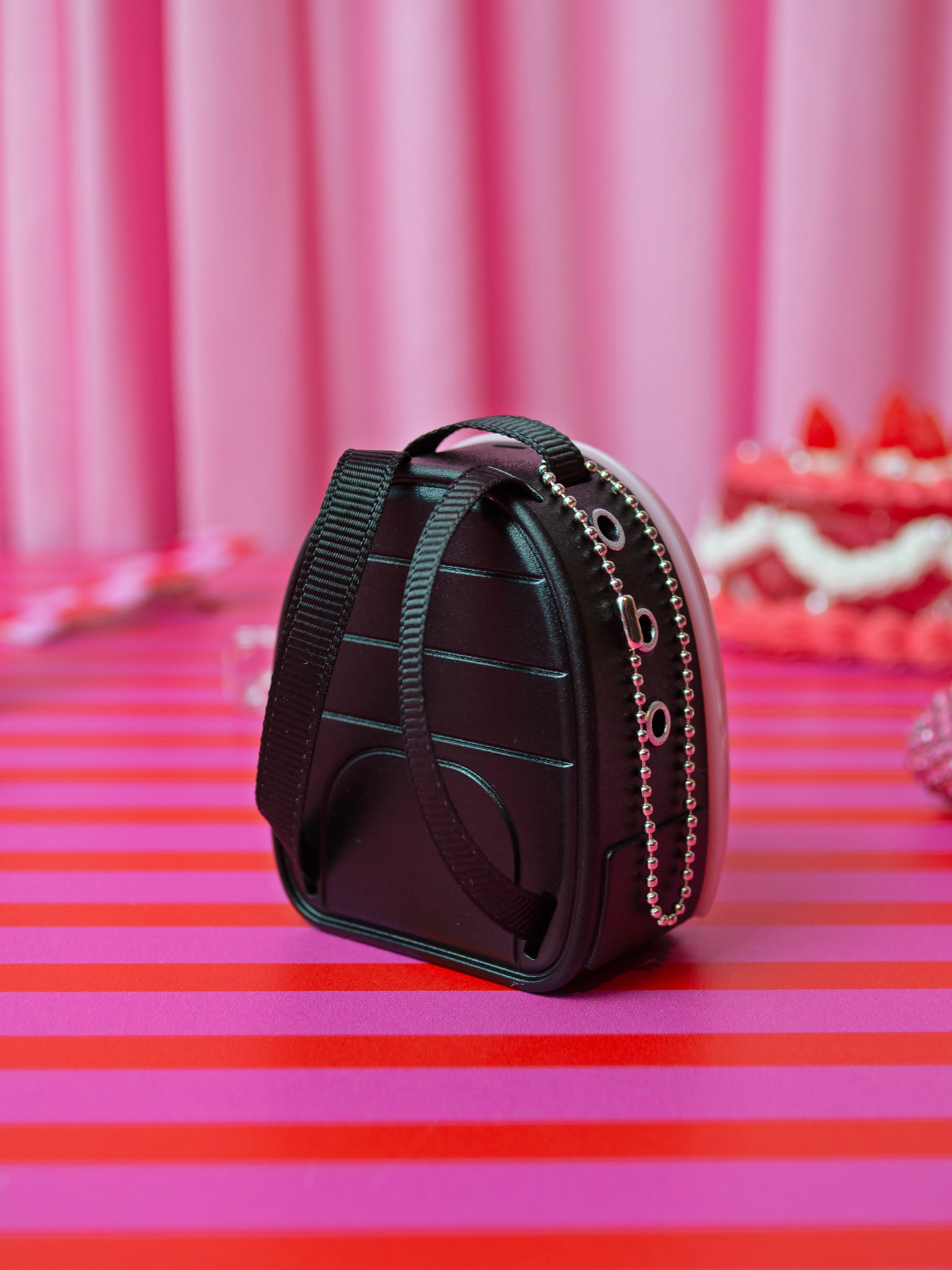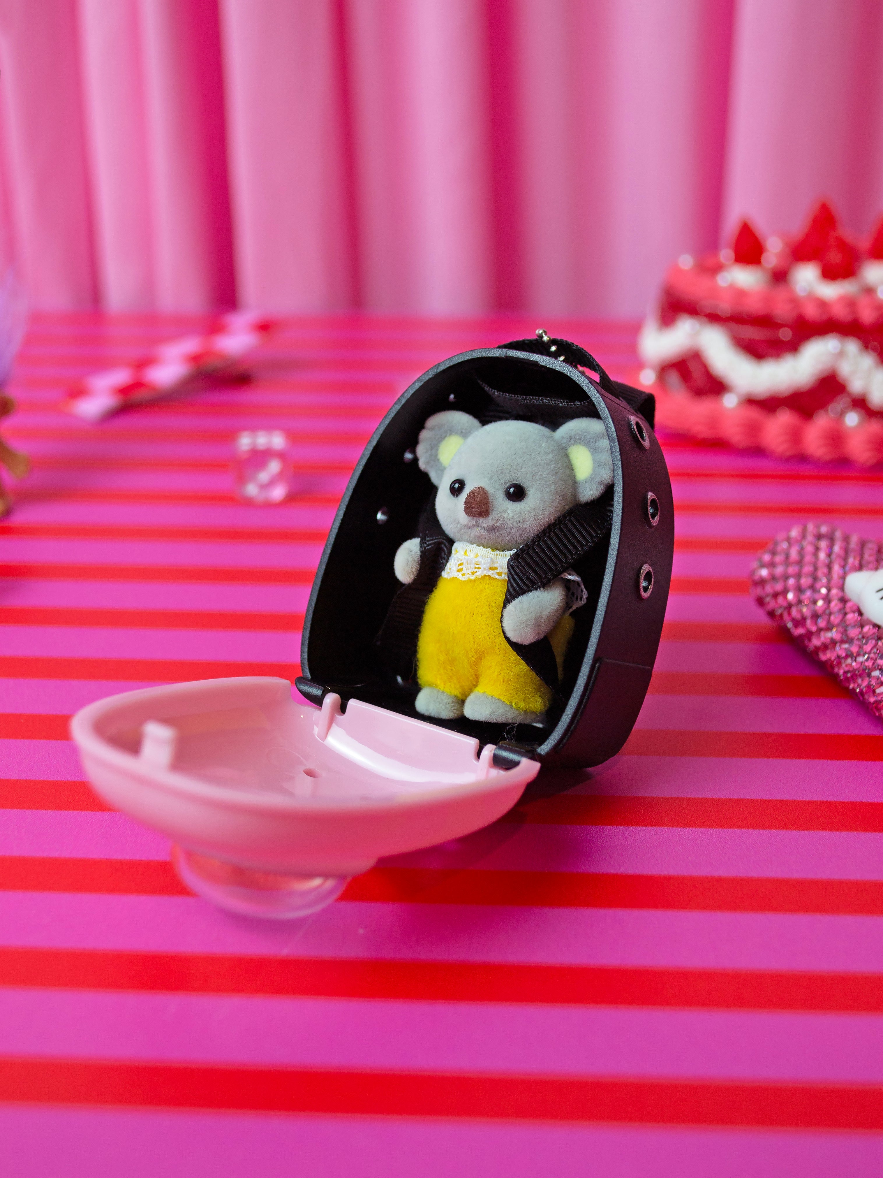 Add this case to your keys, bag, etc and never be lonely again! Perfect for Calico Critters, mini figures, trolls, and the blind box figurines we have here! Comes in a super slay black and pink design with a silver chain <3