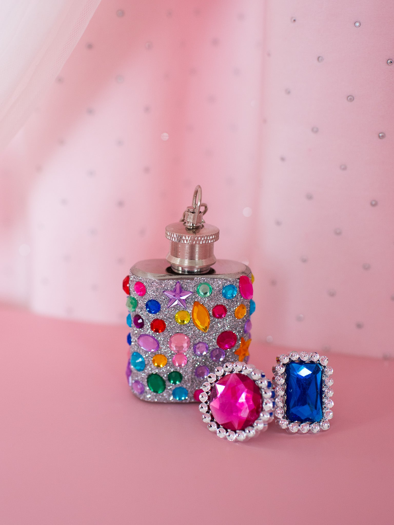 This ridiculously gorgeous keychain is adorned with rainbow colored gems that look so pretty in the light! This mini flask IS cute (duh), but also functions as a real flask and can hold 1 oz of liquid!