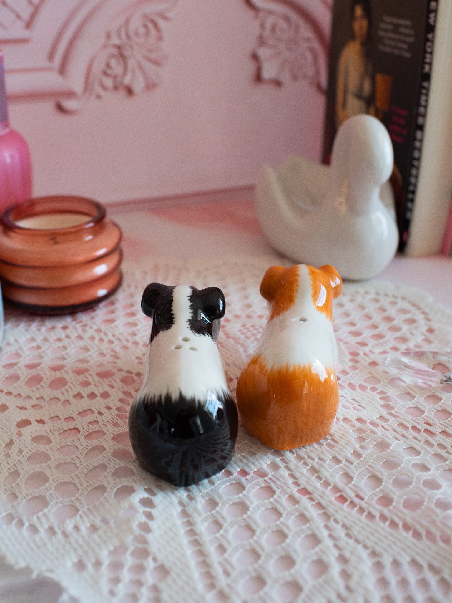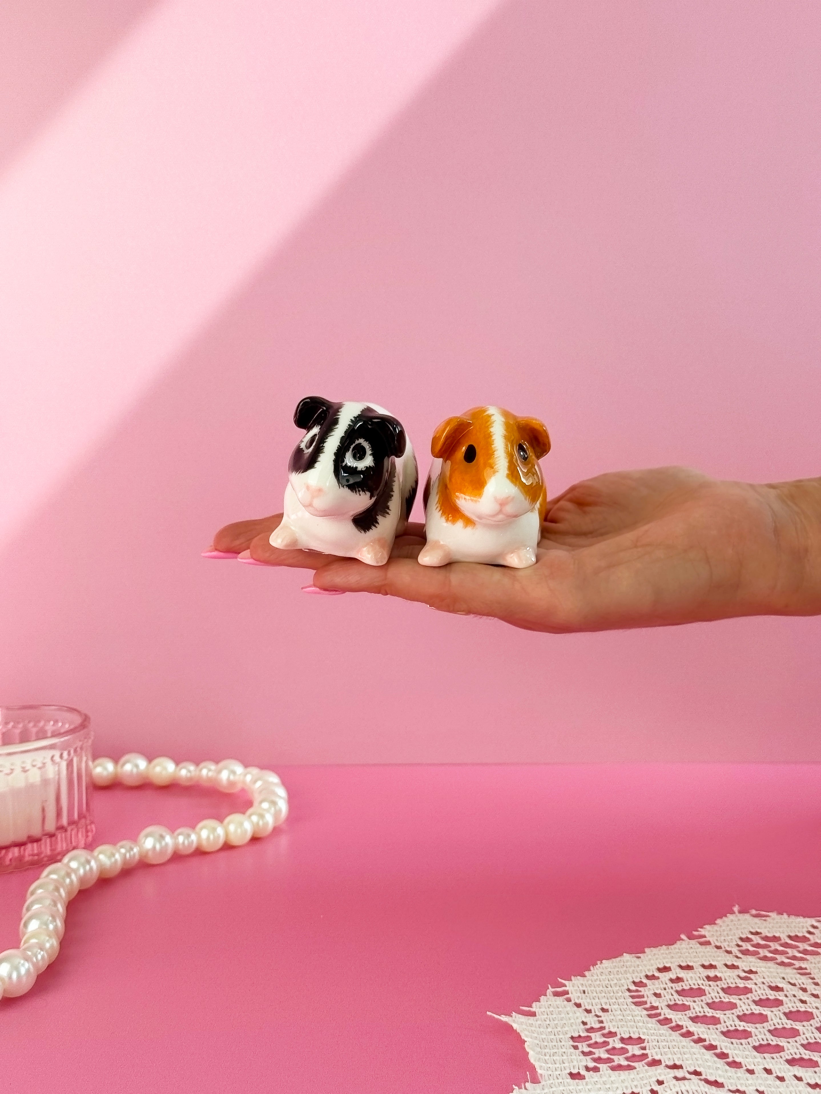 These salt and pepper shakers look just like a happy guinea pig couple. Each one has the cutest details like tiny leeeetle feets and cute ears!!