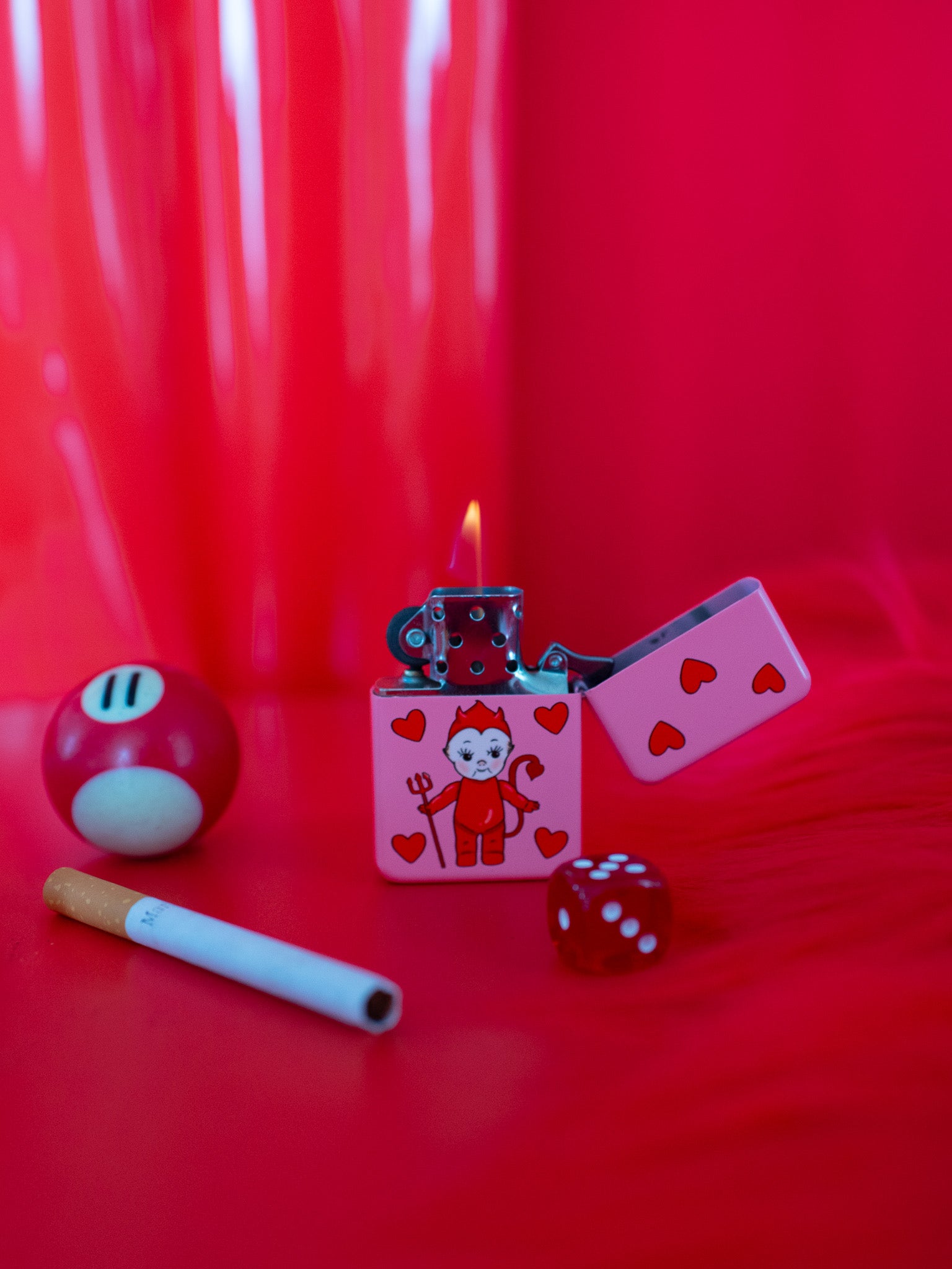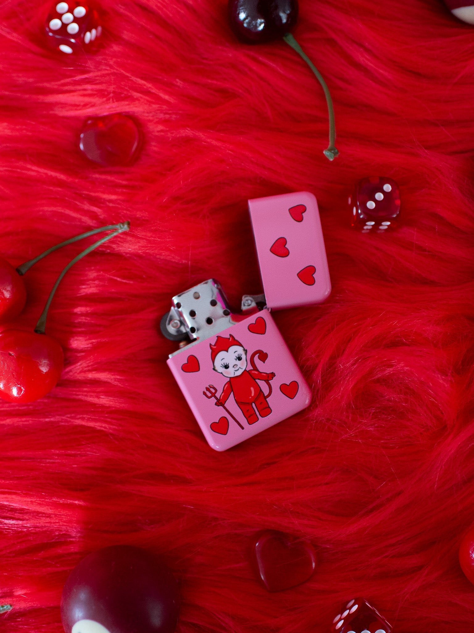 This pink lighter features an adorable little angel on one side and a little devil on the other. So so cute!