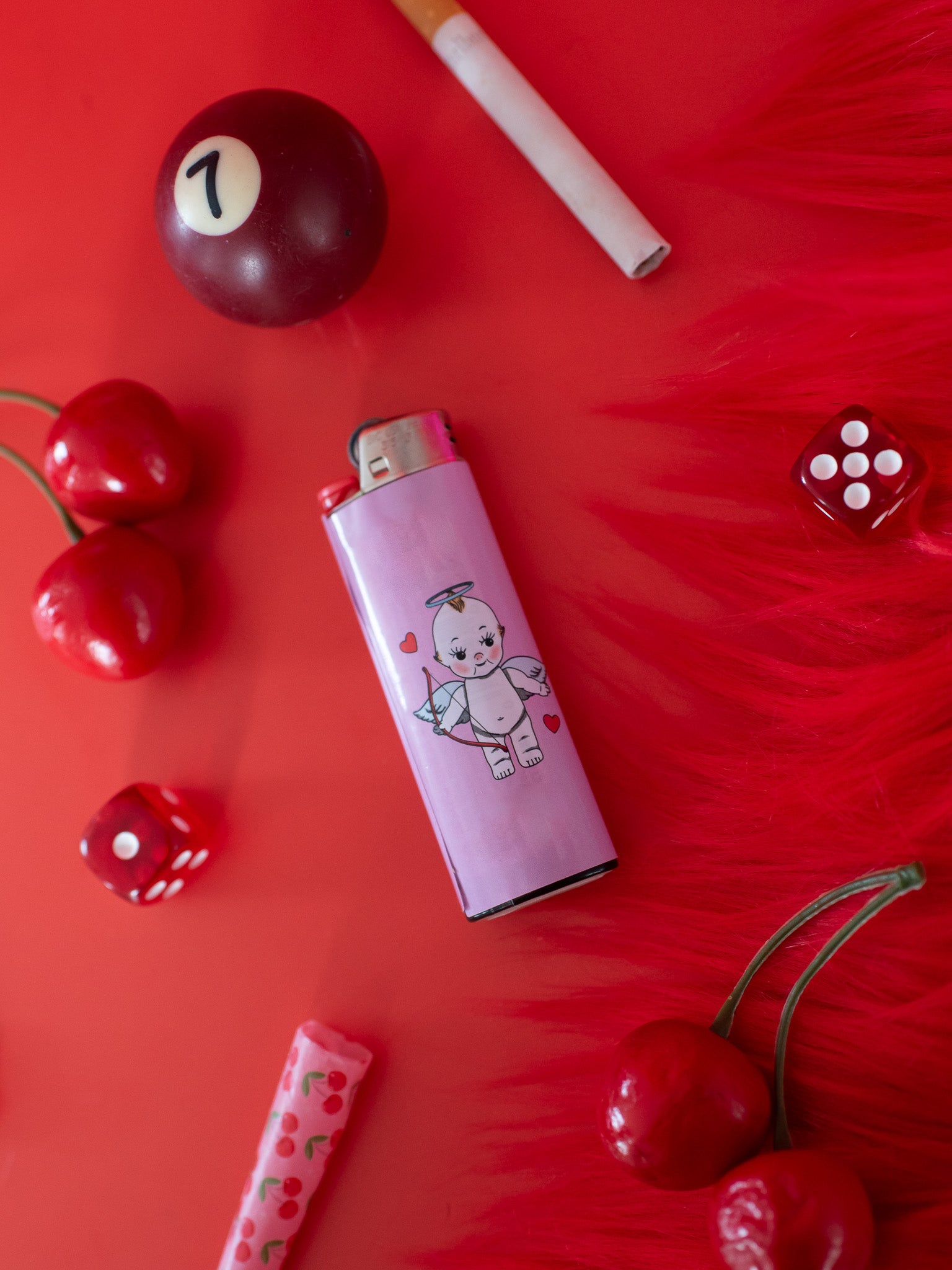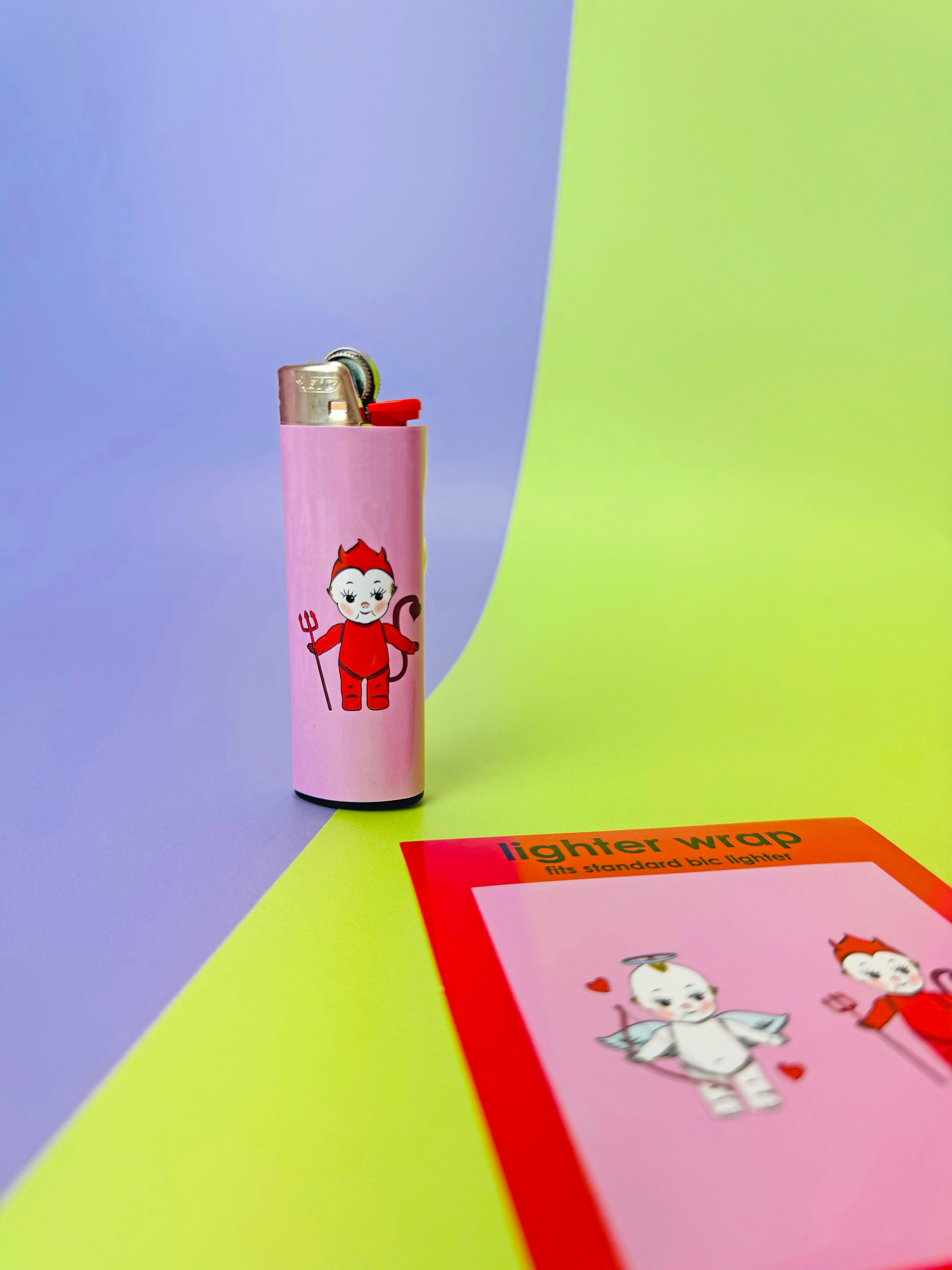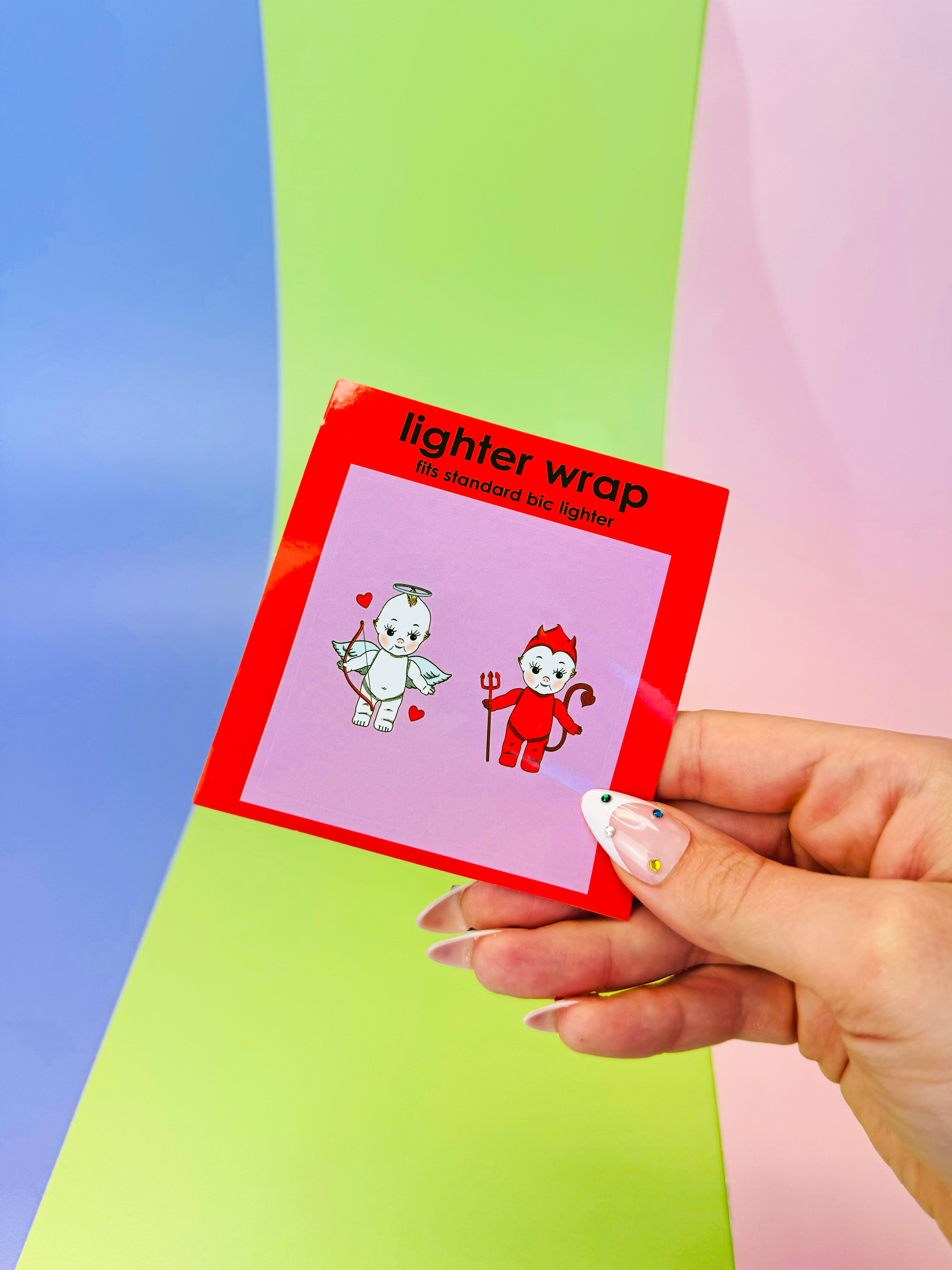 This lighter wrap features an angel kewpie on one side and a devil on the other.