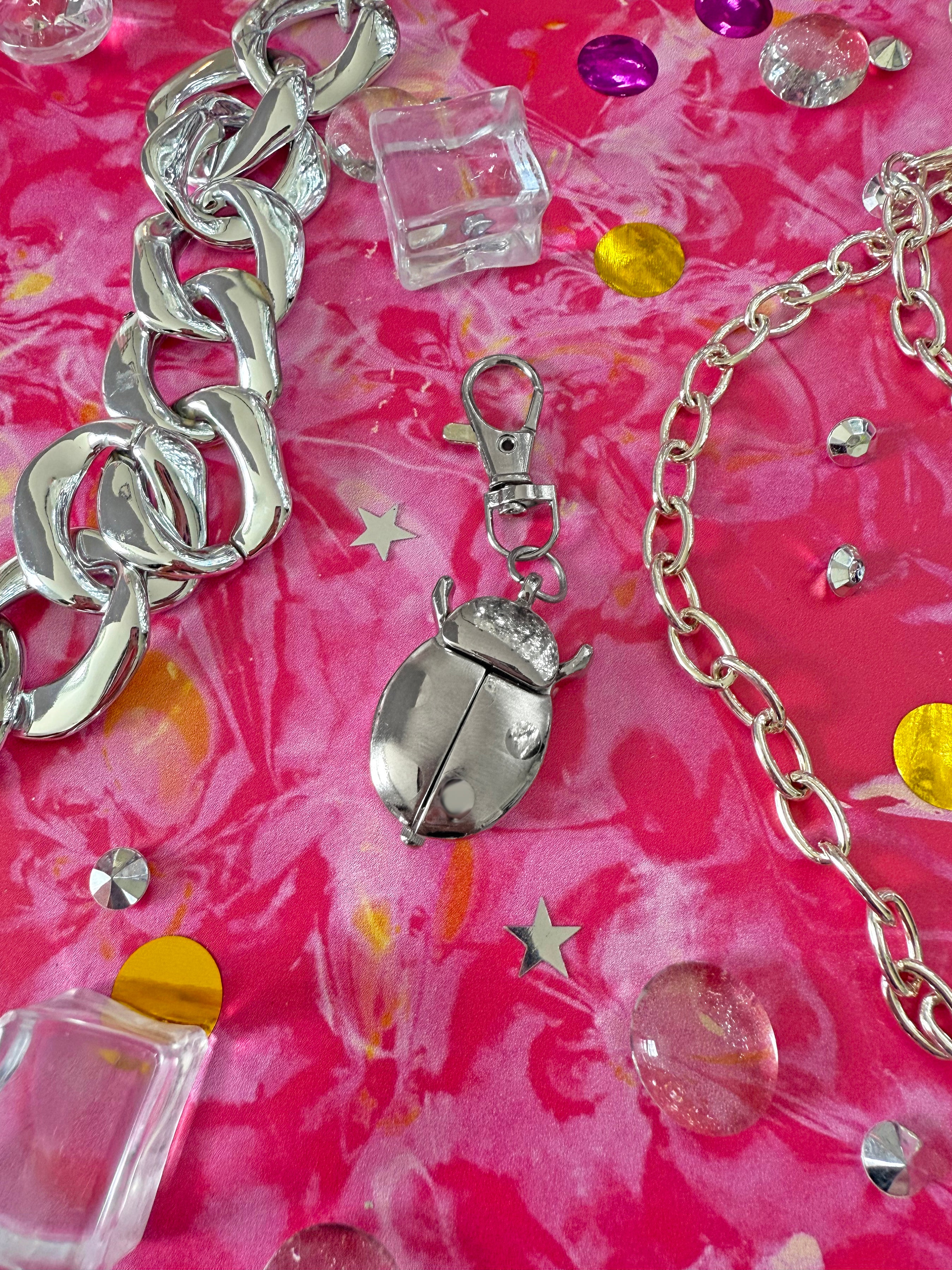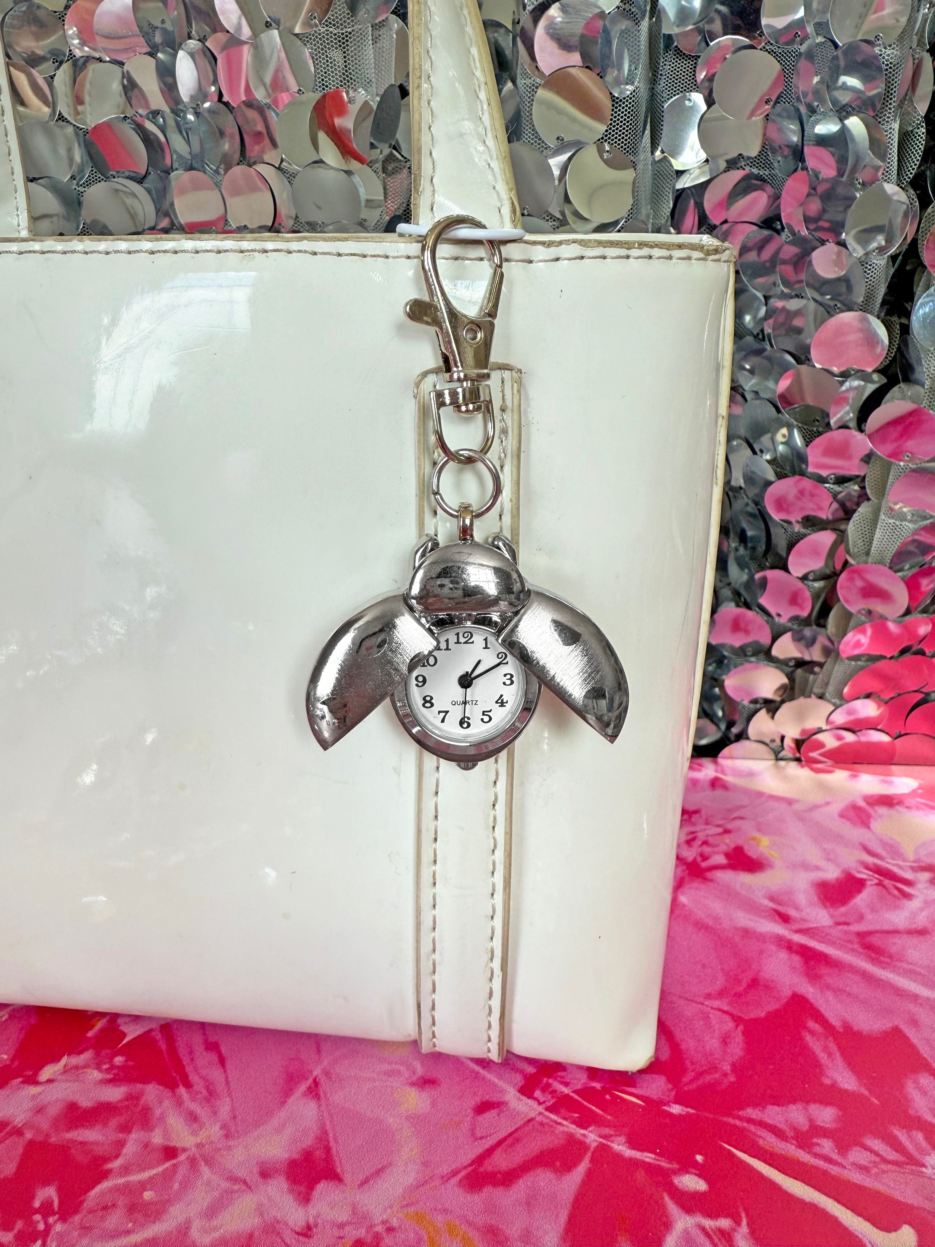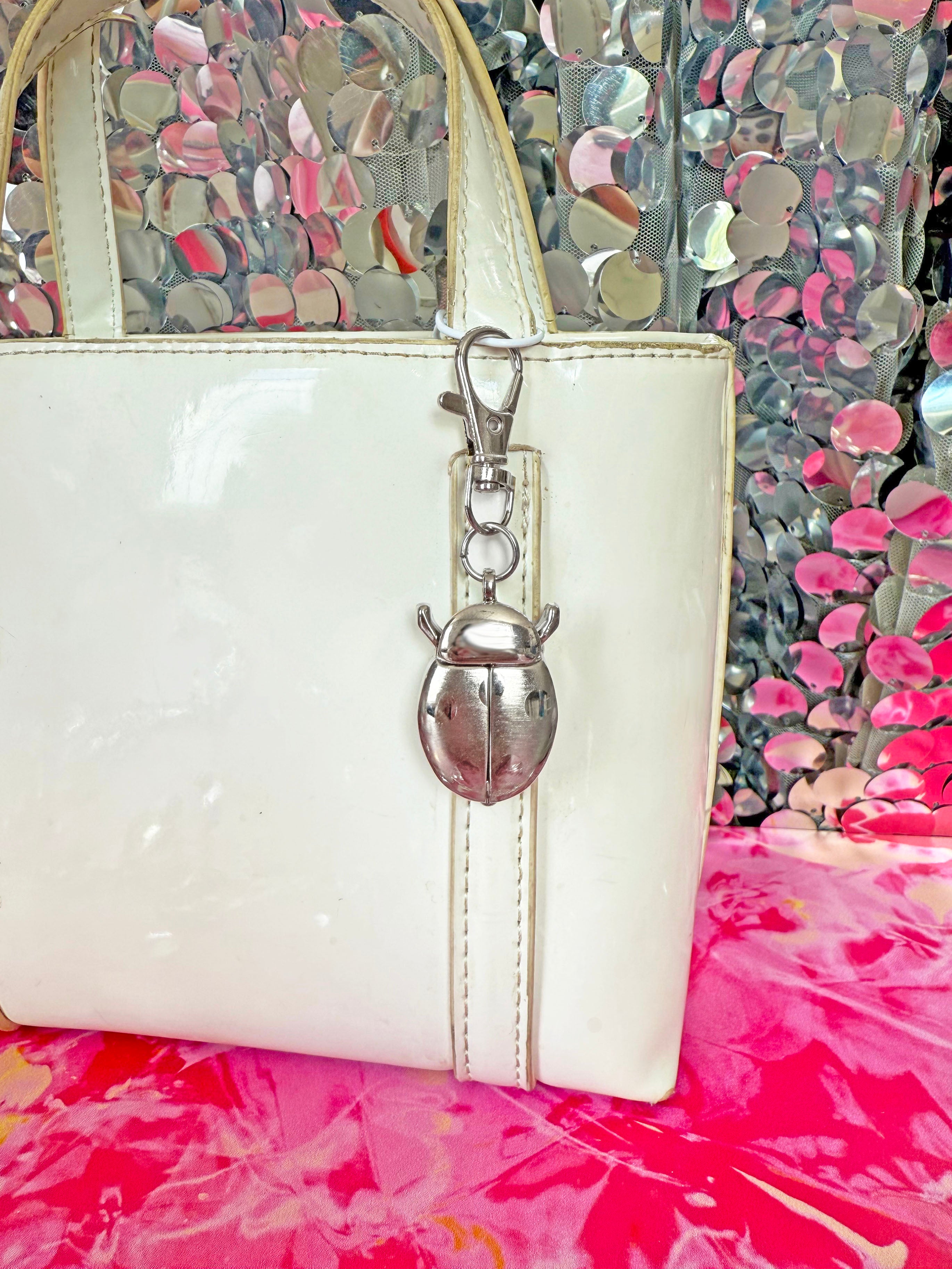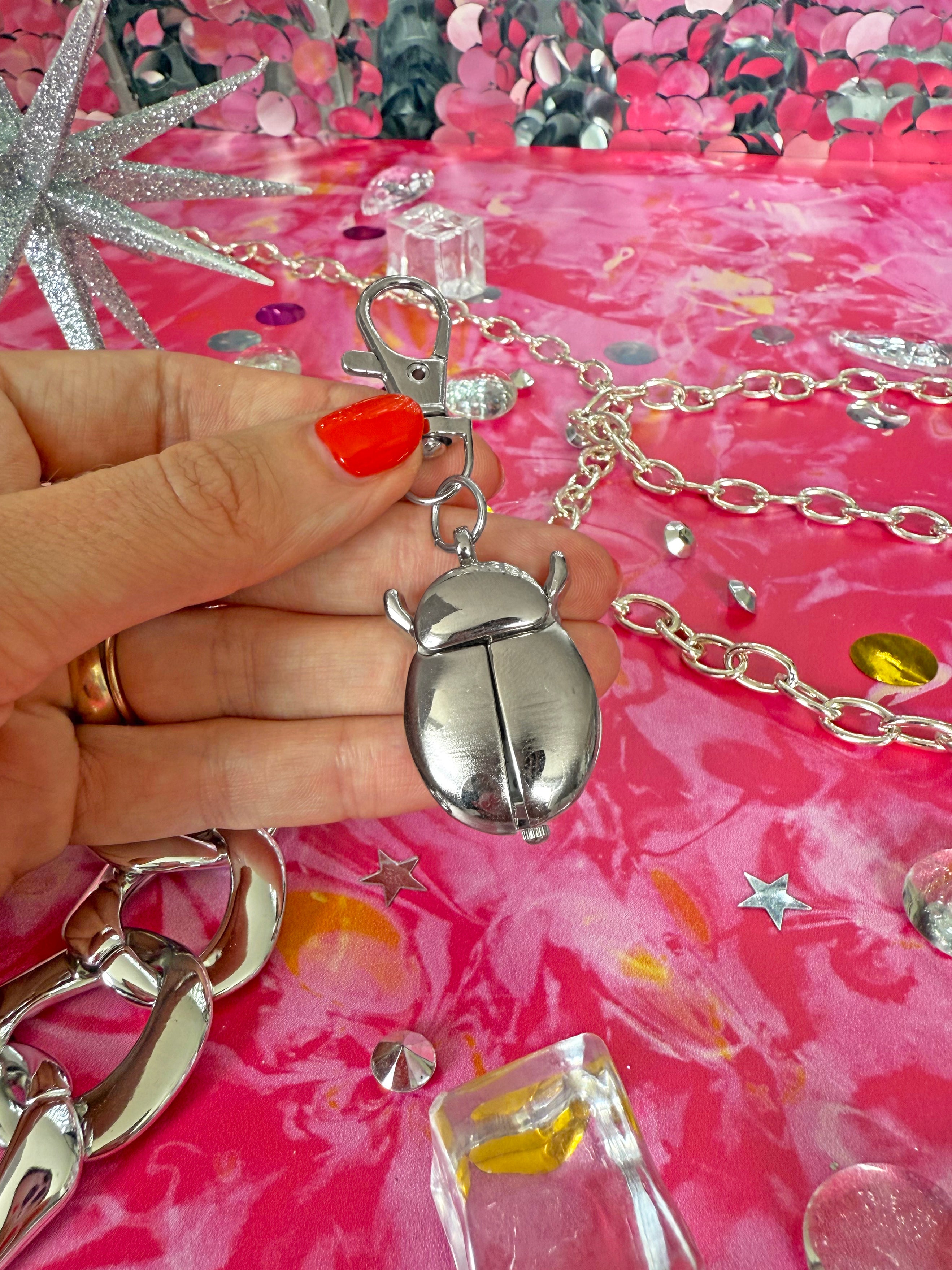 This silver ladybug watch keychain is so precious and makes the perfect addition to your keys or bag. Just pinch the little legs together near her head, and she'll flutter open her wings to reveal a tiny clock! Comes with a lobster claw clasp so you can easily clip it on/off without ruining your manicure.