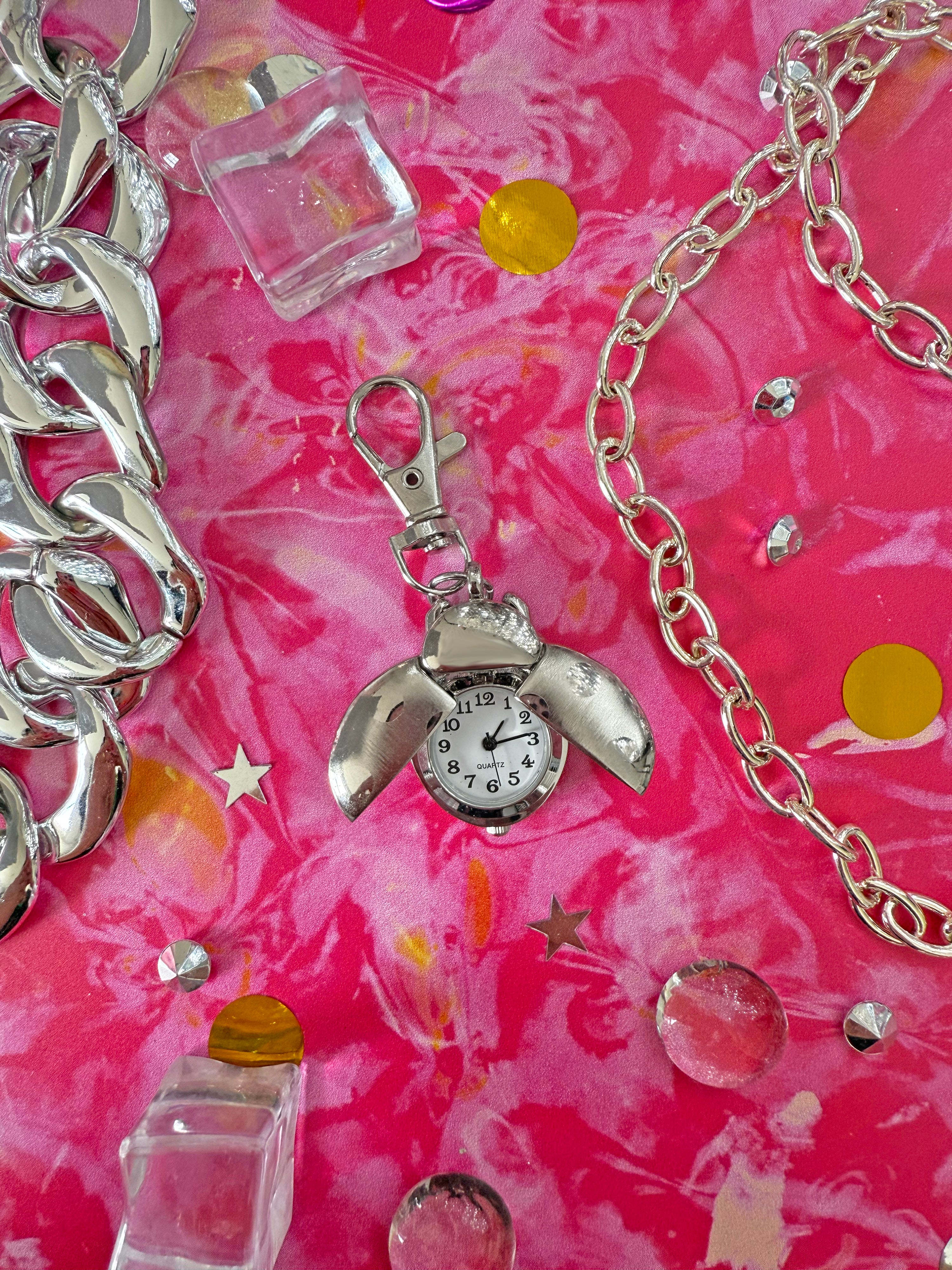 Ladybug Watch Keychain- Silver