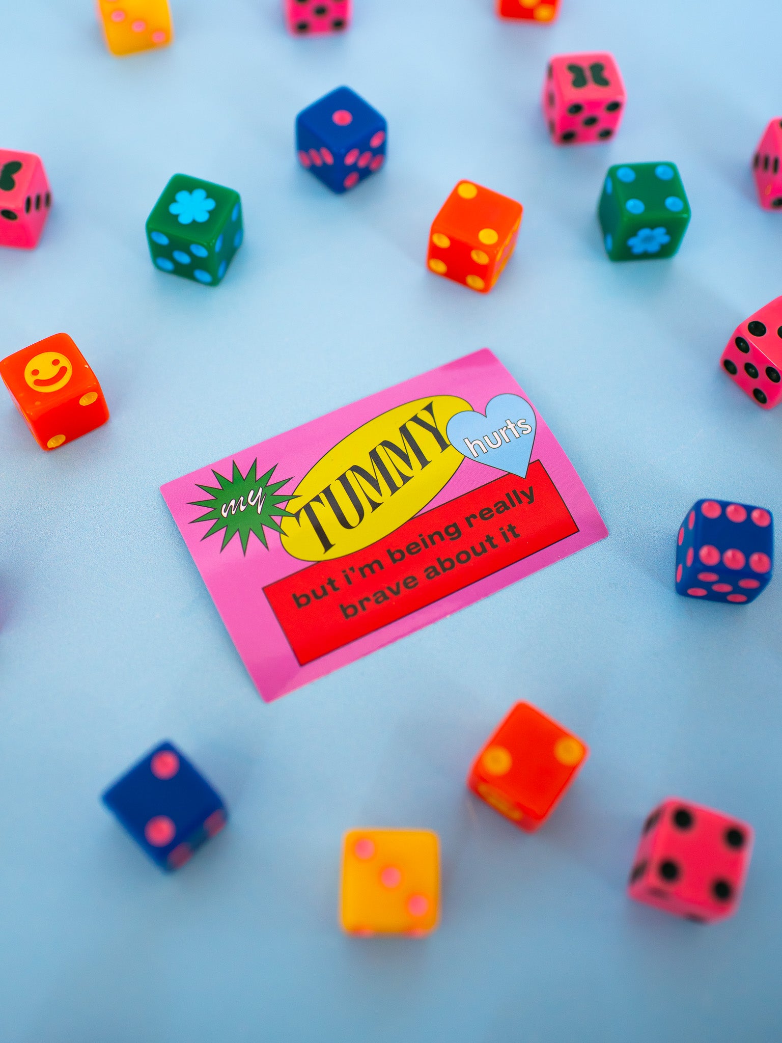 My tummy hurts, but I'm being really brave about it! Our popular design now comes in sticker form!!