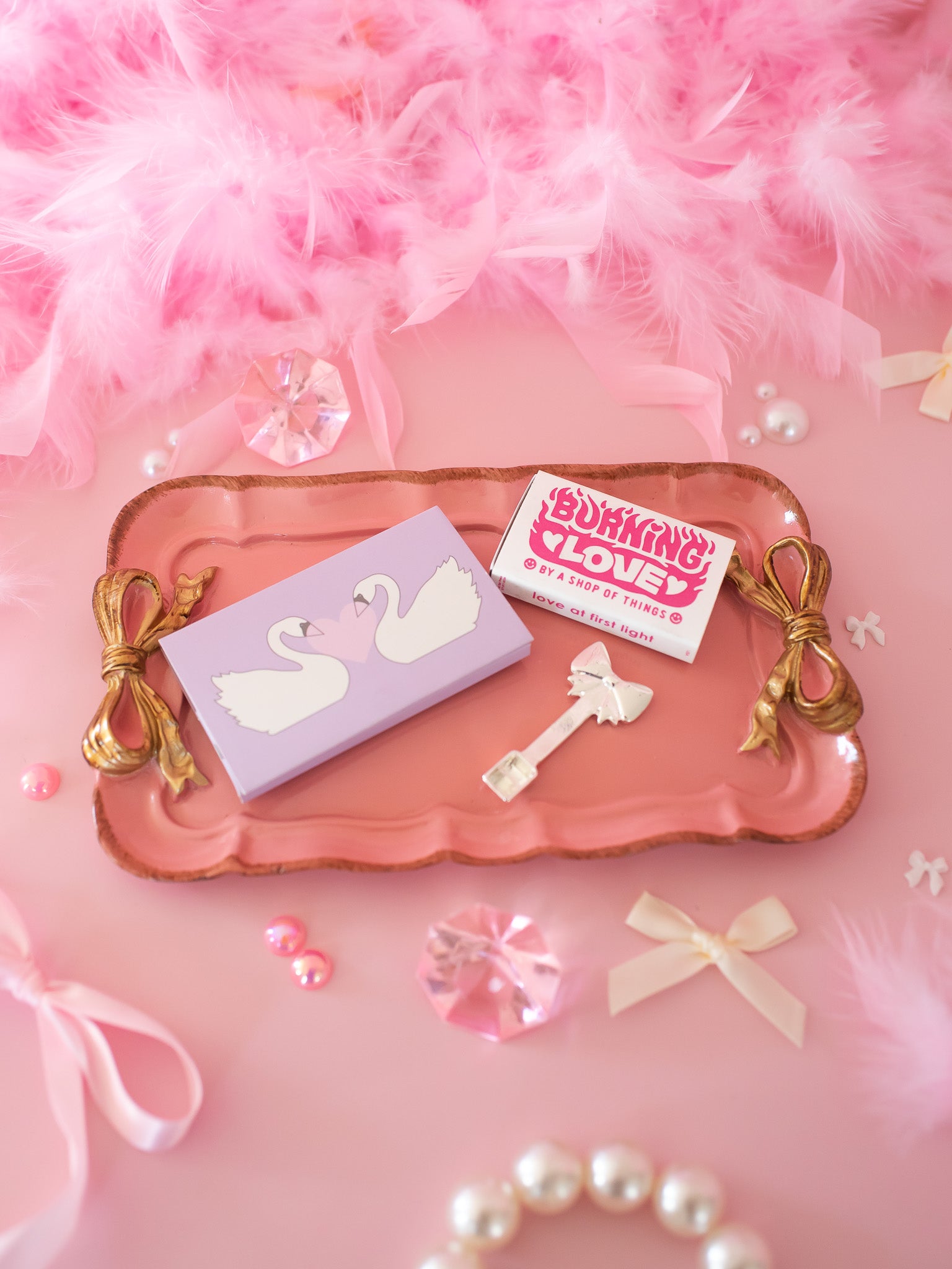 This coquette inspired tray is darling! Comes in pink and has gold bows on either side. It looks like a mini serving tray, and we are obsessed!! Perfect for rolling or as a little trinket or jewelry tray around your home.