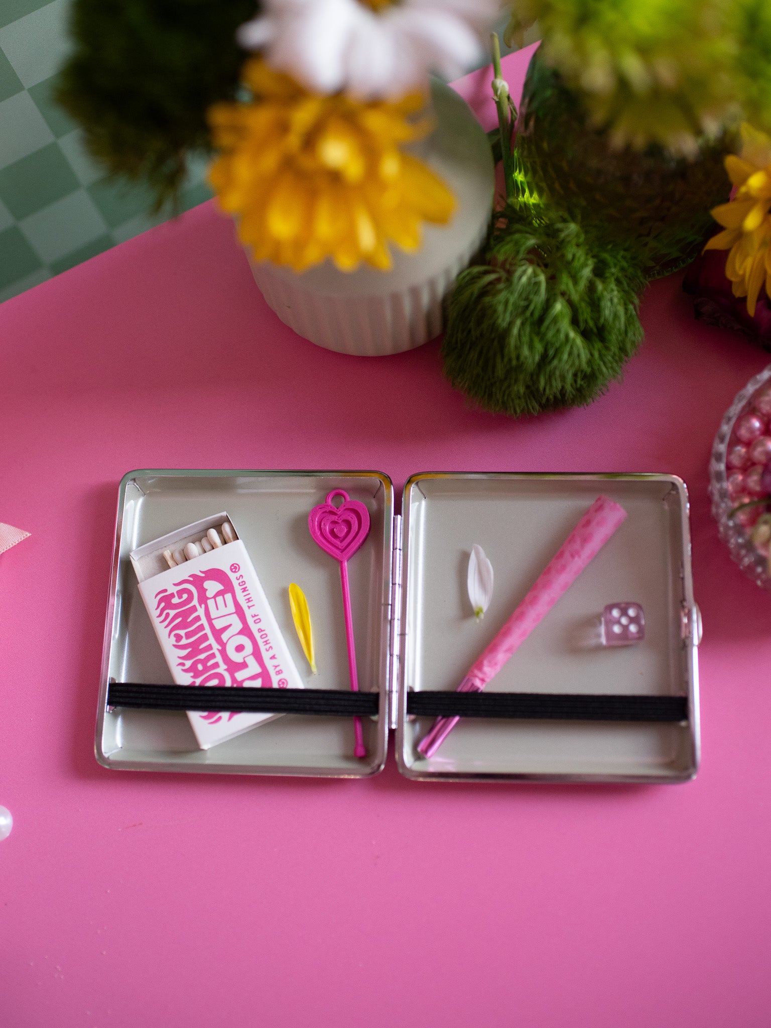 This cig case is giving equal parts cute and chaos and we are so here for it!! A slim, practical case that's perfect for storing cigs, pre-rolls, lighters, and other everyday essentials. Also perfect for cash, cards, lip gloss, whatever else fits! Its compact design fits easily in a bag, while the non-see-through material keeps your items discreet while on-the-go! Cute and functional, we love!
