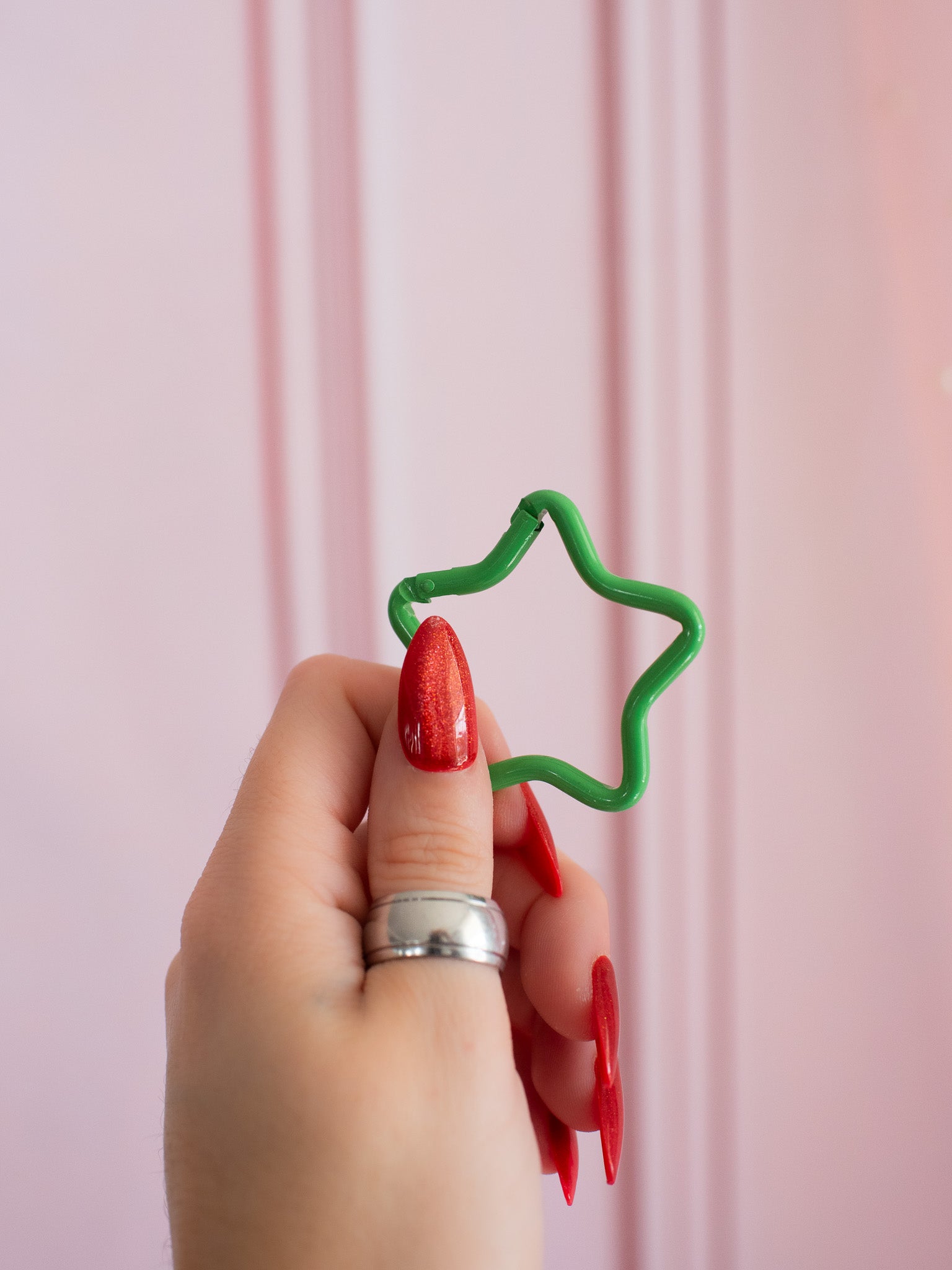 This star-shaped carabiner is the perfect accessory for your keys, water bottle, bag, etc! Looks especially great with our keychains 💚