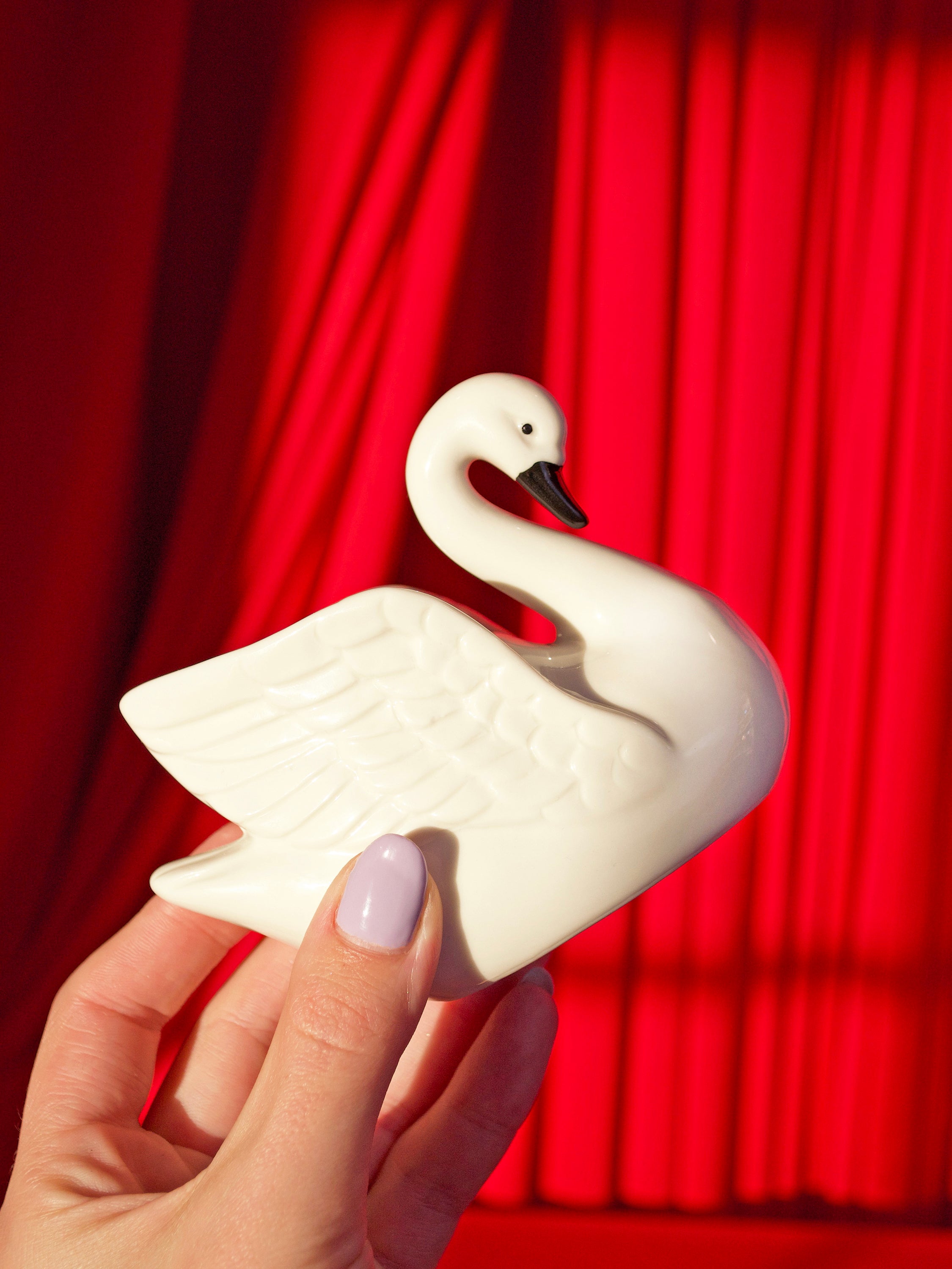 This striker is shaped like the cutest little swan you've ever seen! Comes with 25 matches measuring 3.75" each, stored conveniently inside the swan! When you need a light, tilt her over and strike a match on her! Looks great on a desk, coffee table, shelf, etc! Also makes a cute tiny vase for tiny flowers :)