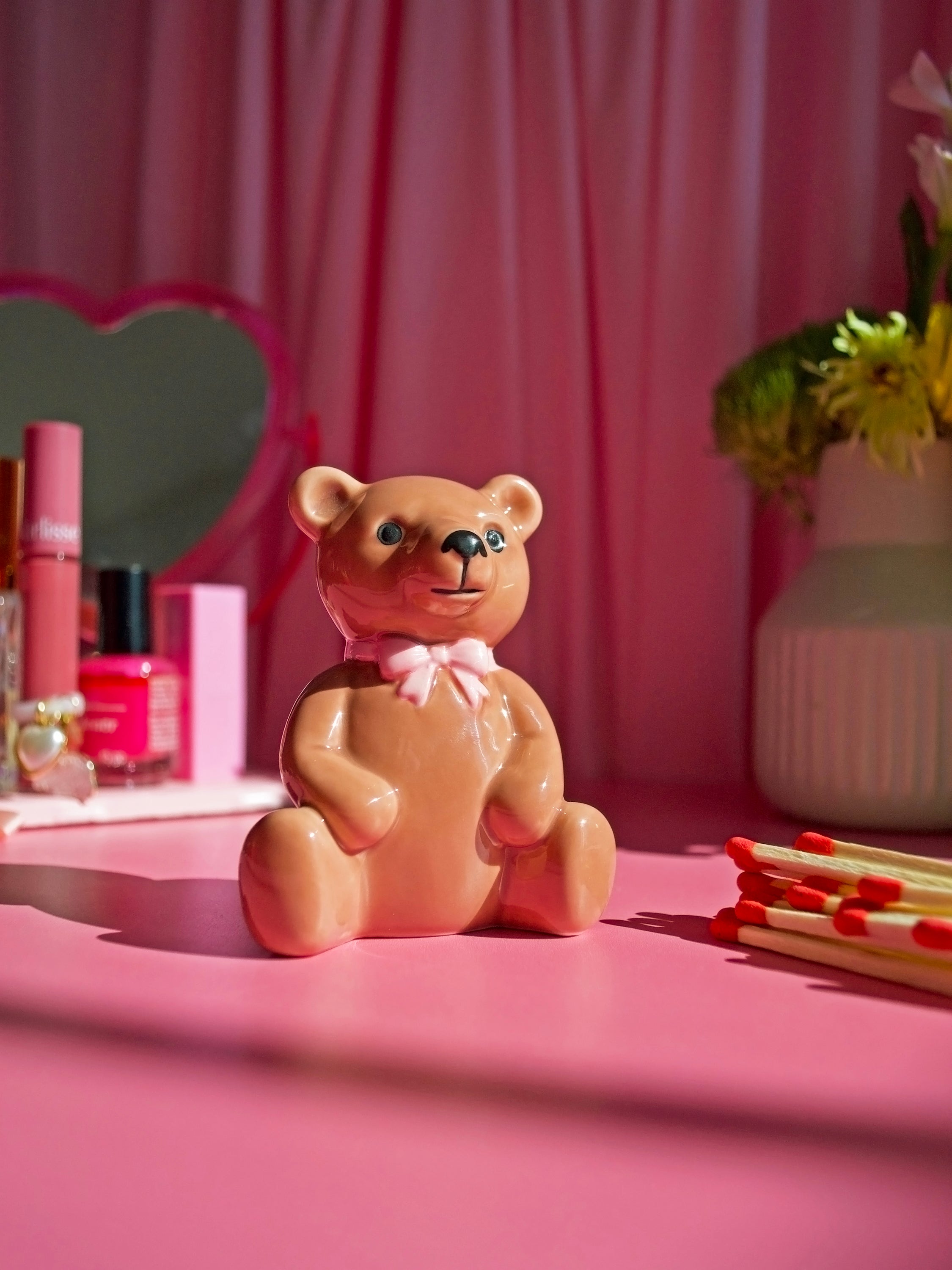 This striker is shaped like the cutest little bear you've ever seen! Comes with 25 matches measuring 3.75" each, stored conveniently inside the bear! When you need a light, tilt it over and strike a match on the base! Looks great on a desk, coffee table, shelf, etc! Also makes a cute tiny vase for tiny flowers :)