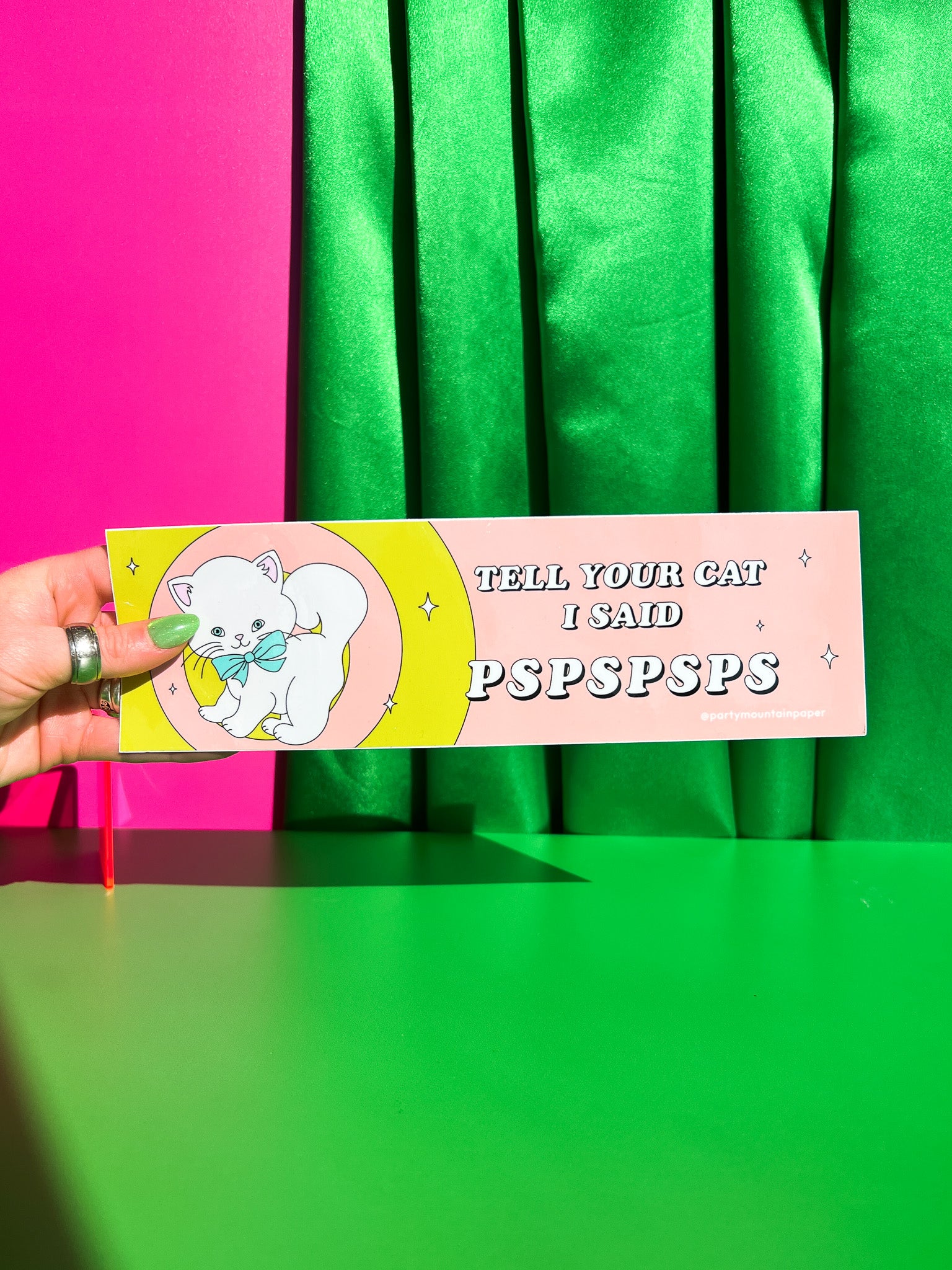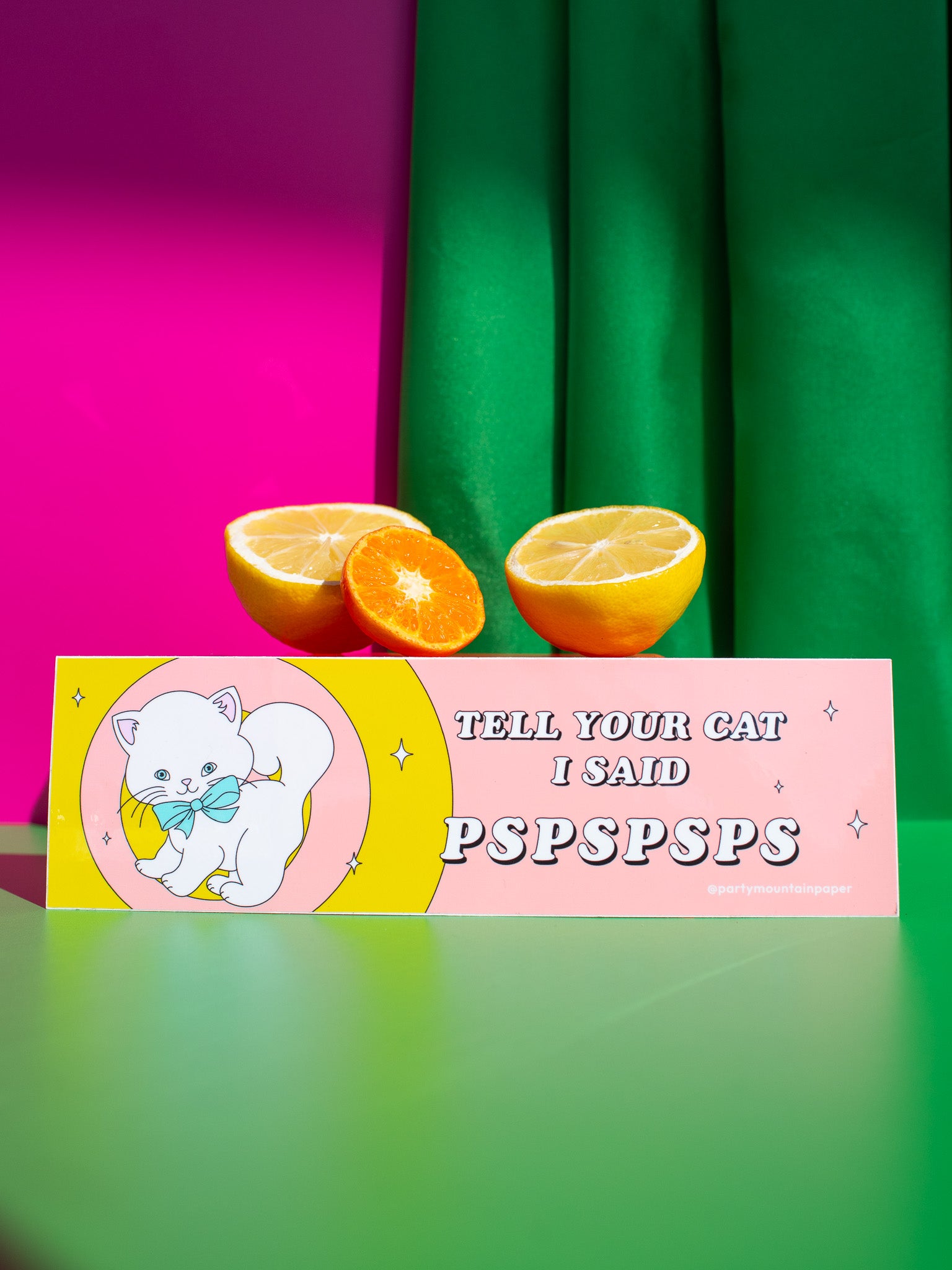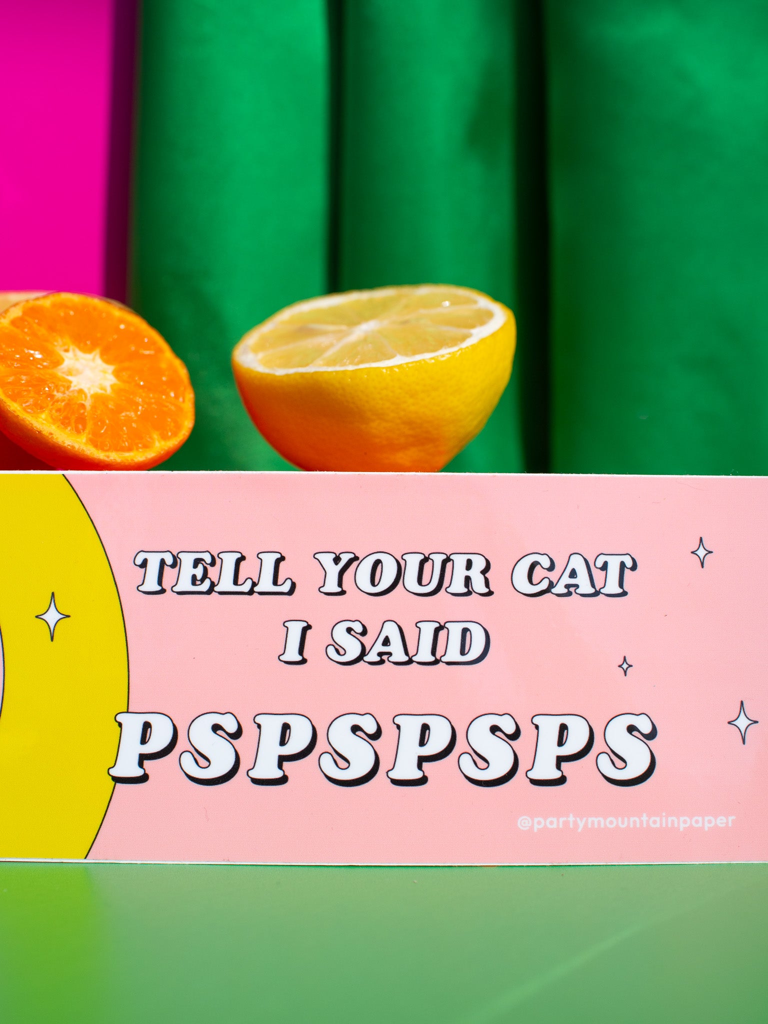 This super adorable bumper stick is made by Party Mountain Paper Co.