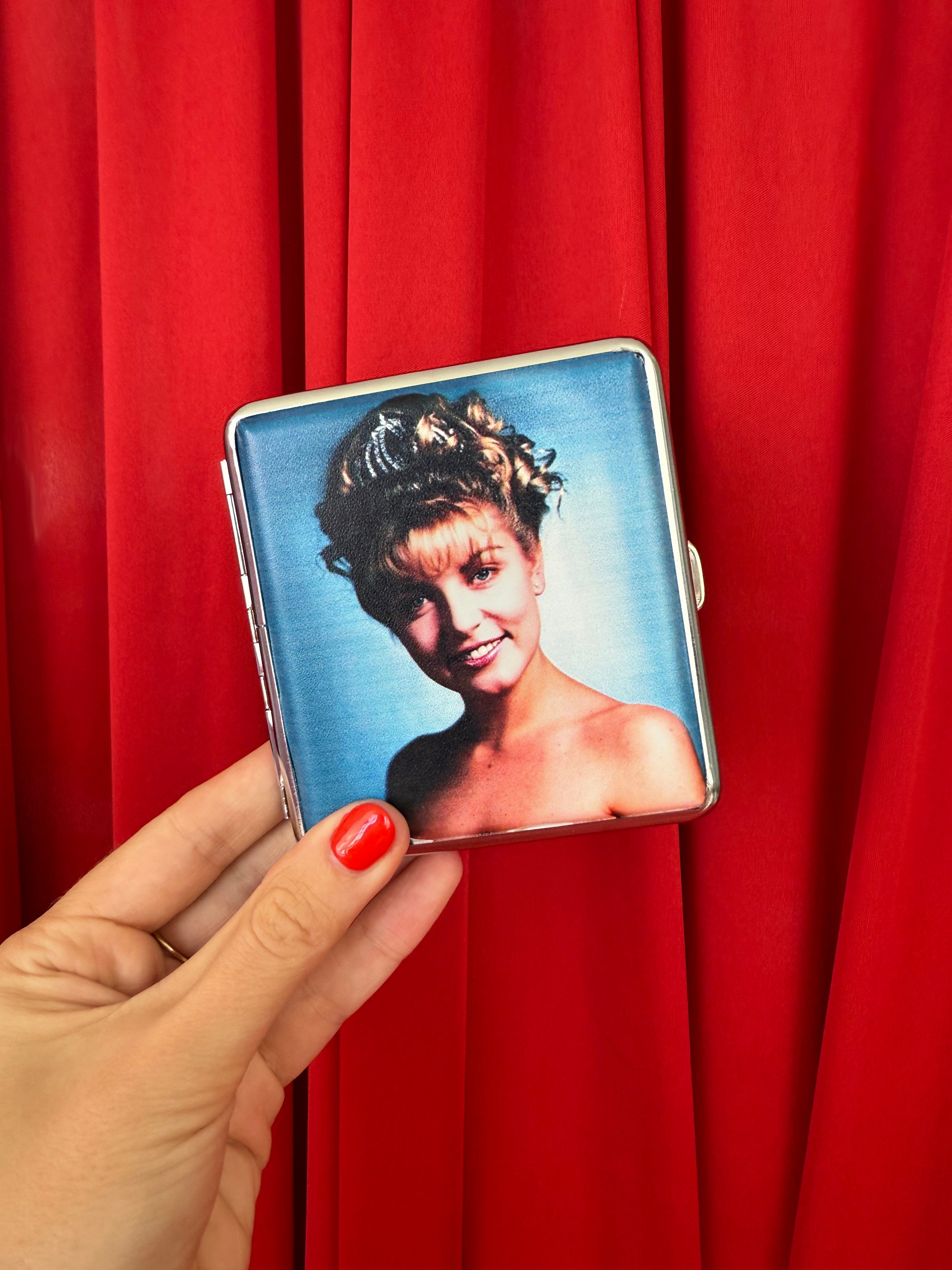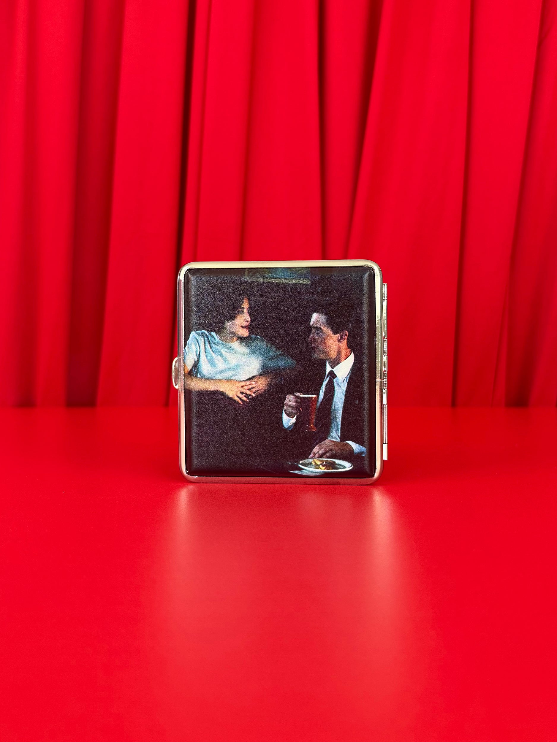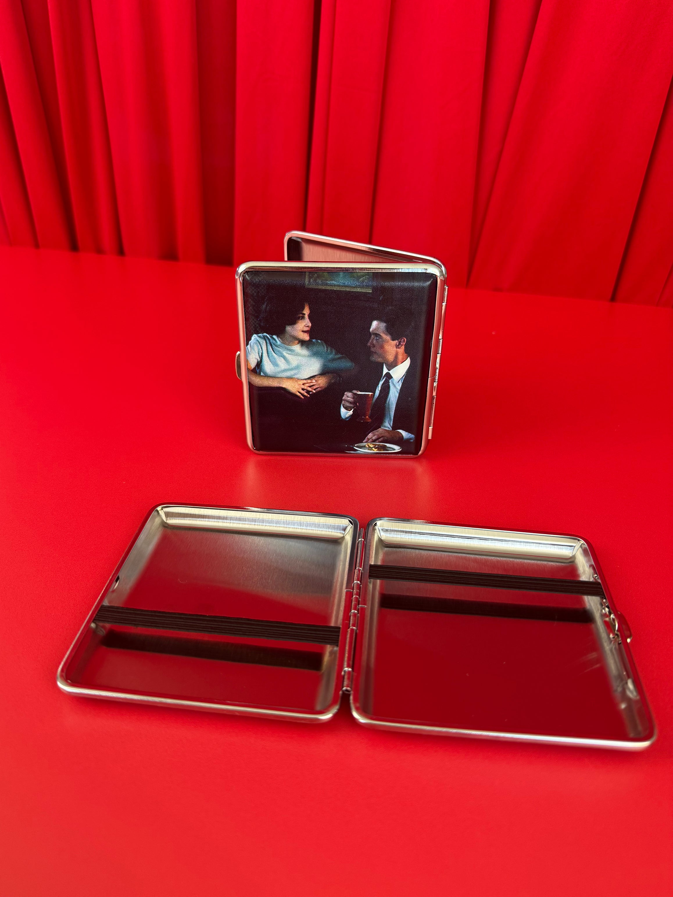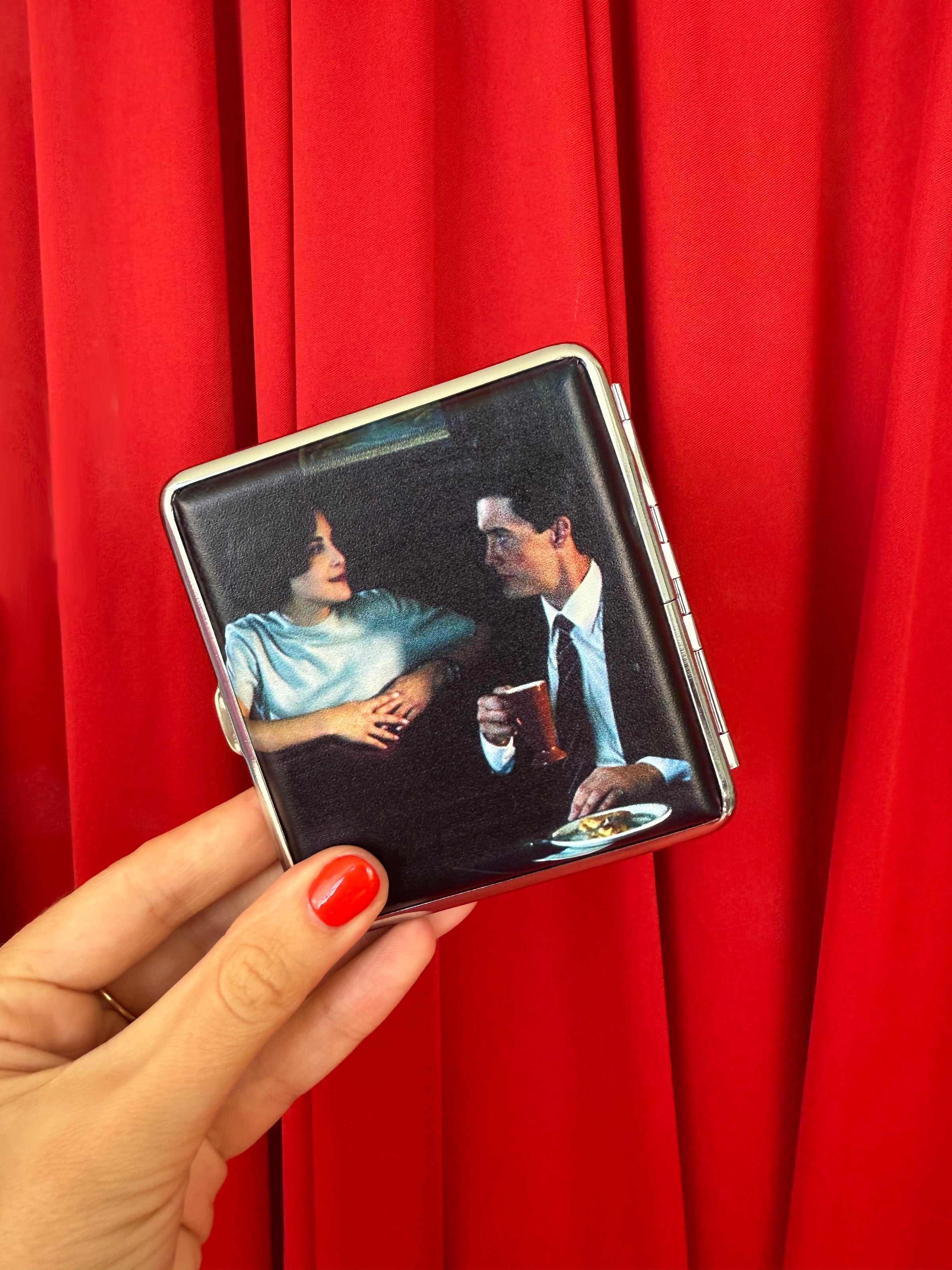 This twin peaks inspired case features Laura Palmer on one side and Audrey and Dale on the other. Perf for holding cigs or prerolls and is slim+discreet enough to toss it in your bag without worry. Also works great for cash, cards, lip gloss, whatever else fits!