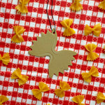 This air freshener features the classic farfalle noodle - we all know bowtie noodles are the superior pasta! Vanilla scented and comes with an elastic cord to loop around a rearview mirror.