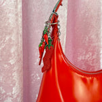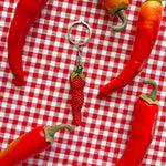 How precious is this keychain?! It features the cutest lil red chili pepper with a bright green stem on a silver keyring! The perfect accessory for your keys, water bottle, bag, or whatever else you want to put it on!