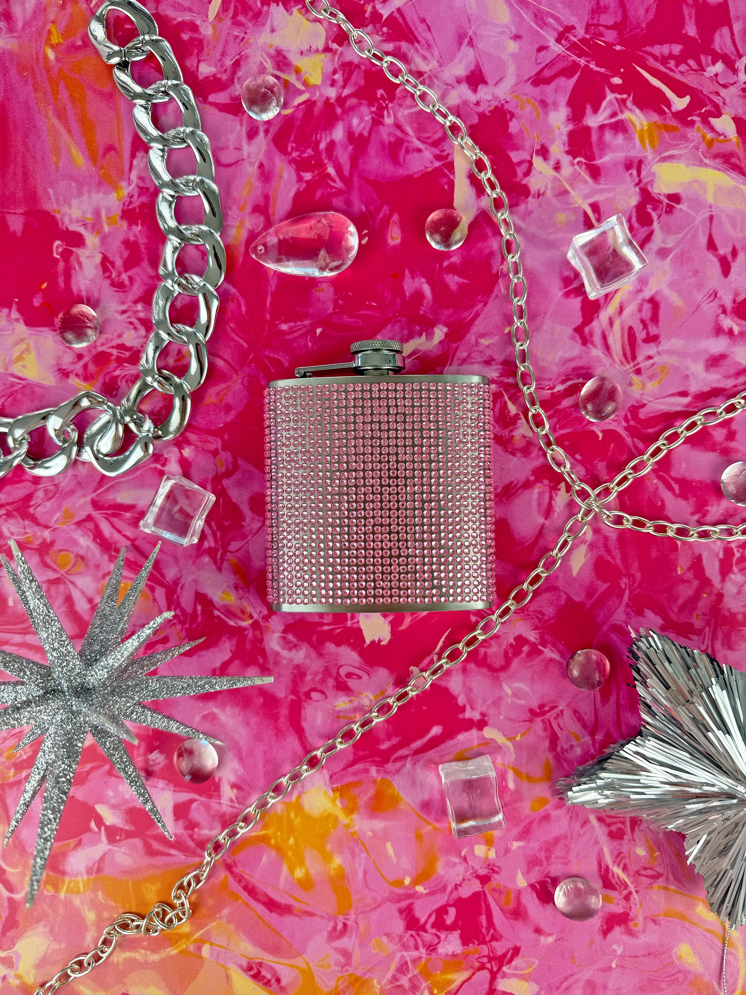 Covered top to bottom in pink rhinestones, this cutie flask is just as functional as it is adorable! It's made from high-quality stainless steel and holds up to 6oz of whatever you’re drinking. It also features a leak-proof screw on cap so you can toss it in your bag without worrying about spills!