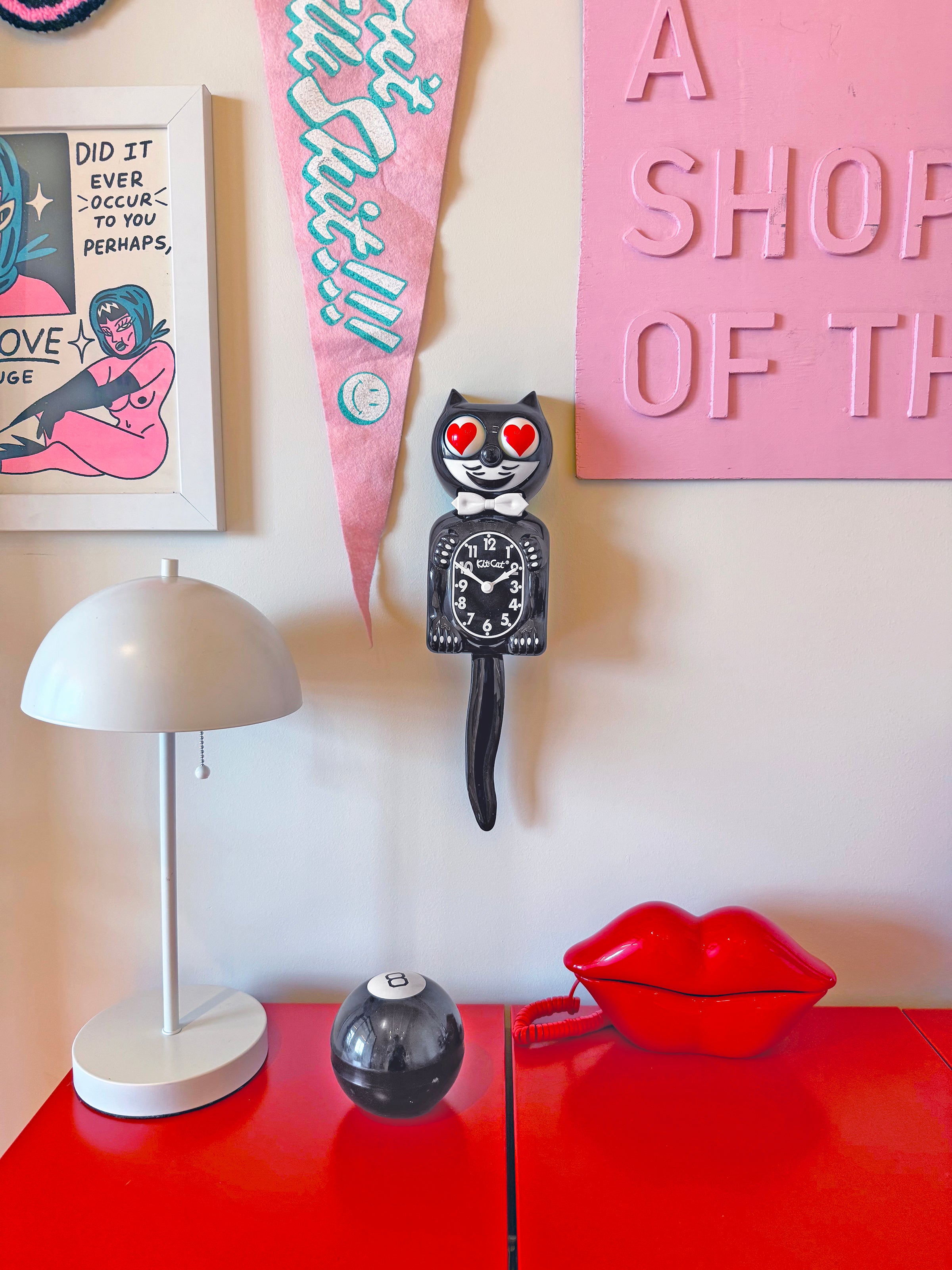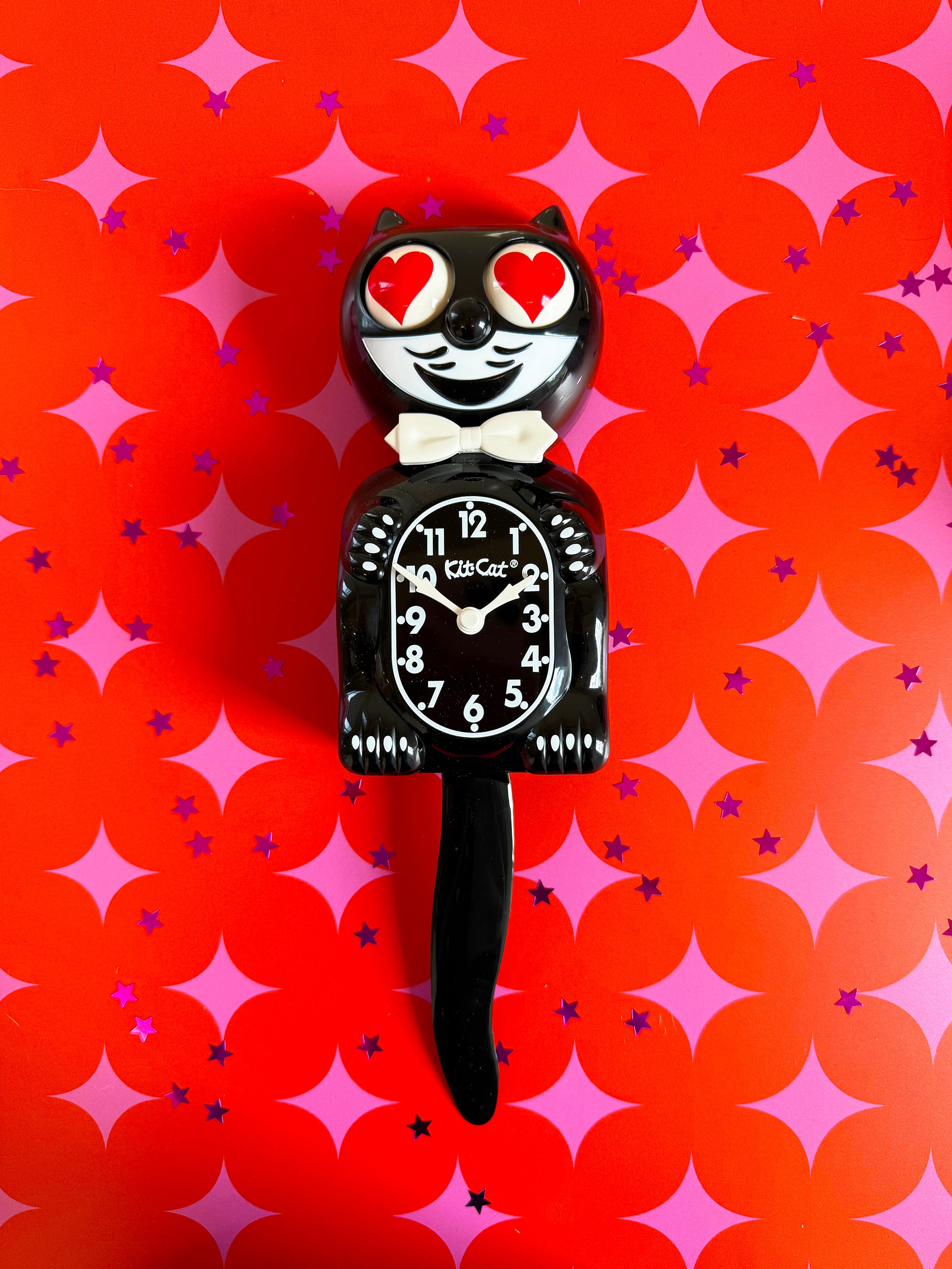 Hold onto your hats and say to hello to this heart eyes limited edition black Kit-Cat Klock!