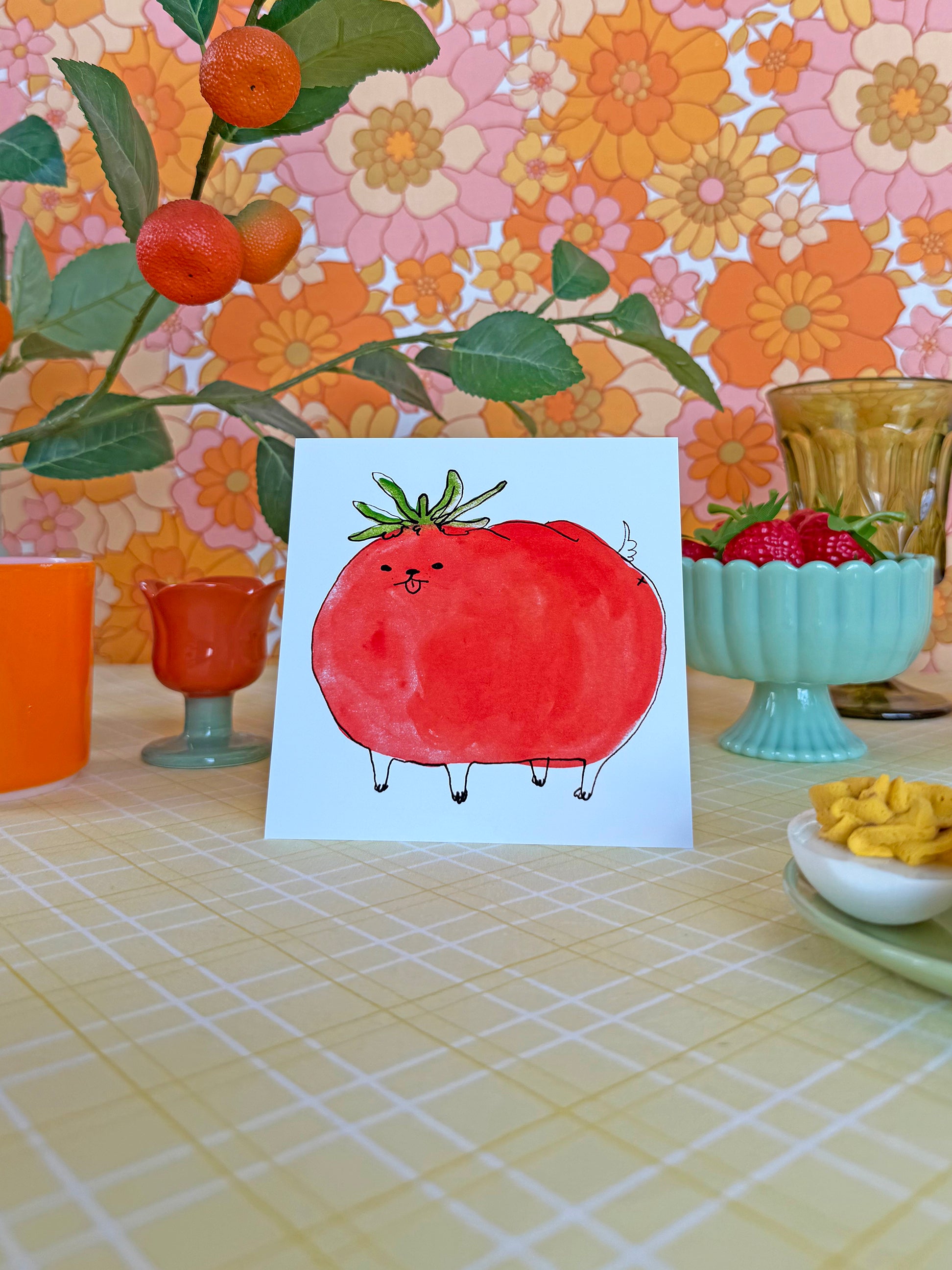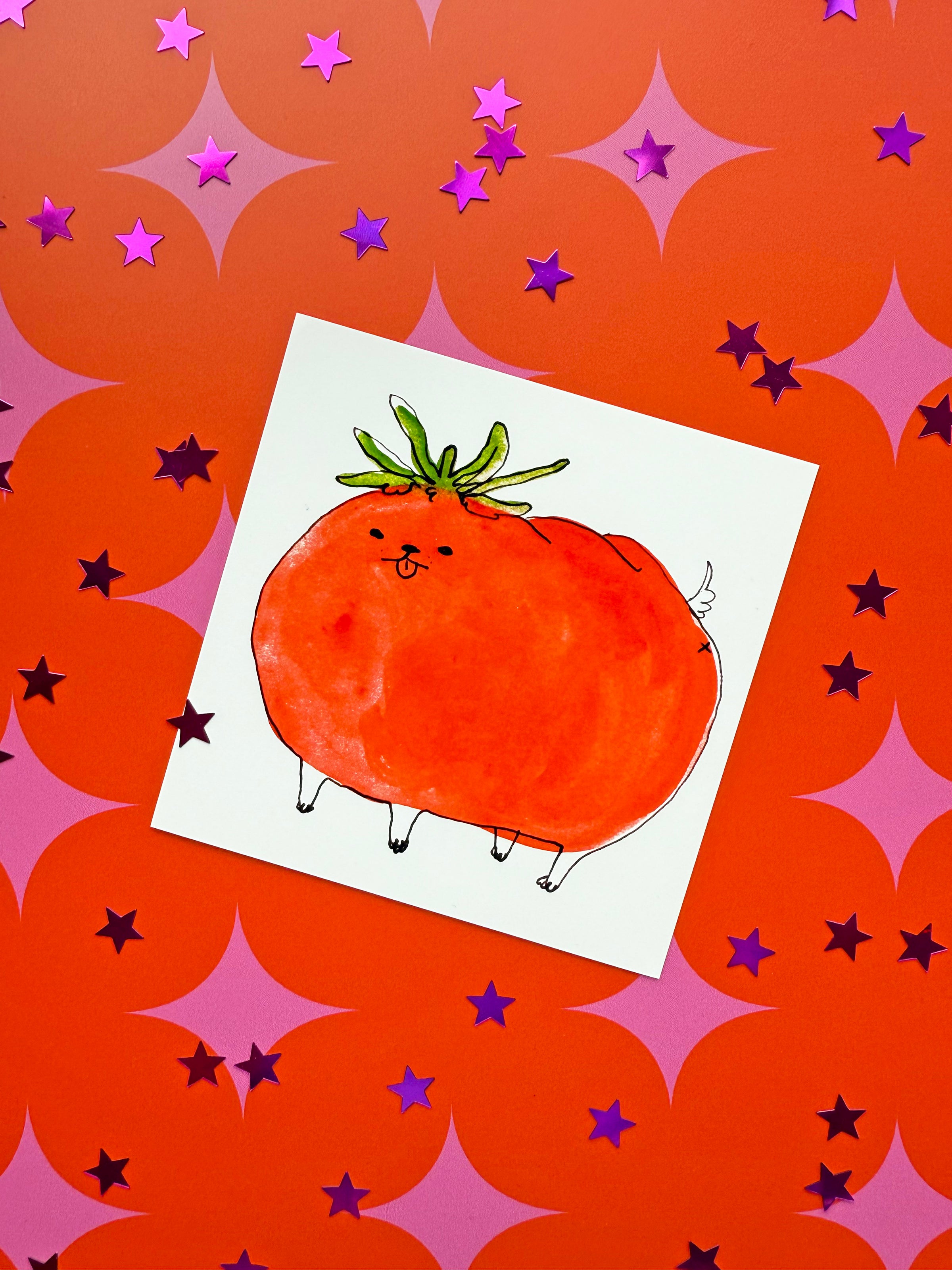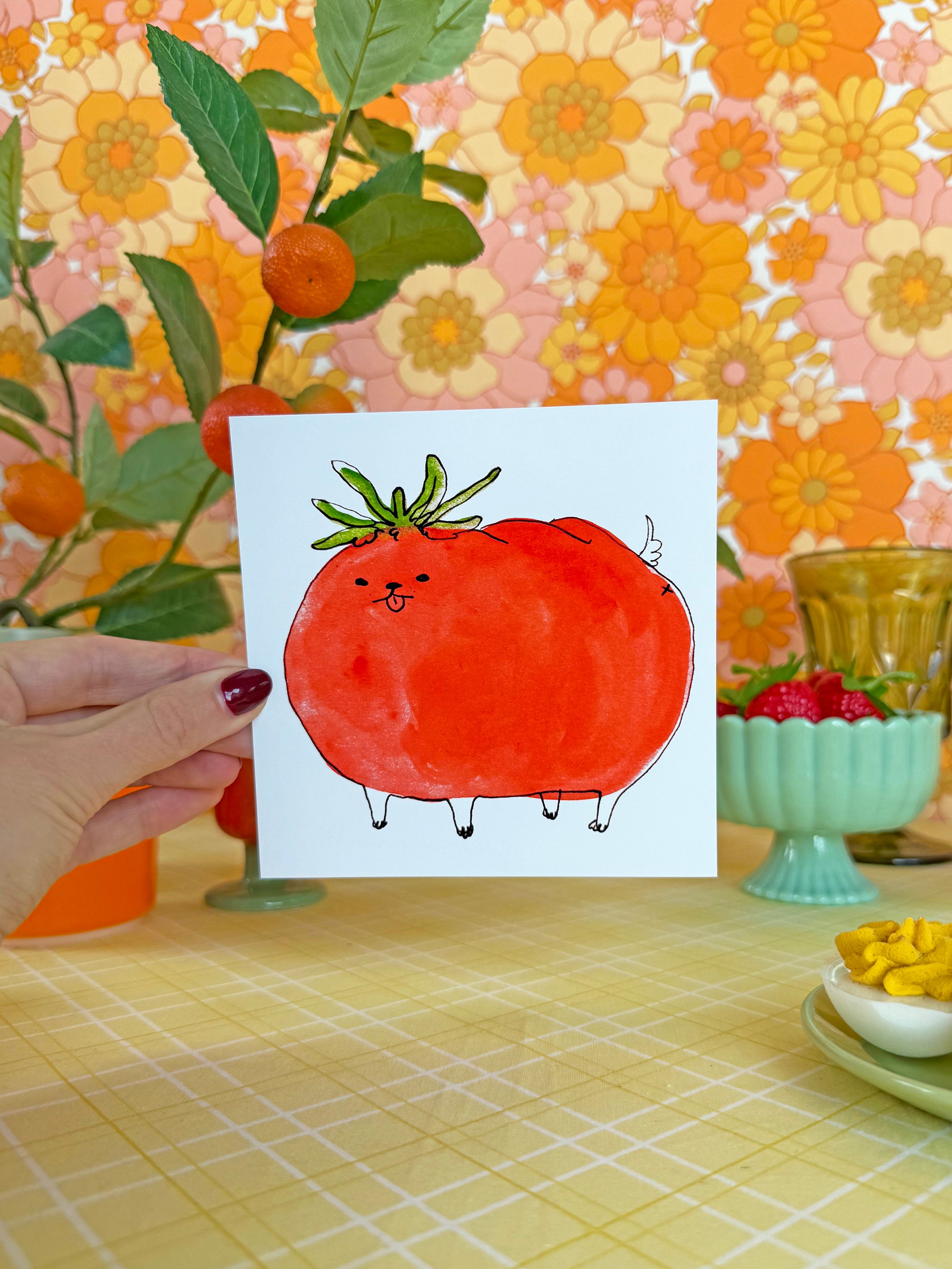 Tomato season is over, but we're obsessed with him year round! This print features a cute tomato puppy hybrid. Made by artist Rebekah Evans, this watercolor print looks adorable on a shelf and makes for the sweetest gift!